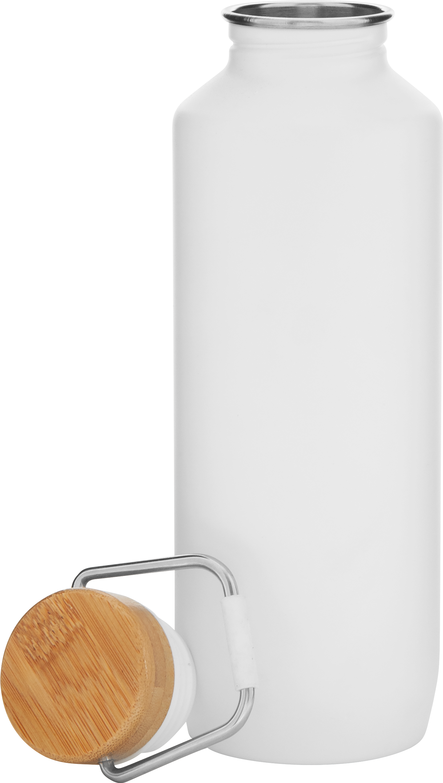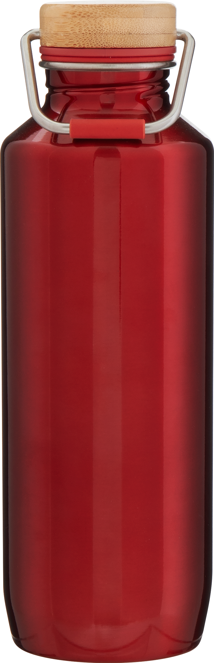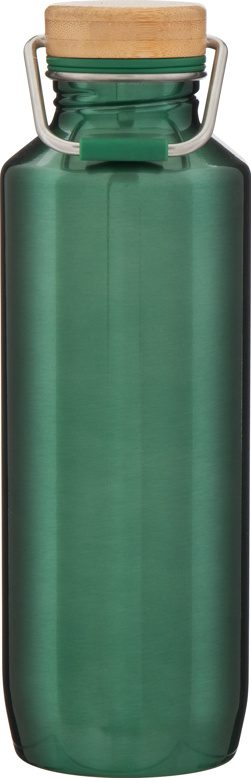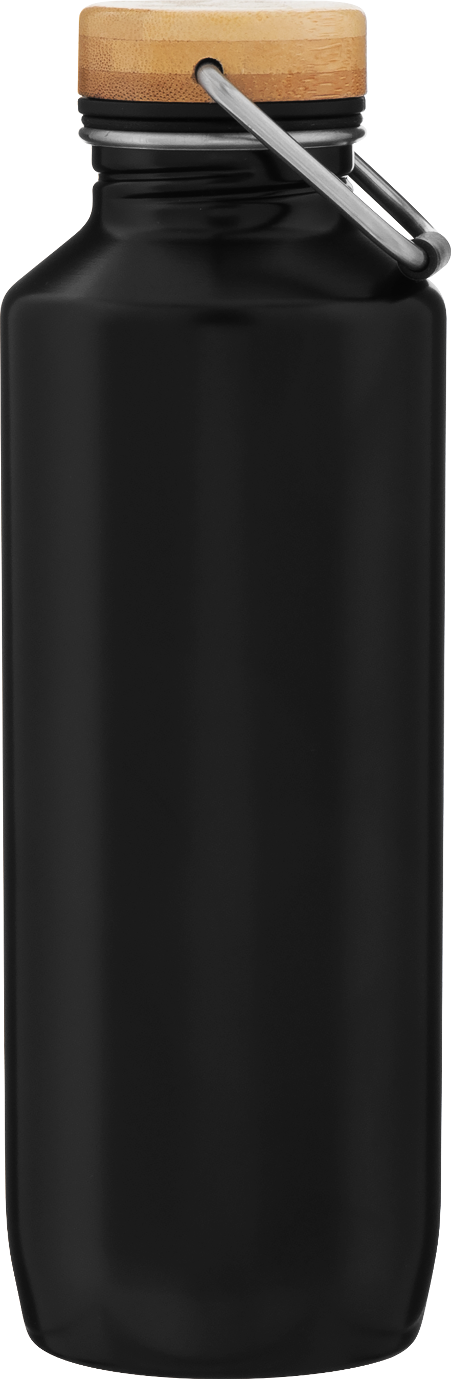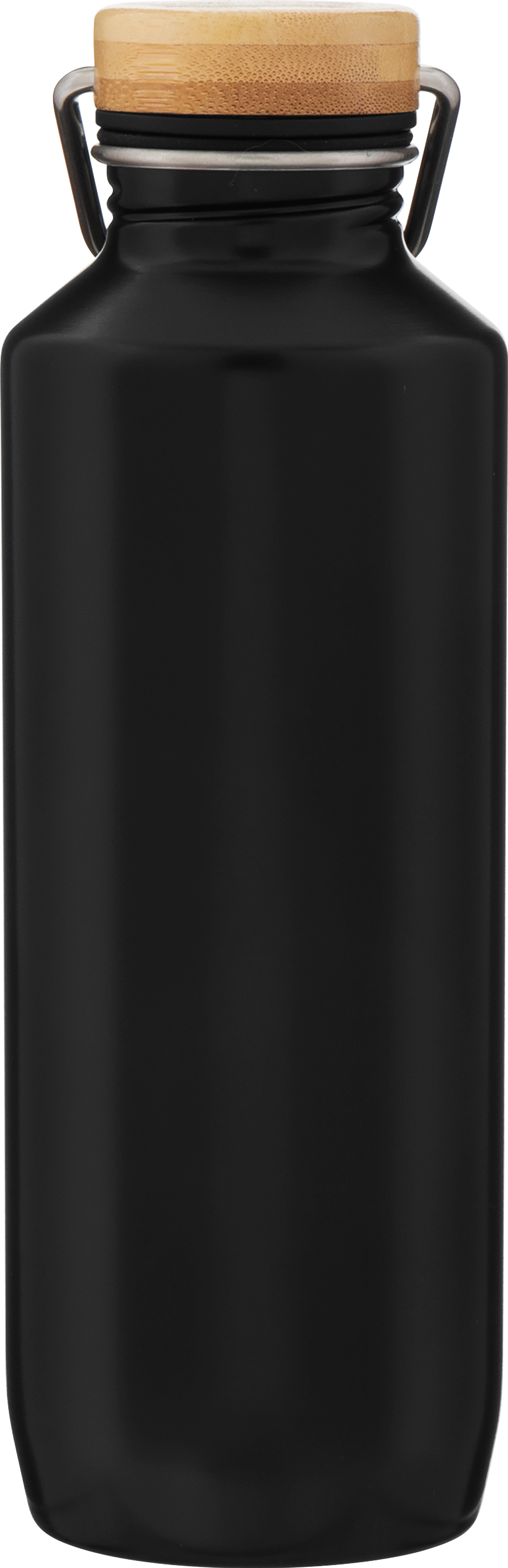 The h2go Grove 25 oz bottle blends sustainability with sleek design. Made from 90% post-consumer recycled stainless steel, it features a lightweight single-wall build, a threaded bamboo lid, and a swing handle with a color accent. Finished with a modern matte look, it's a smart choice for eco-conscious, on-the-go hydration with cold beverages.
