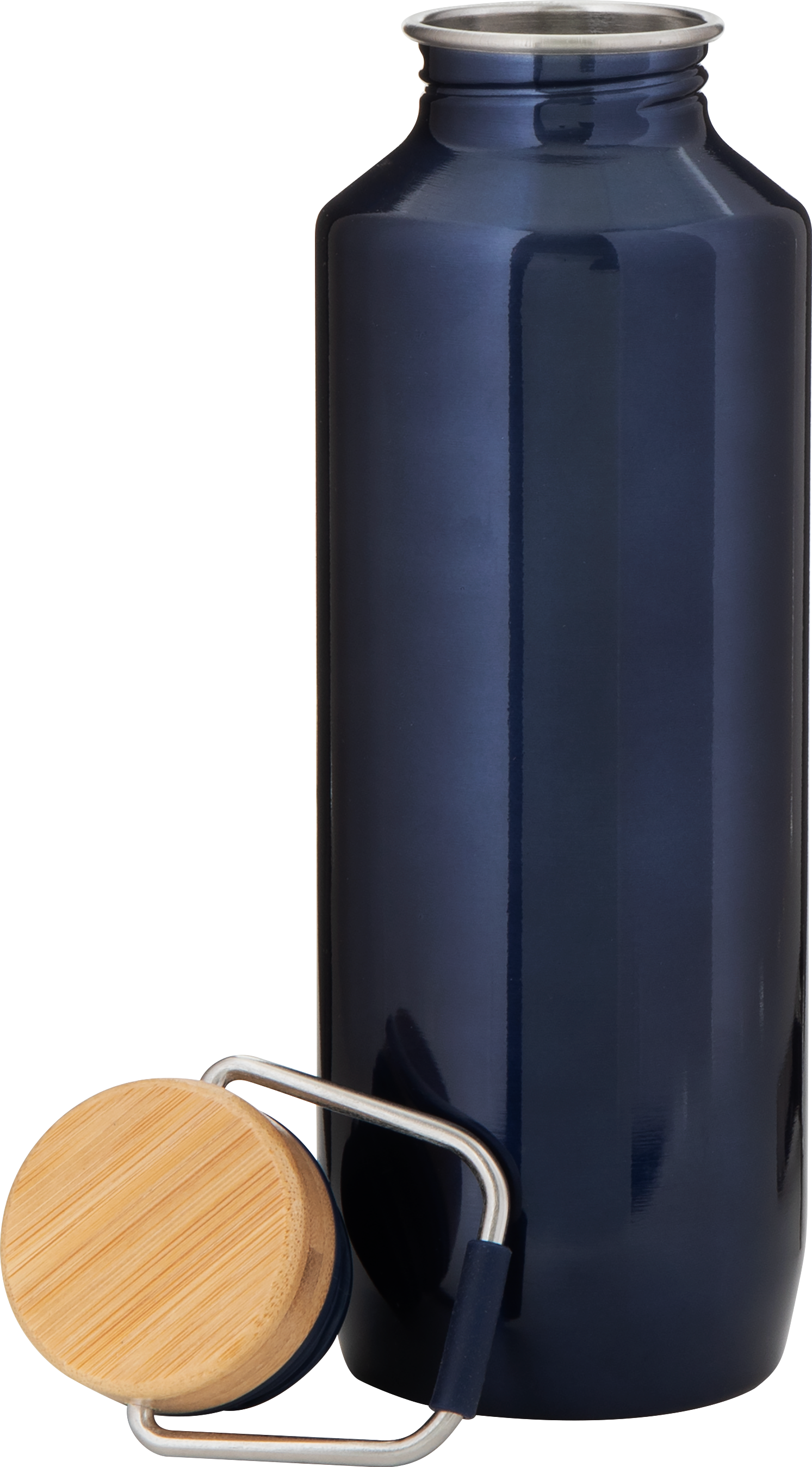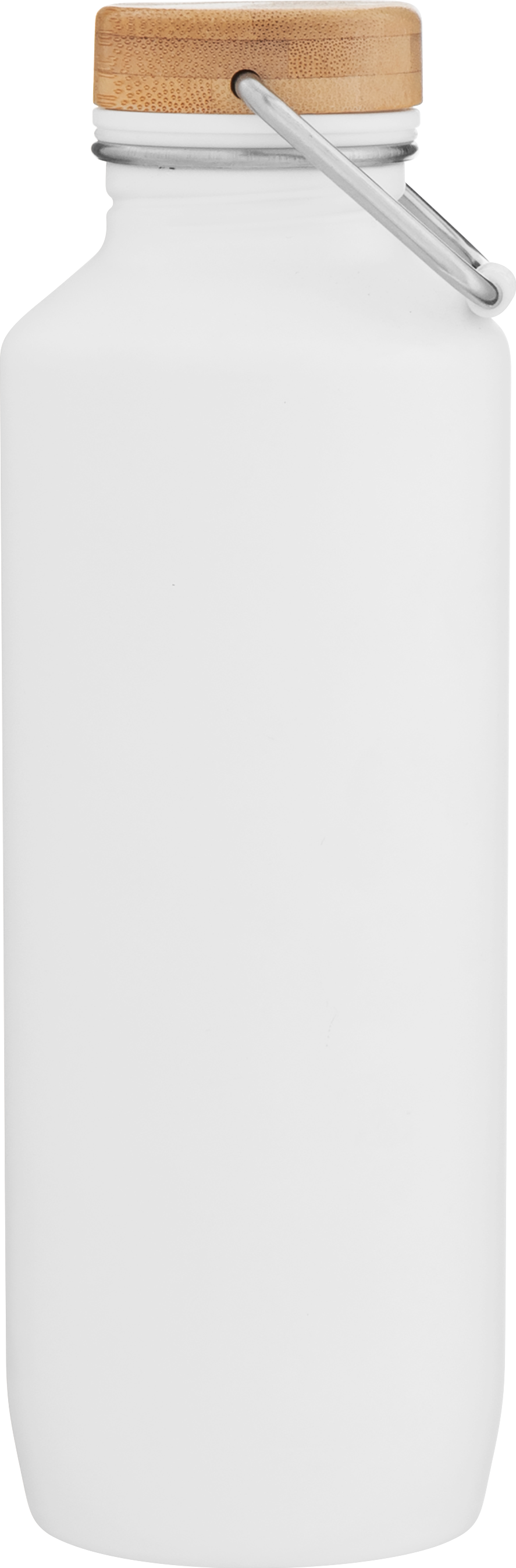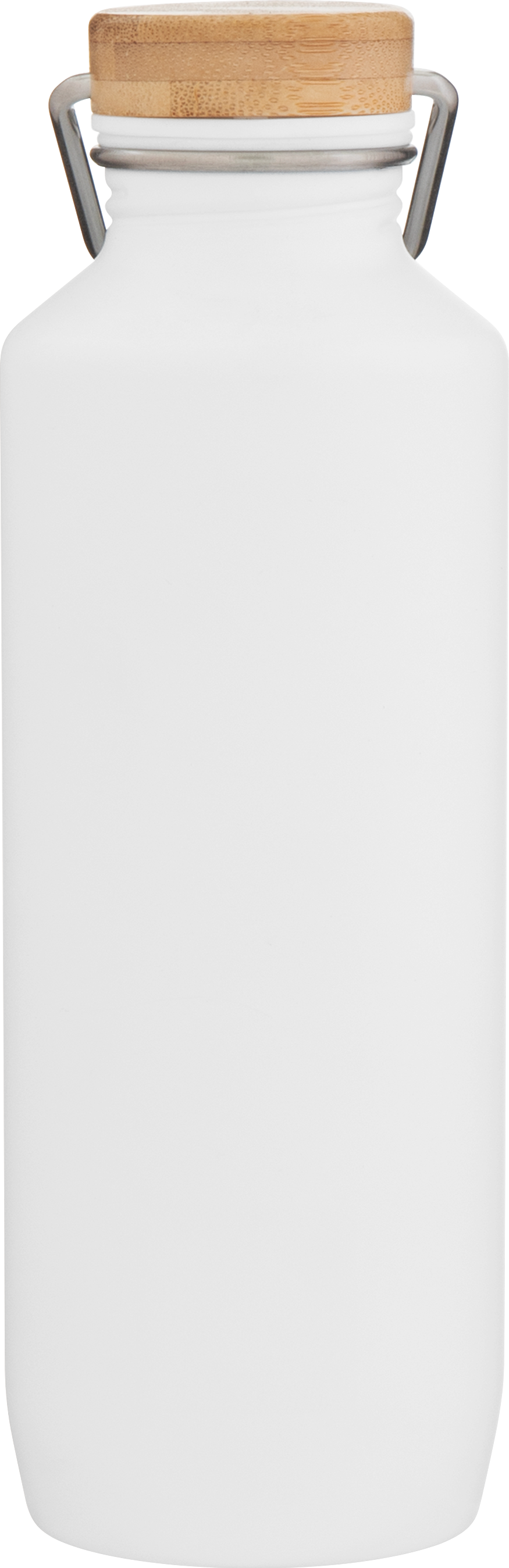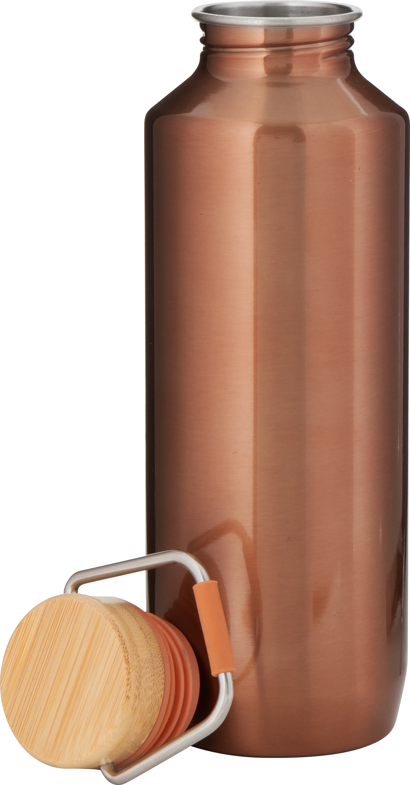 The h2go Grove 25 oz bottle blends sustainability with sleek design. Made from 90% post-consumer recycled stainless steel, it features a lightweight single-wall build, a threaded bamboo lid, and a swing handle with a color accent. Finished with a modern matte look, it's a smart choice for eco-conscious, on-the-go hydration with cold beverages.
