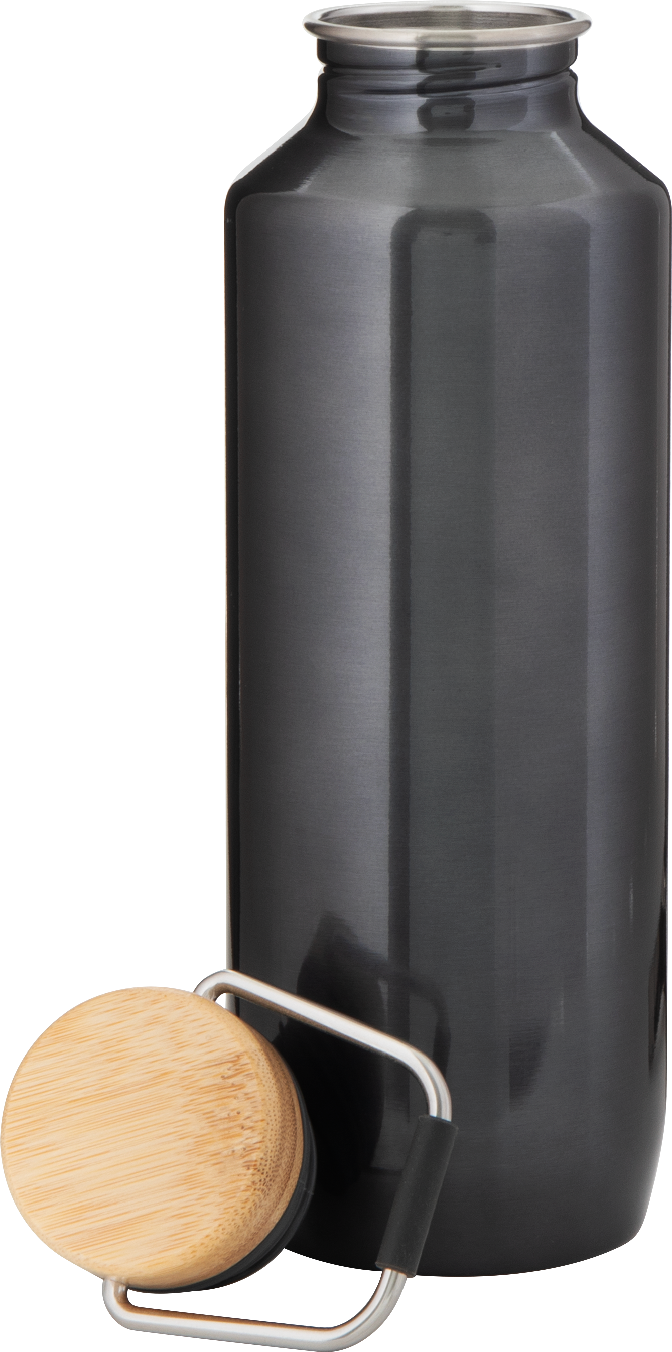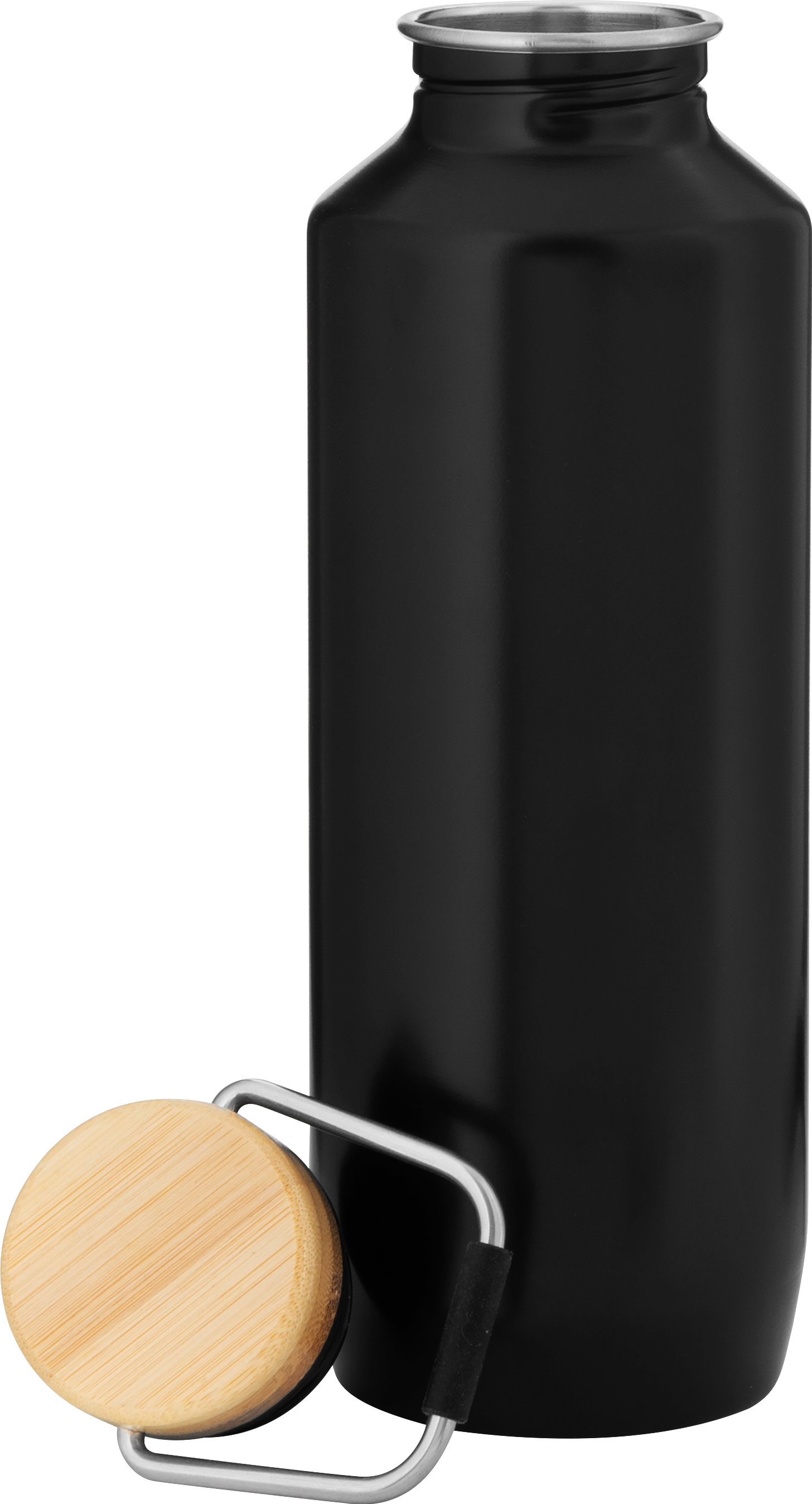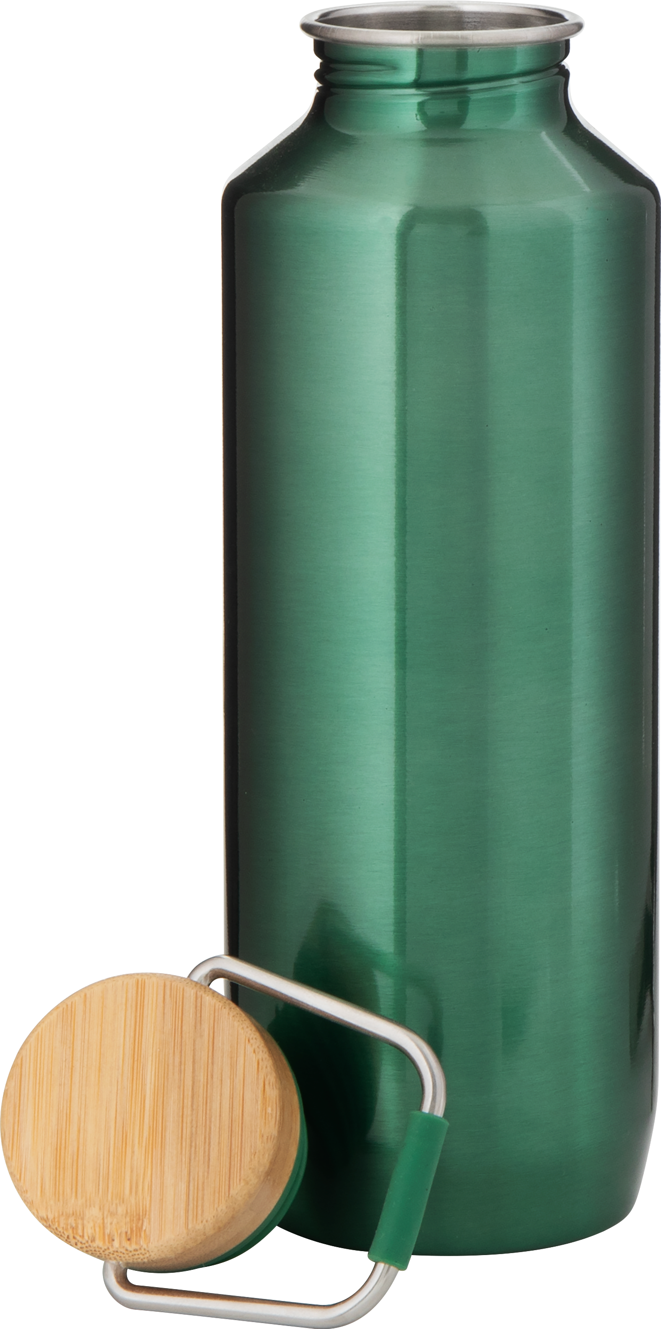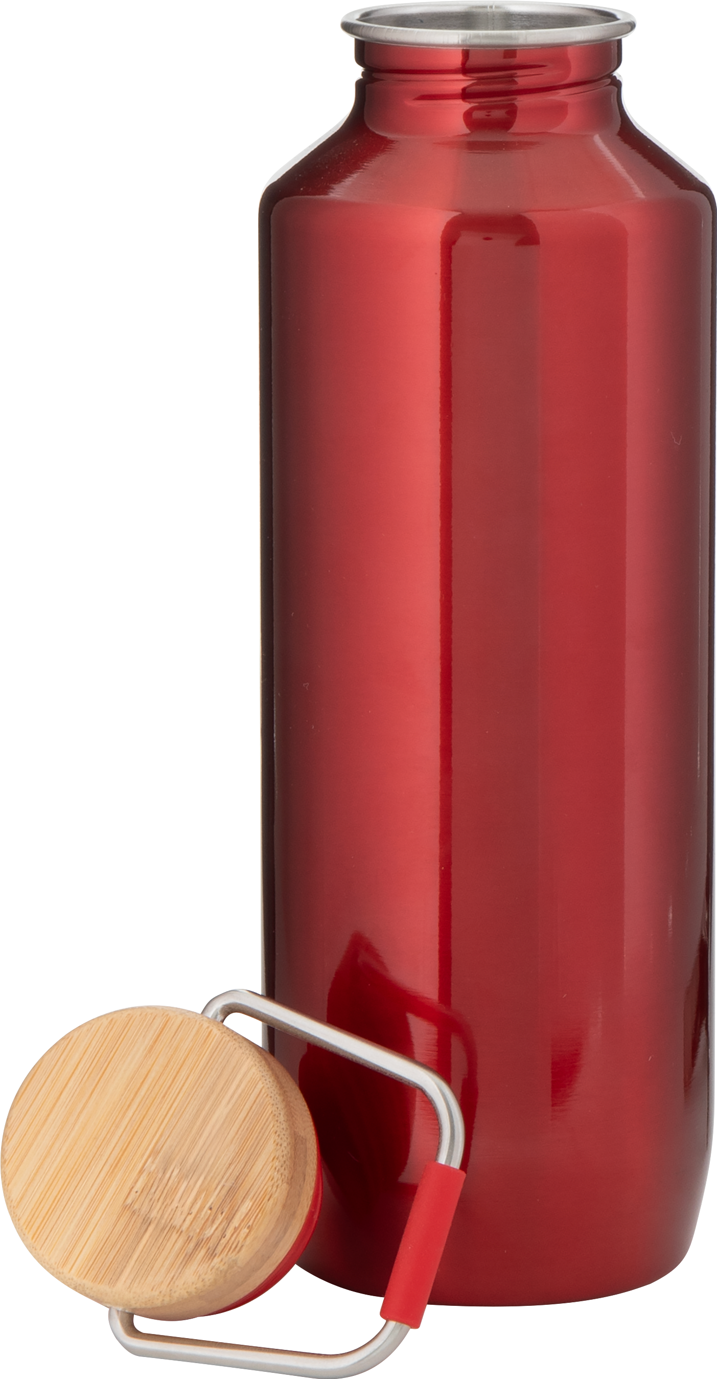 The h2go Grove 25 oz bottle blends sustainability with sleek design. Made from 90% post-consumer recycled stainless steel, it features a lightweight single-wall build, a threaded bamboo lid, and a swing handle with a color accent. Finished with a modern matte look, it's a smart choice for eco-conscious, on-the-go hydration with cold beverages.