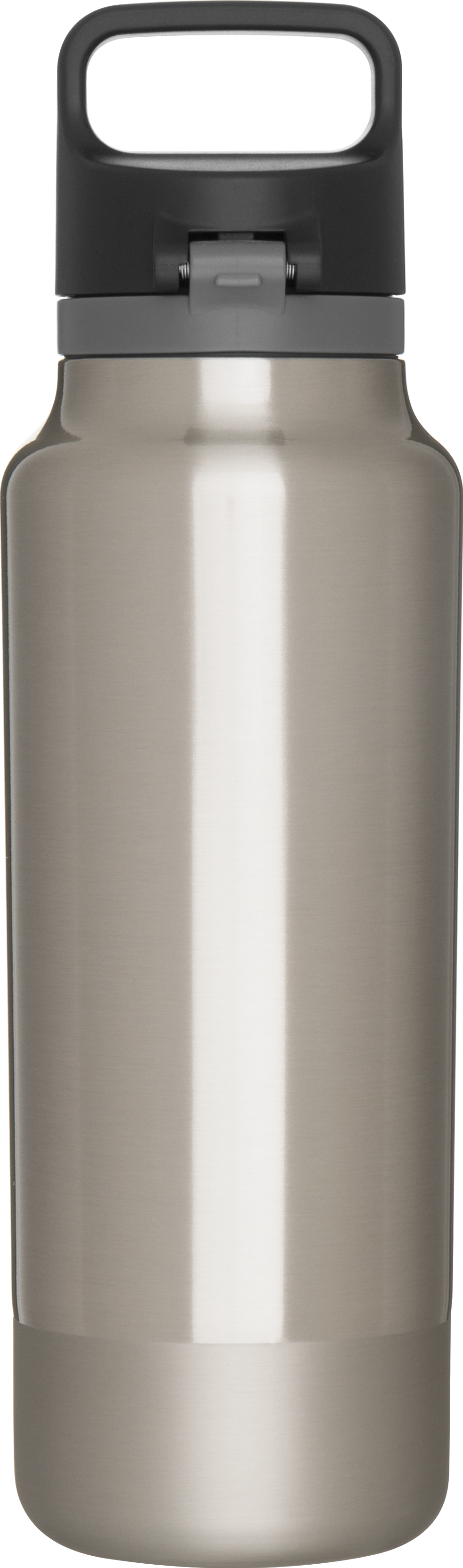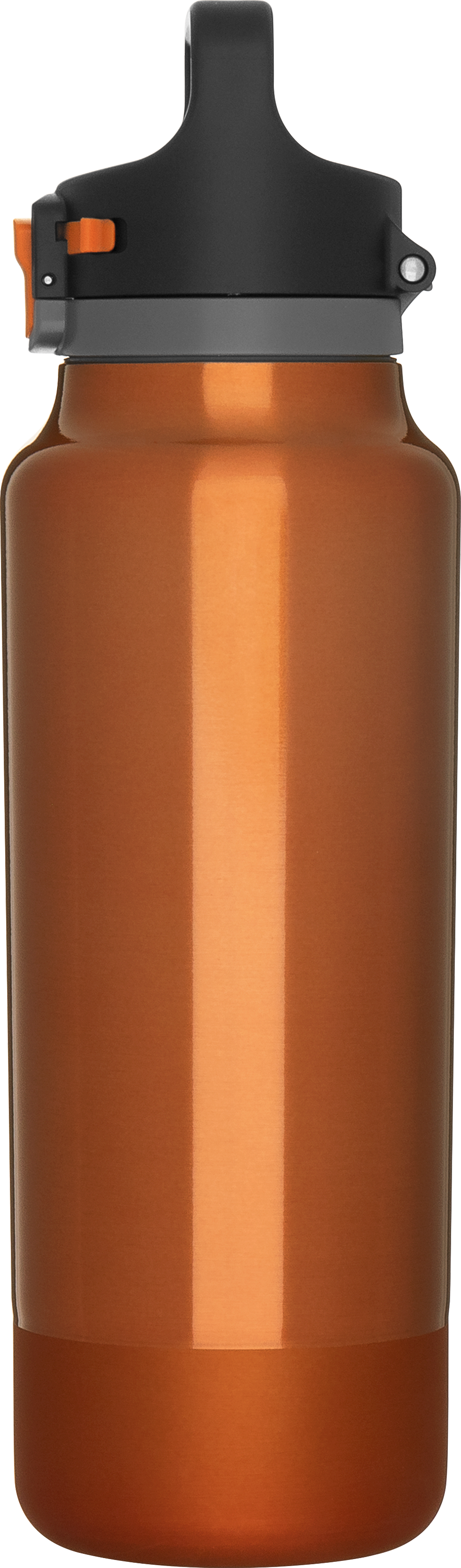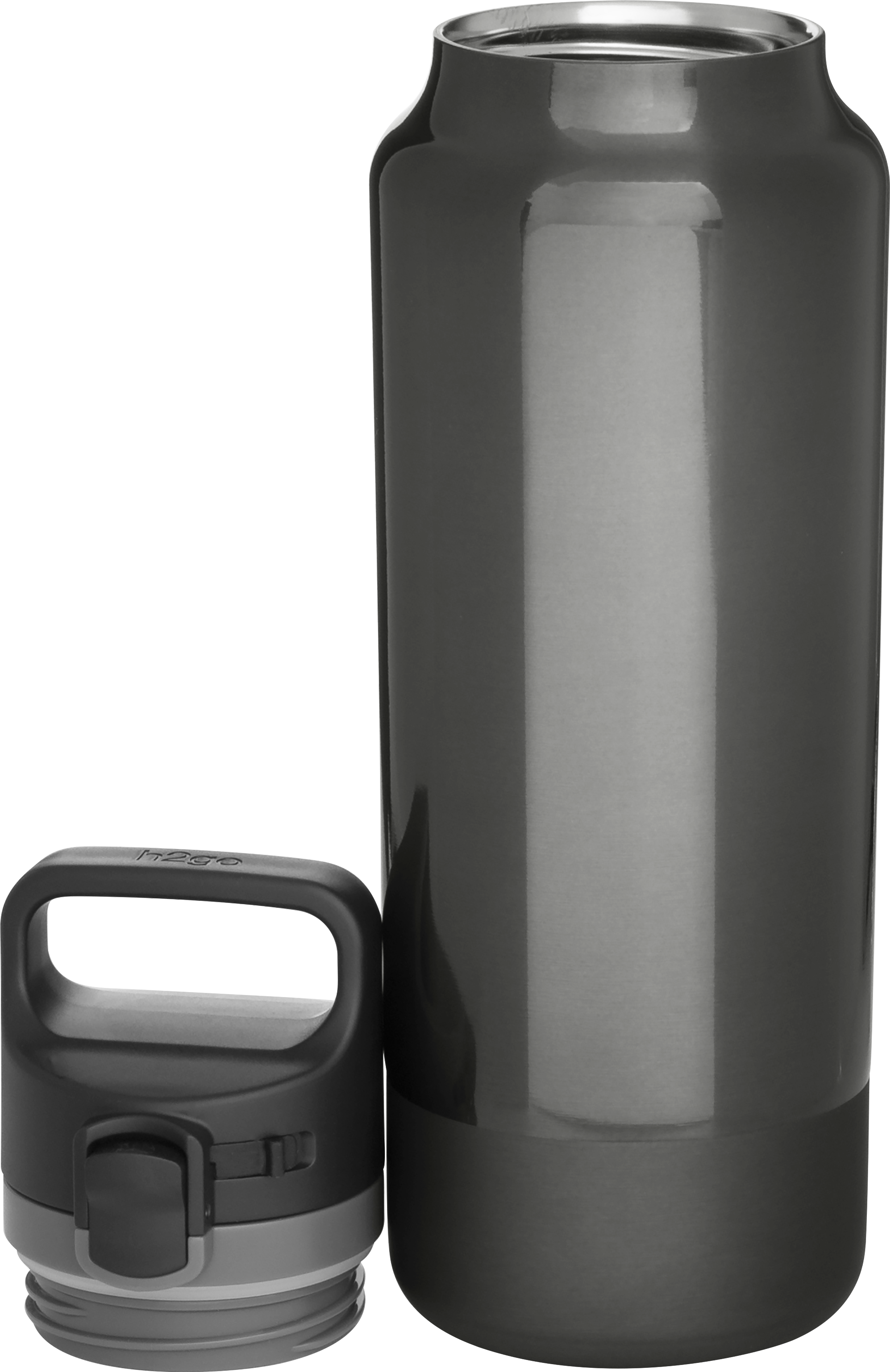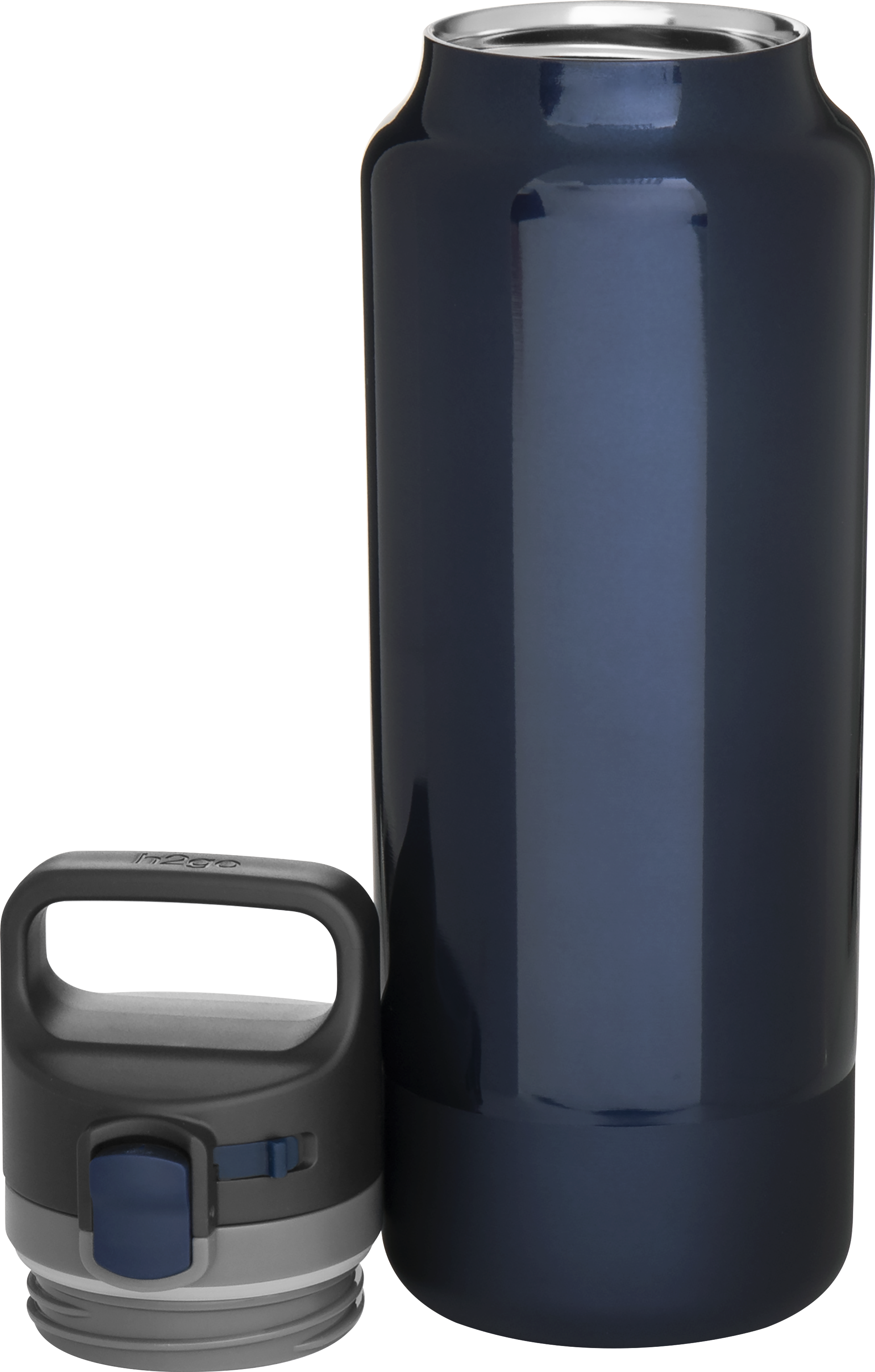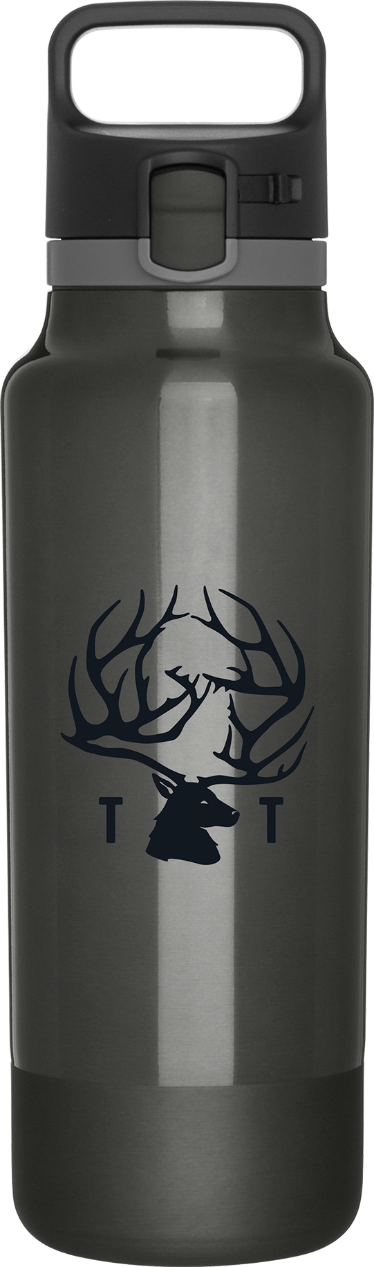 The h2go Ranger 25 oz thermal bottle is designed for durability and ease of use, whether you're on the trail or in the office. Made from double wall 18/8 stainless steel with copper vacuum insulation, it keeps beverages hot or cold for hours. The threaded lid features a push-button locking mechanism and sip opening for secure, one-handed use. A built-in carrying handle adds convenience, while the tinted finish and rubberized base provide style and stability.