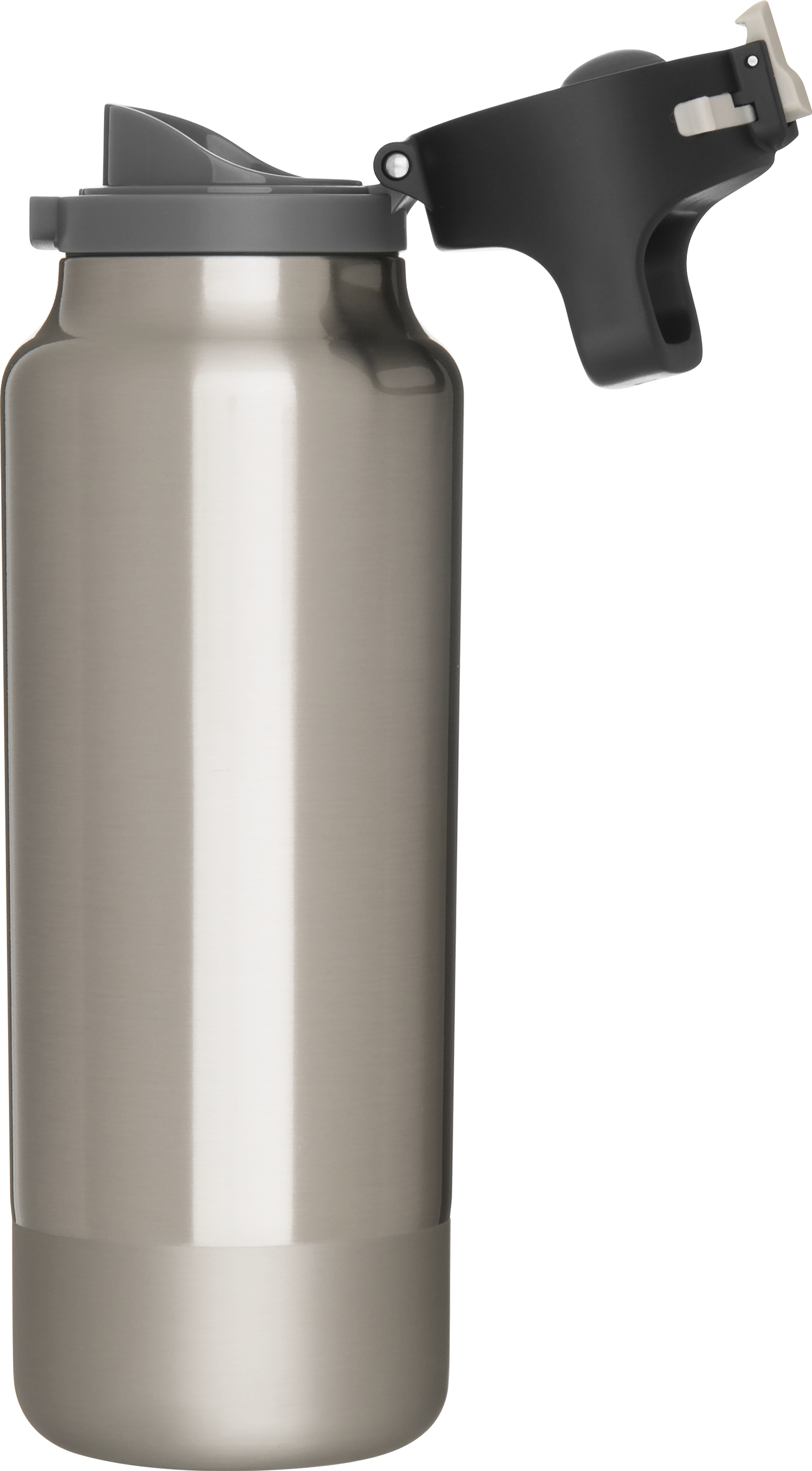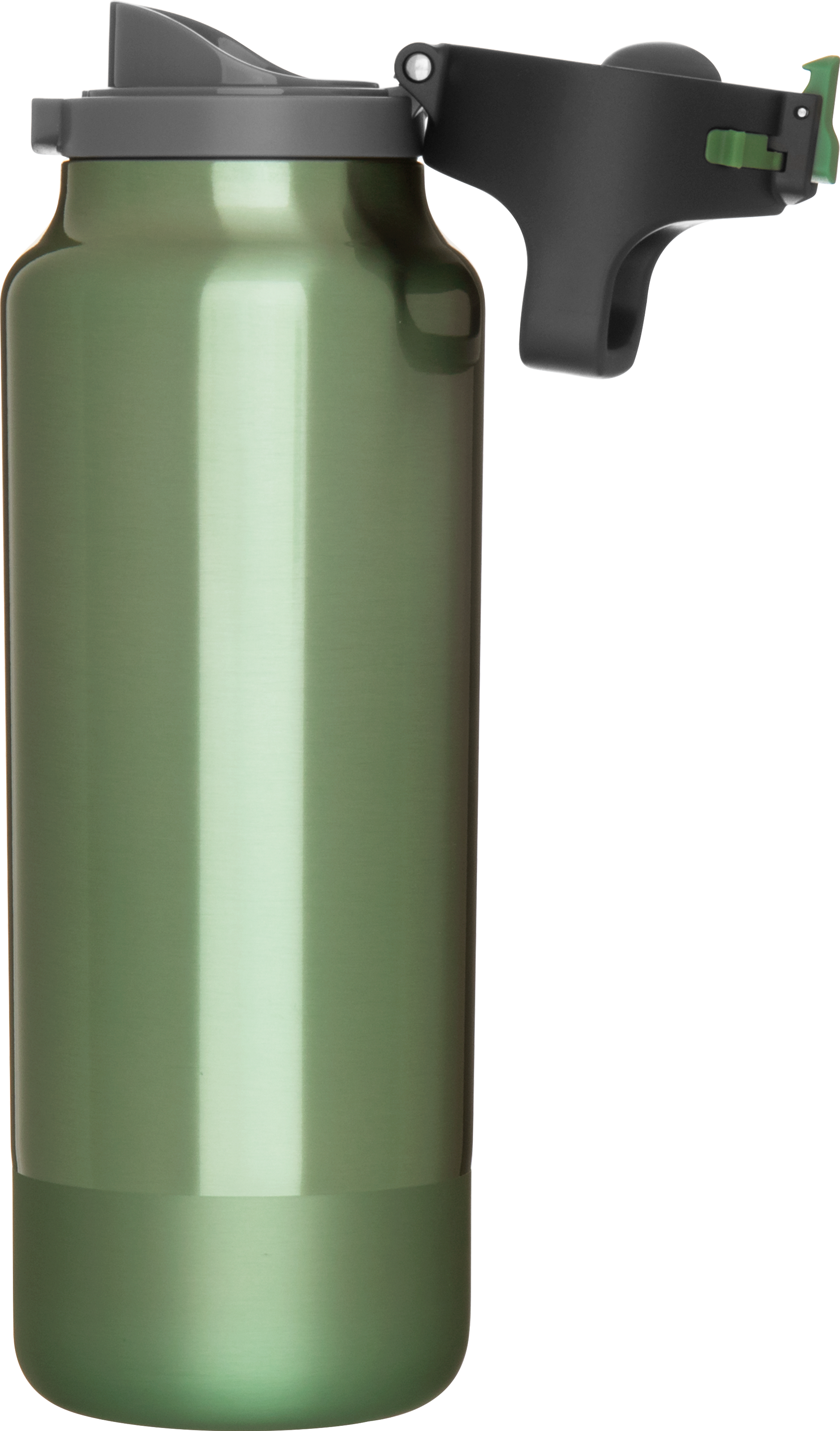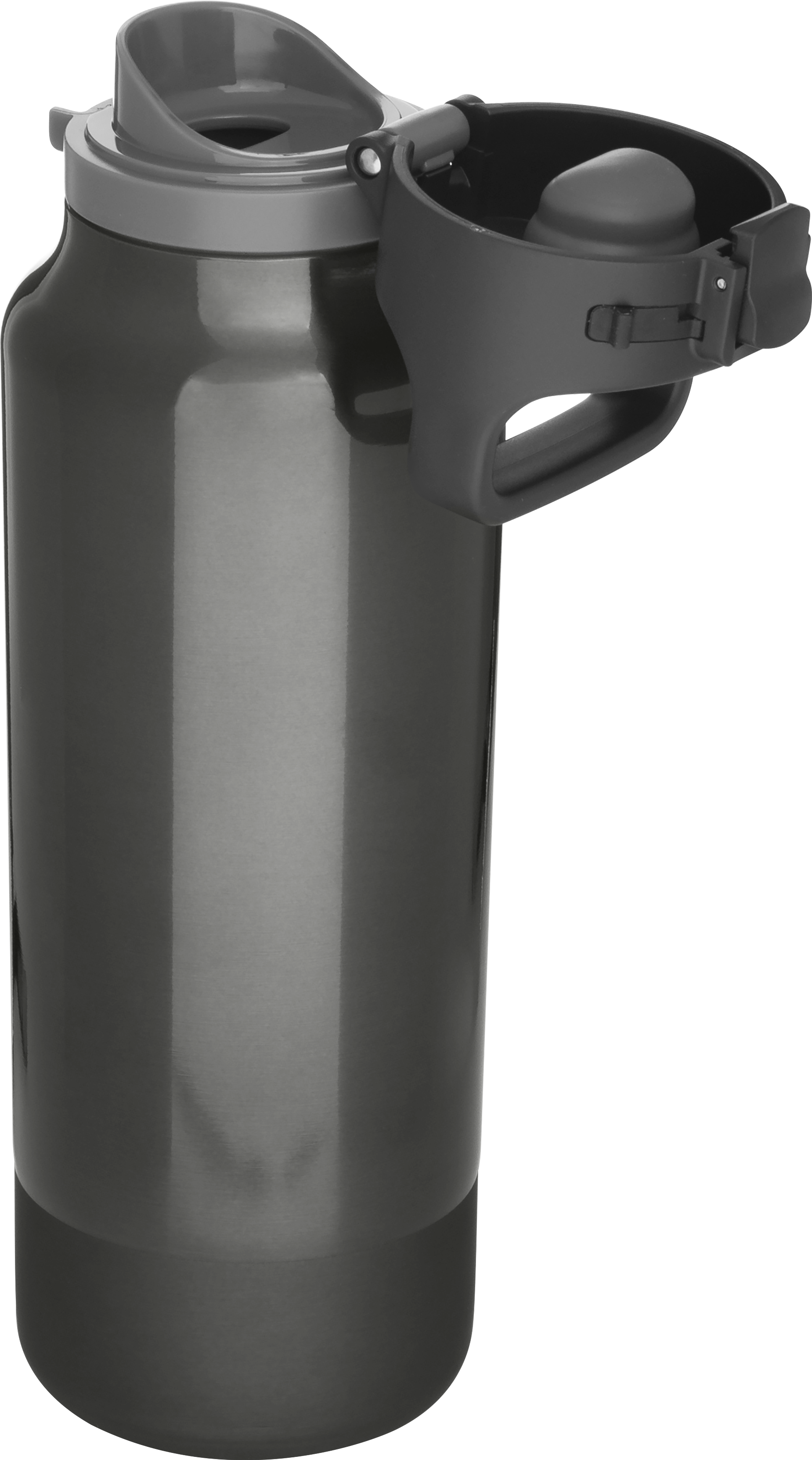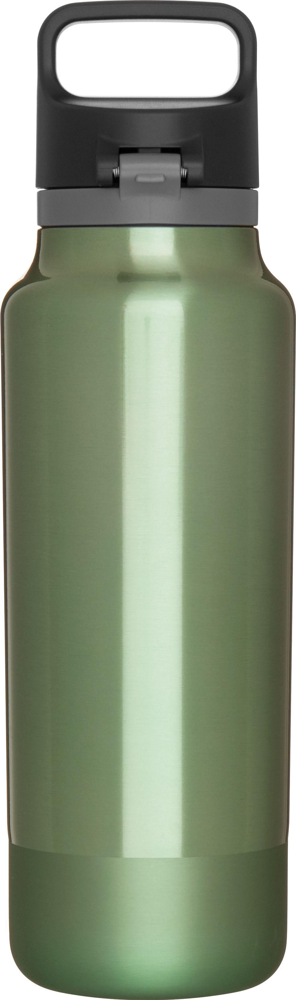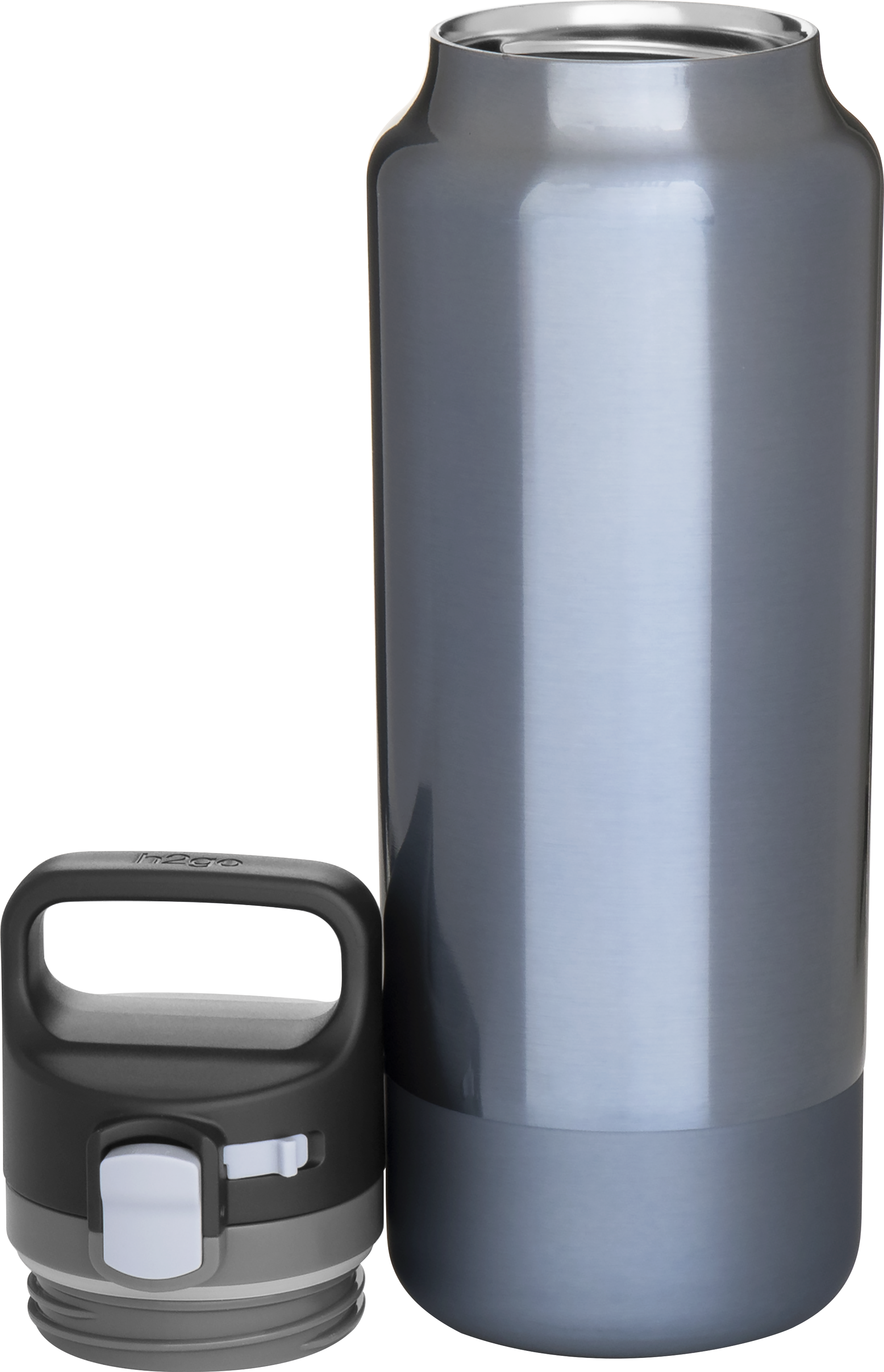 The h2go Ranger 25 oz thermal bottle is designed for durability and ease of use, whether you're on the trail or in the office. Made from double wall 18/8 stainless steel with copper vacuum insulation, it keeps beverages hot or cold for hours. The threaded lid features a push-button locking mechanism and sip opening for secure, one-handed use. A built-in carrying handle adds convenience, while the tinted finish and rubberized base provide style and stability.