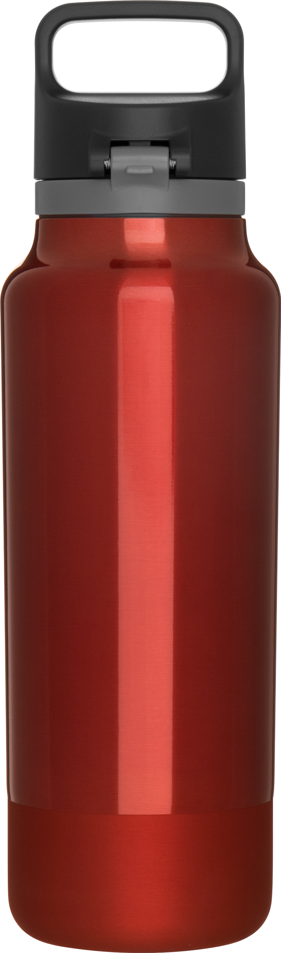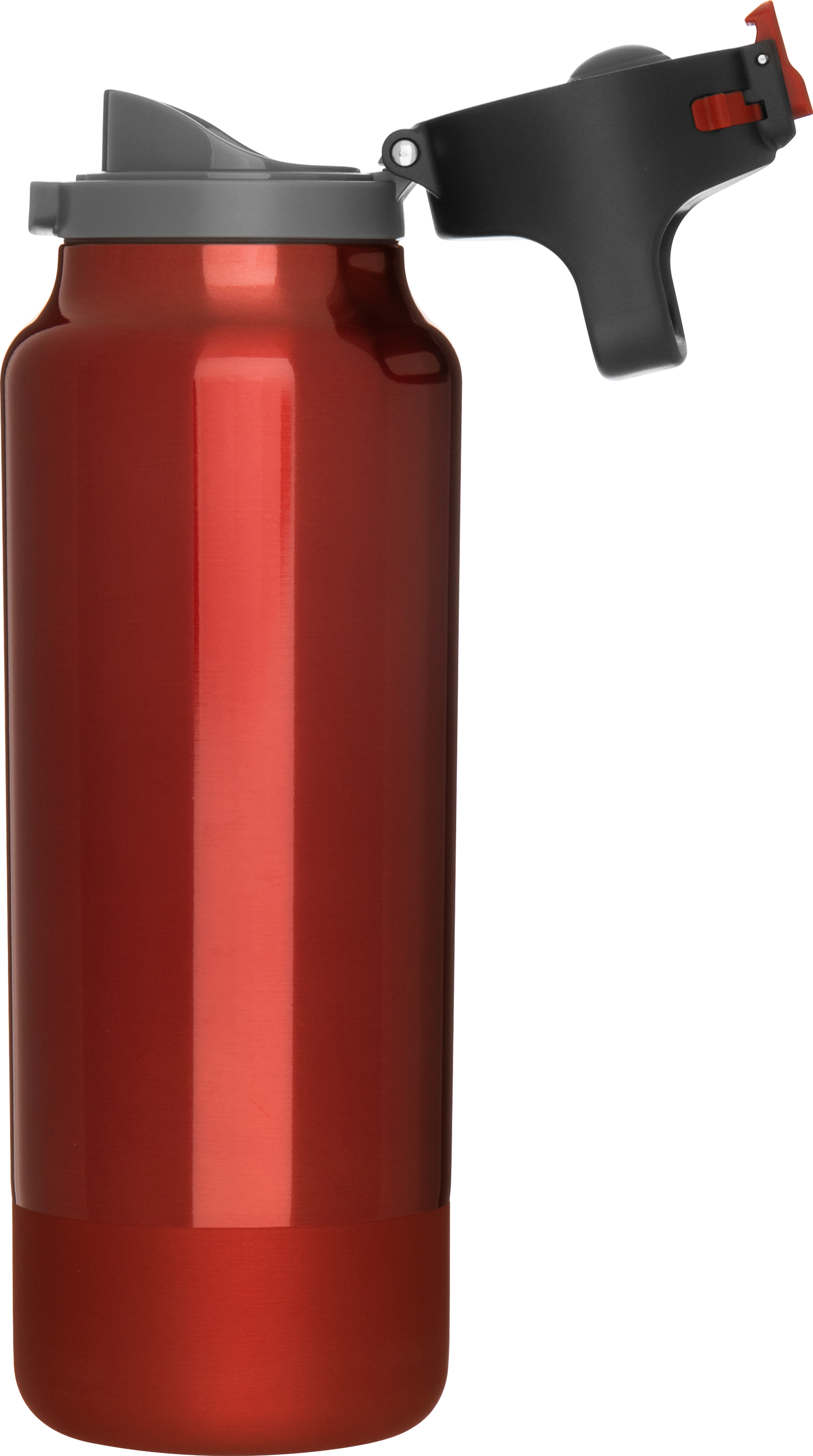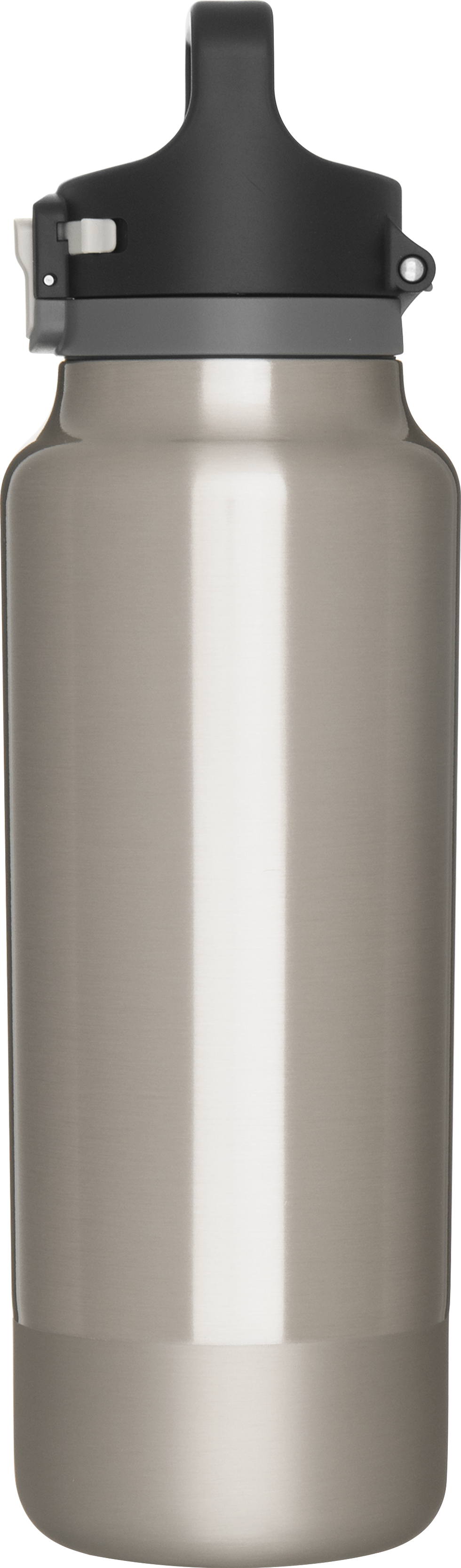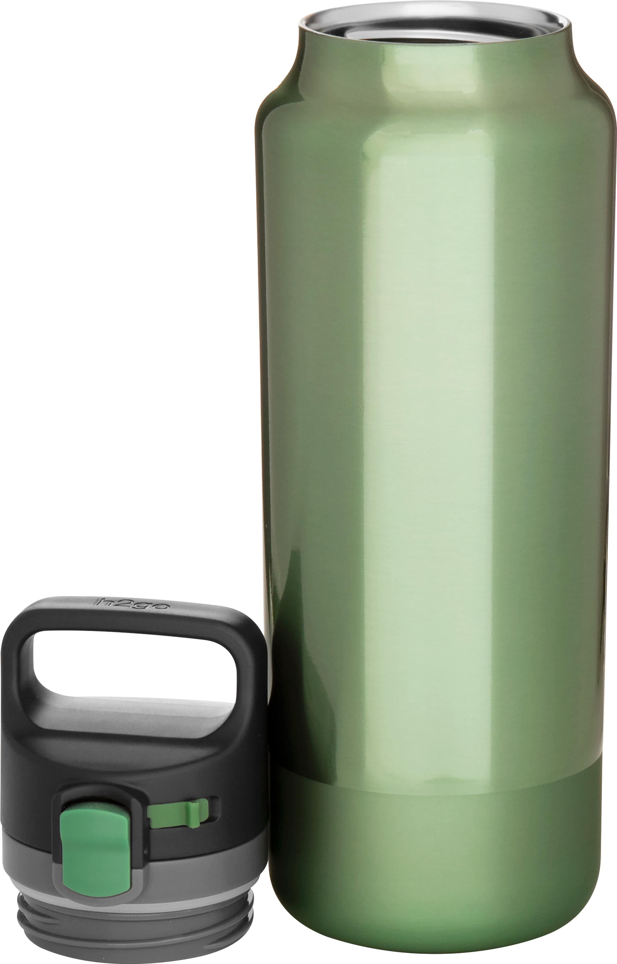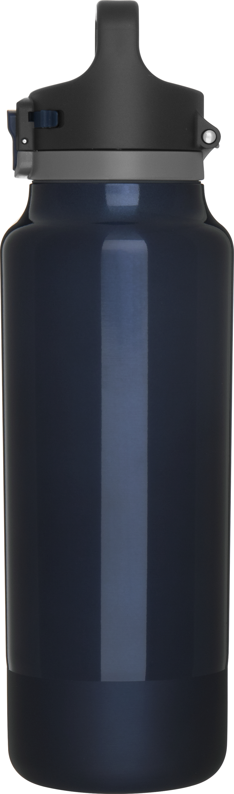 The h2go Ranger 25 oz thermal bottle is designed for durability and ease of use, whether you're on the trail or in the office. Made from double wall 18/8 stainless steel with copper vacuum insulation, it keeps beverages hot or cold for hours. The threaded lid features a push-button locking mechanism and sip opening for secure, one-handed use. A built-in carrying handle adds convenience, while the tinted finish and rubberized base provide style and stability.