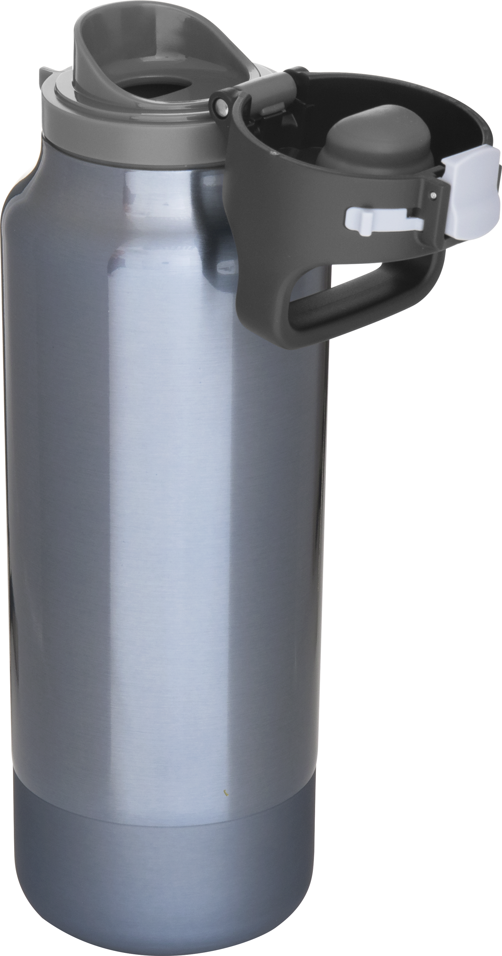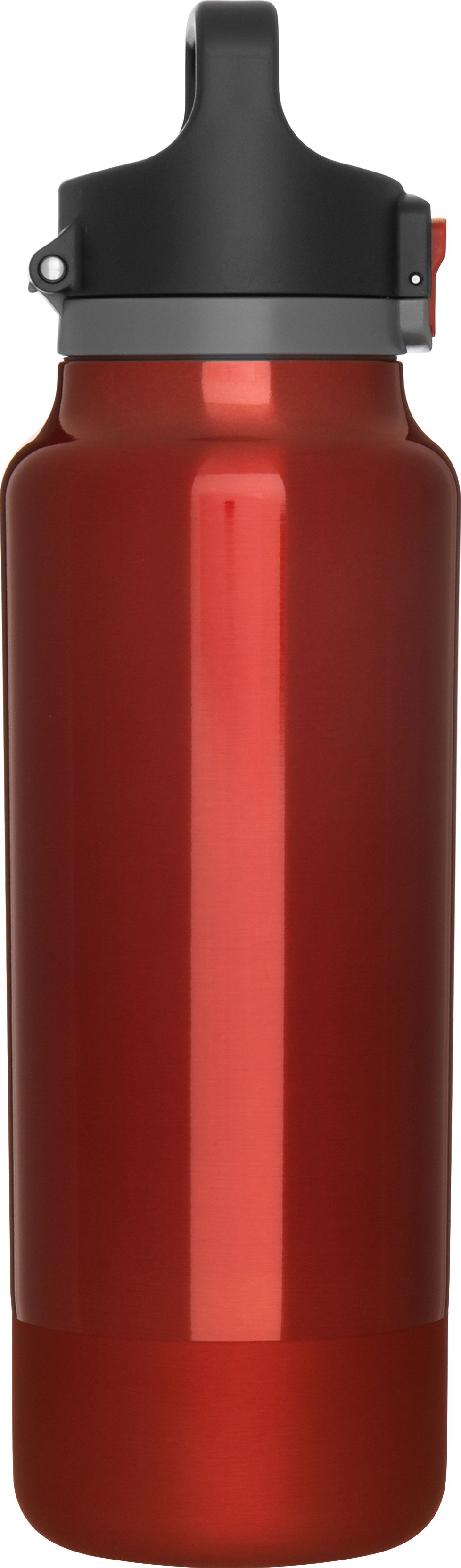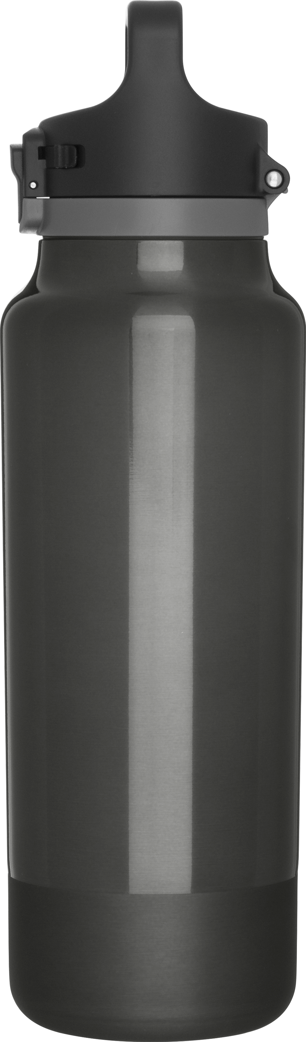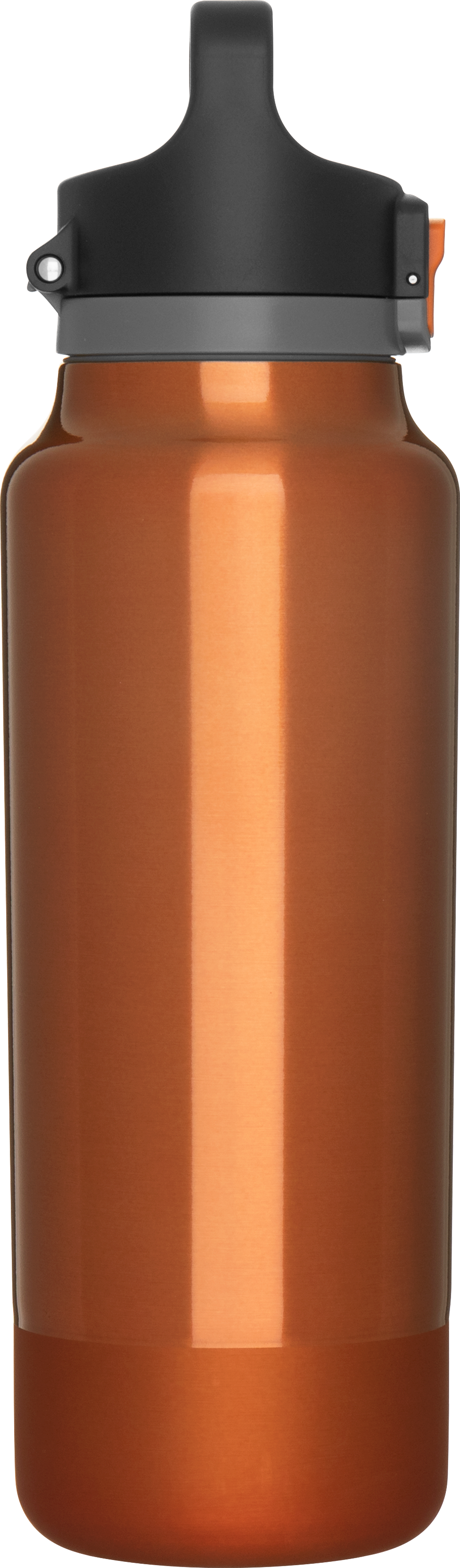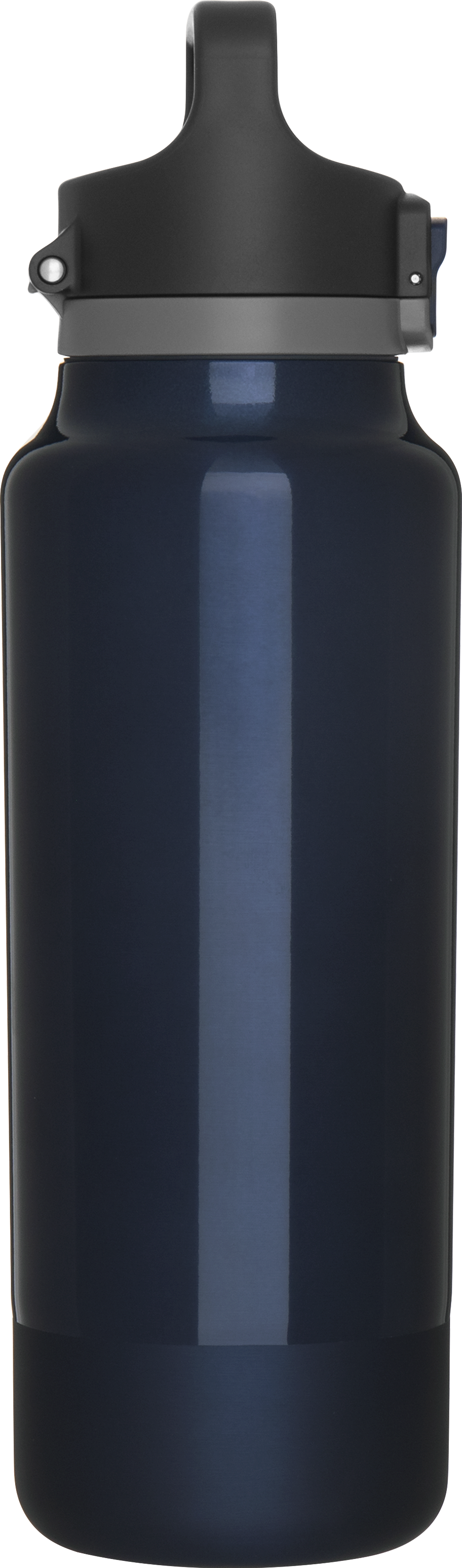 The h2go Ranger 25 oz thermal bottle is designed for durability and ease of use, whether you're on the trail or in the office. Made from double wall 18/8 stainless steel with copper vacuum insulation, it keeps beverages hot or cold for hours. The threaded lid features a push-button locking mechanism and sip opening for secure, one-handed use. A built-in carrying handle adds convenience, while the tinted finish and rubberized base provide style and stability.