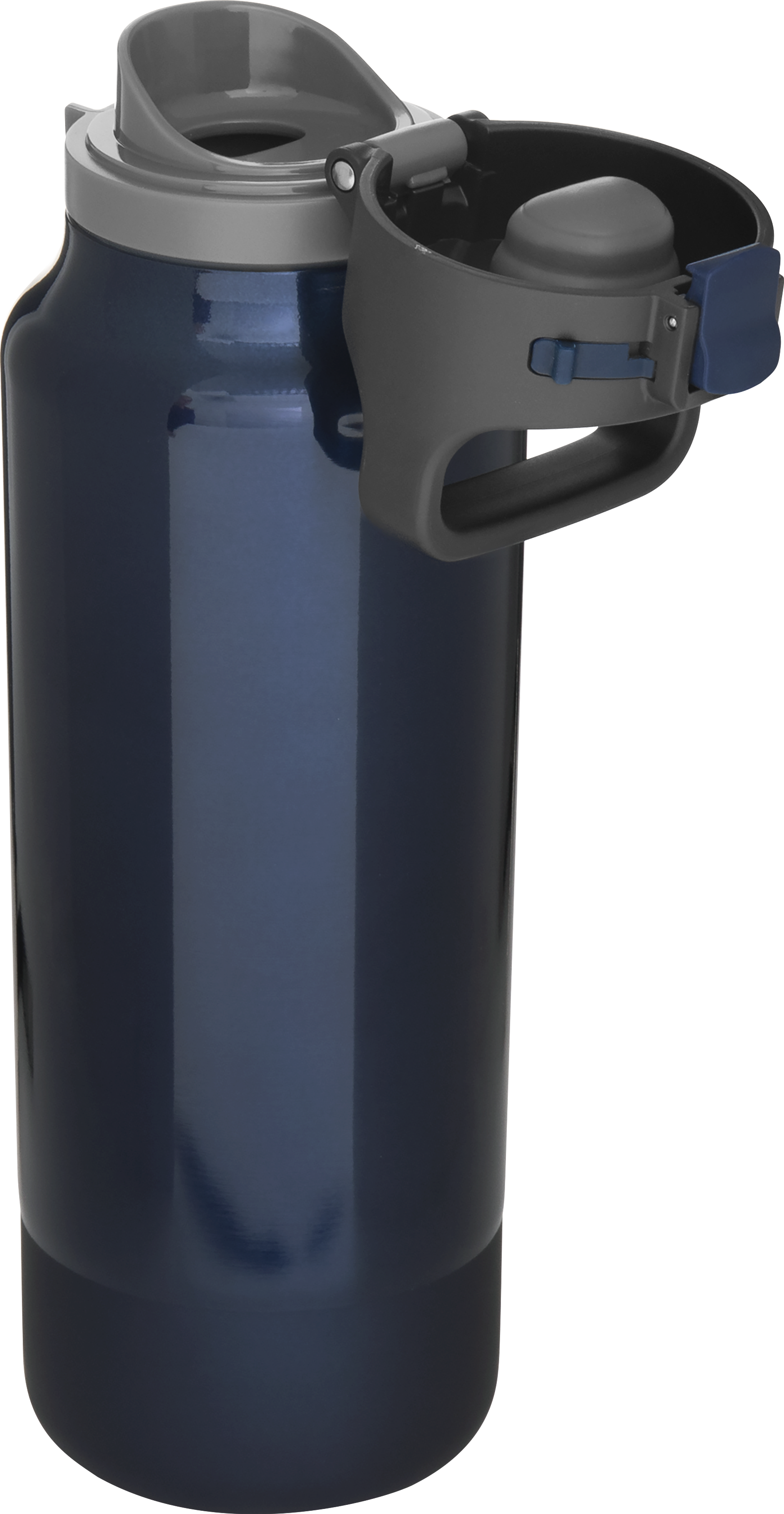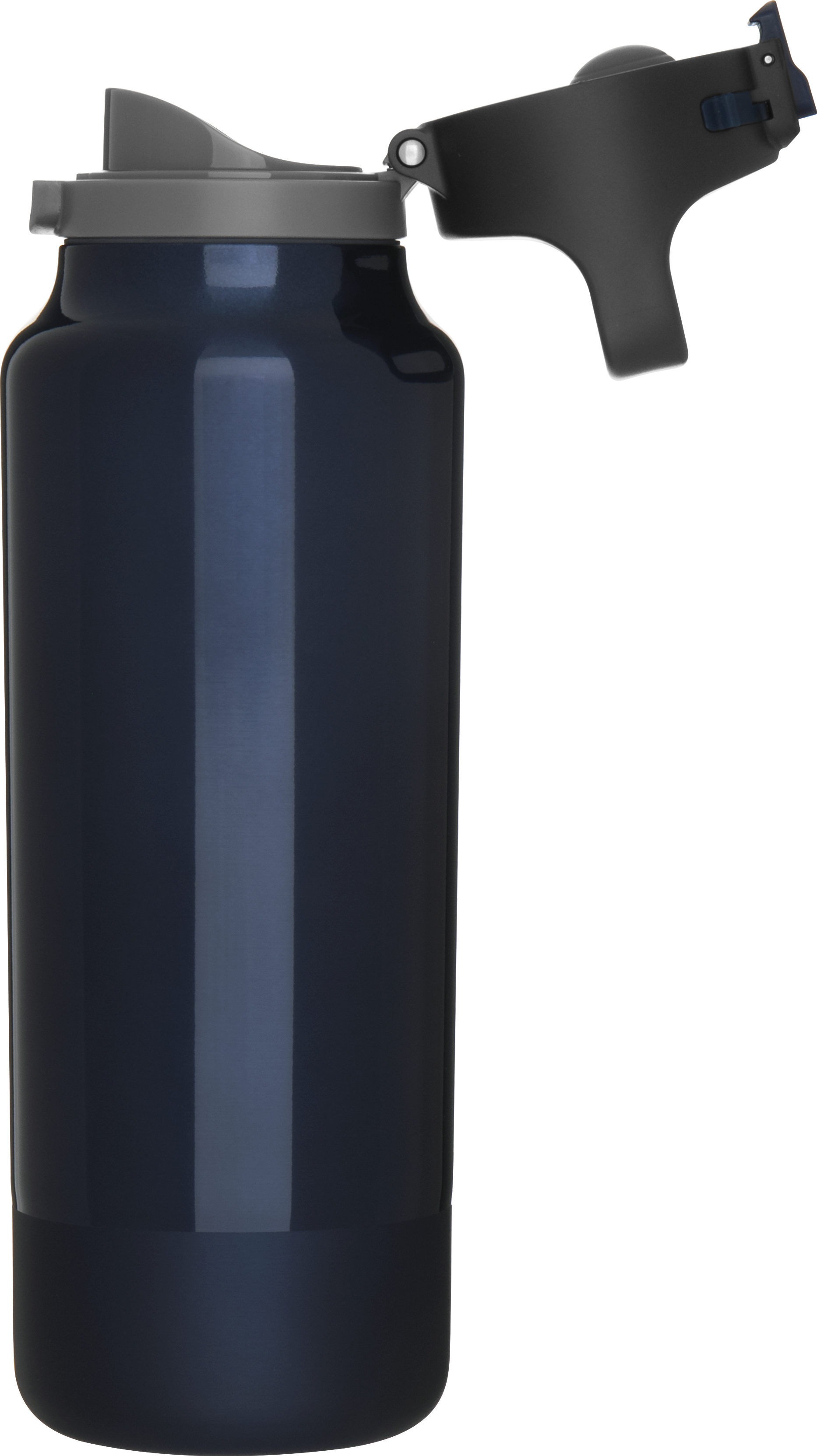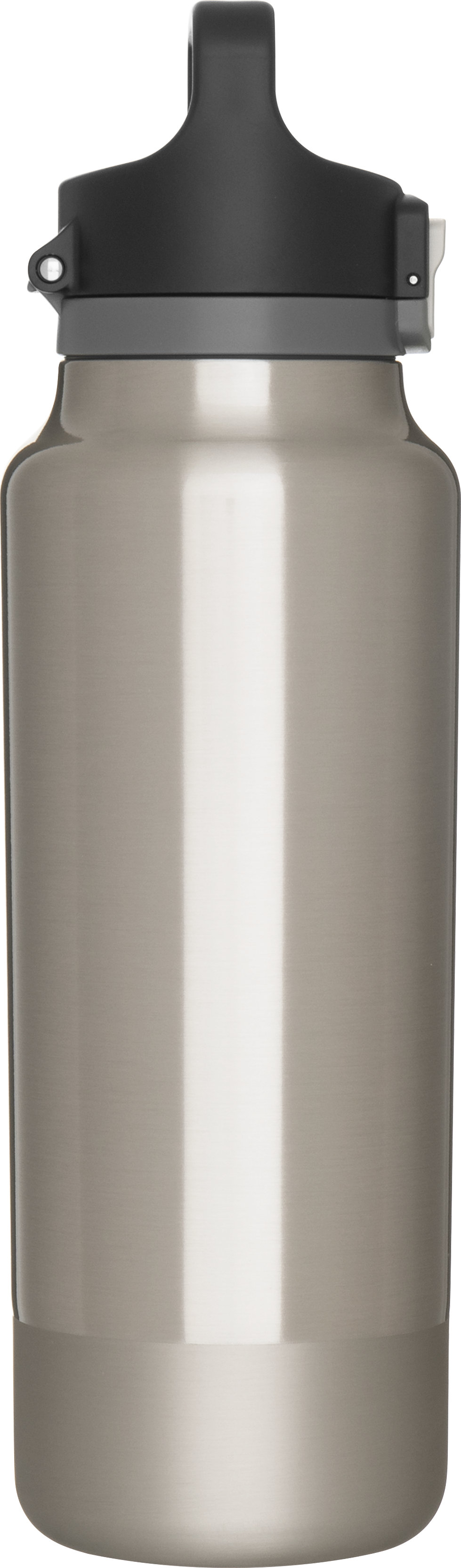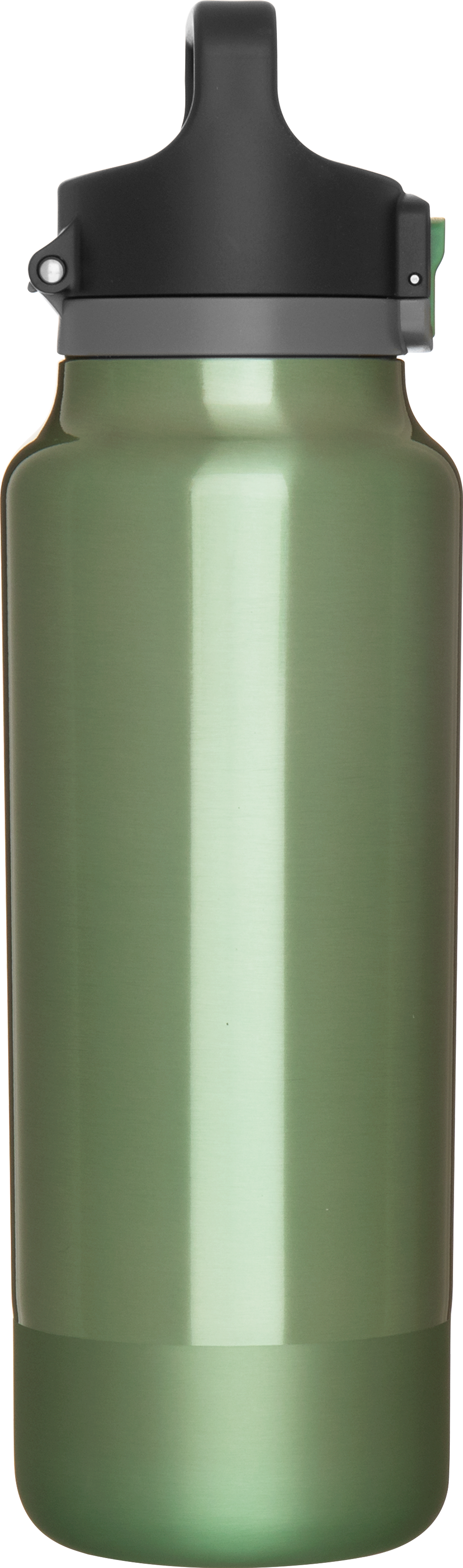 The h2go Ranger 25 oz thermal bottle is designed for durability and ease of use, whether you're on the trail or in the office. Made from double wall 18/8 stainless steel with copper vacuum insulation, it keeps beverages hot or cold for hours. The threaded lid features a push-button locking mechanism and sip opening for secure, one-handed use. A built-in carrying handle adds convenience, while the tinted finish and rubberized base provide style and stability.