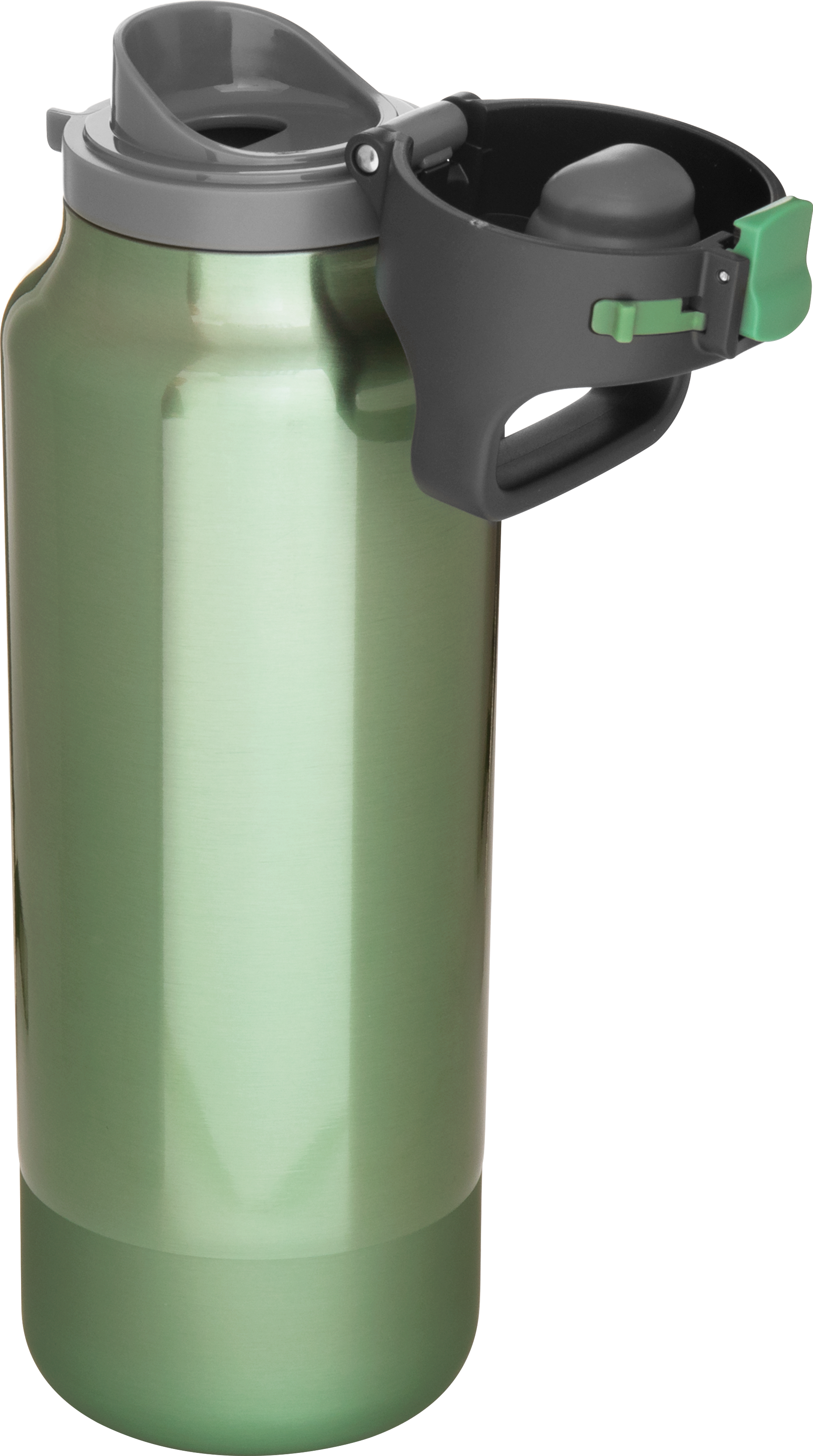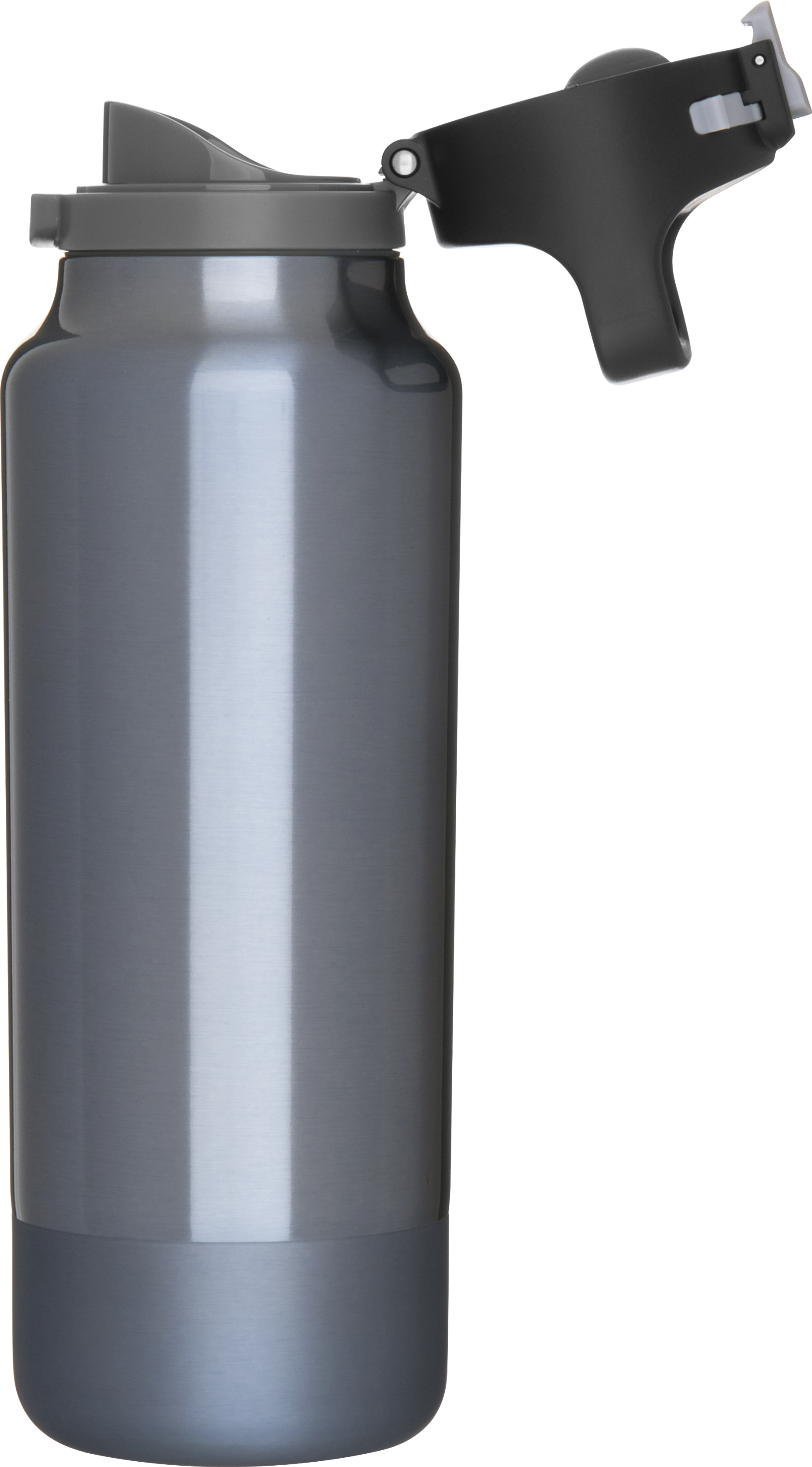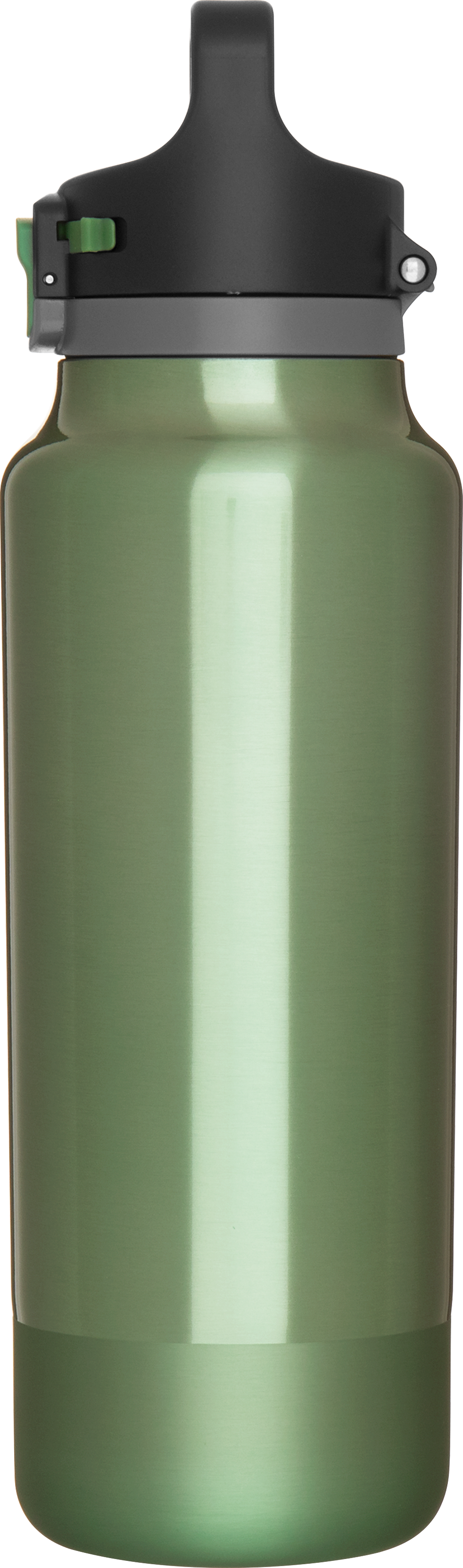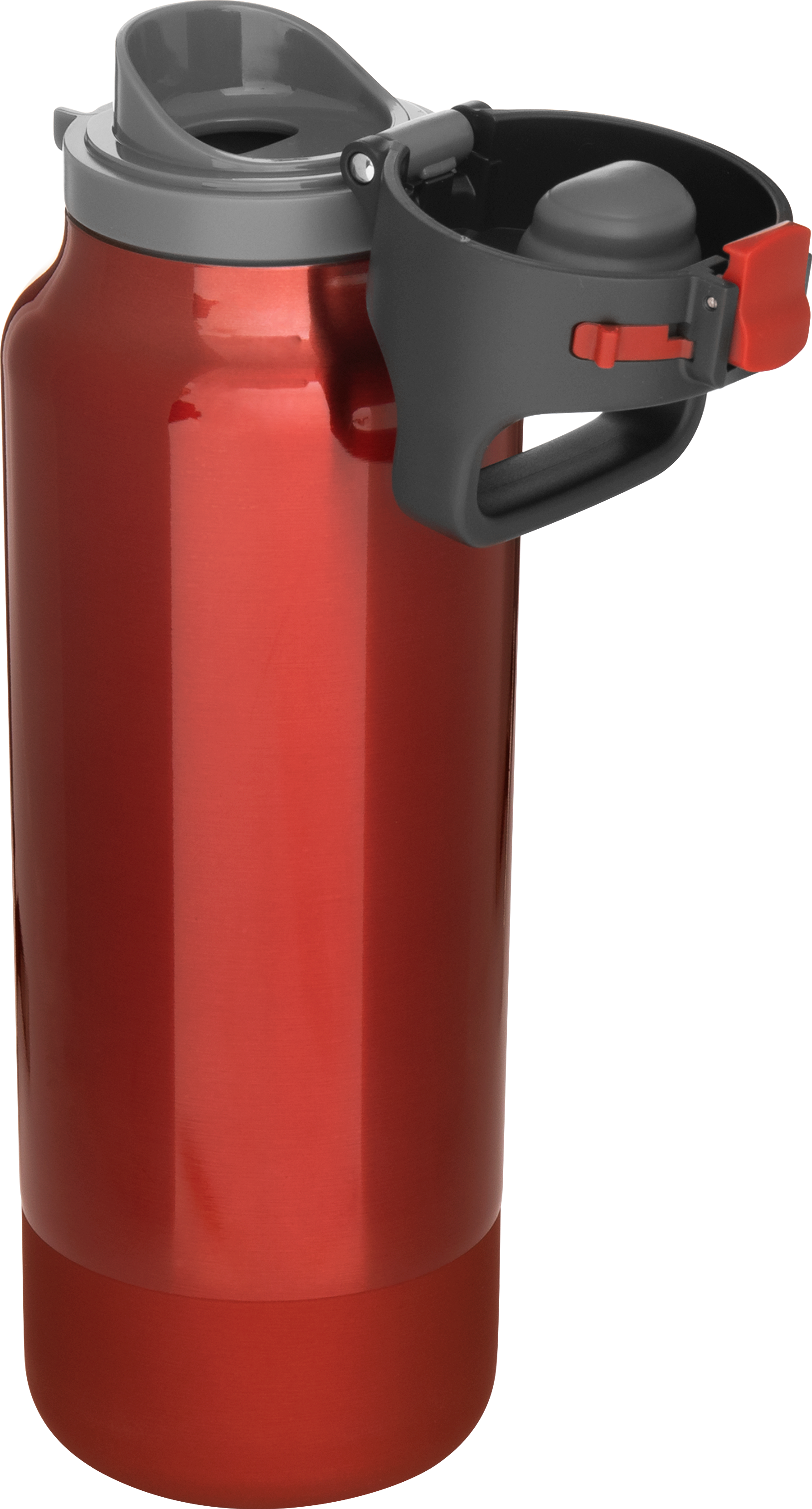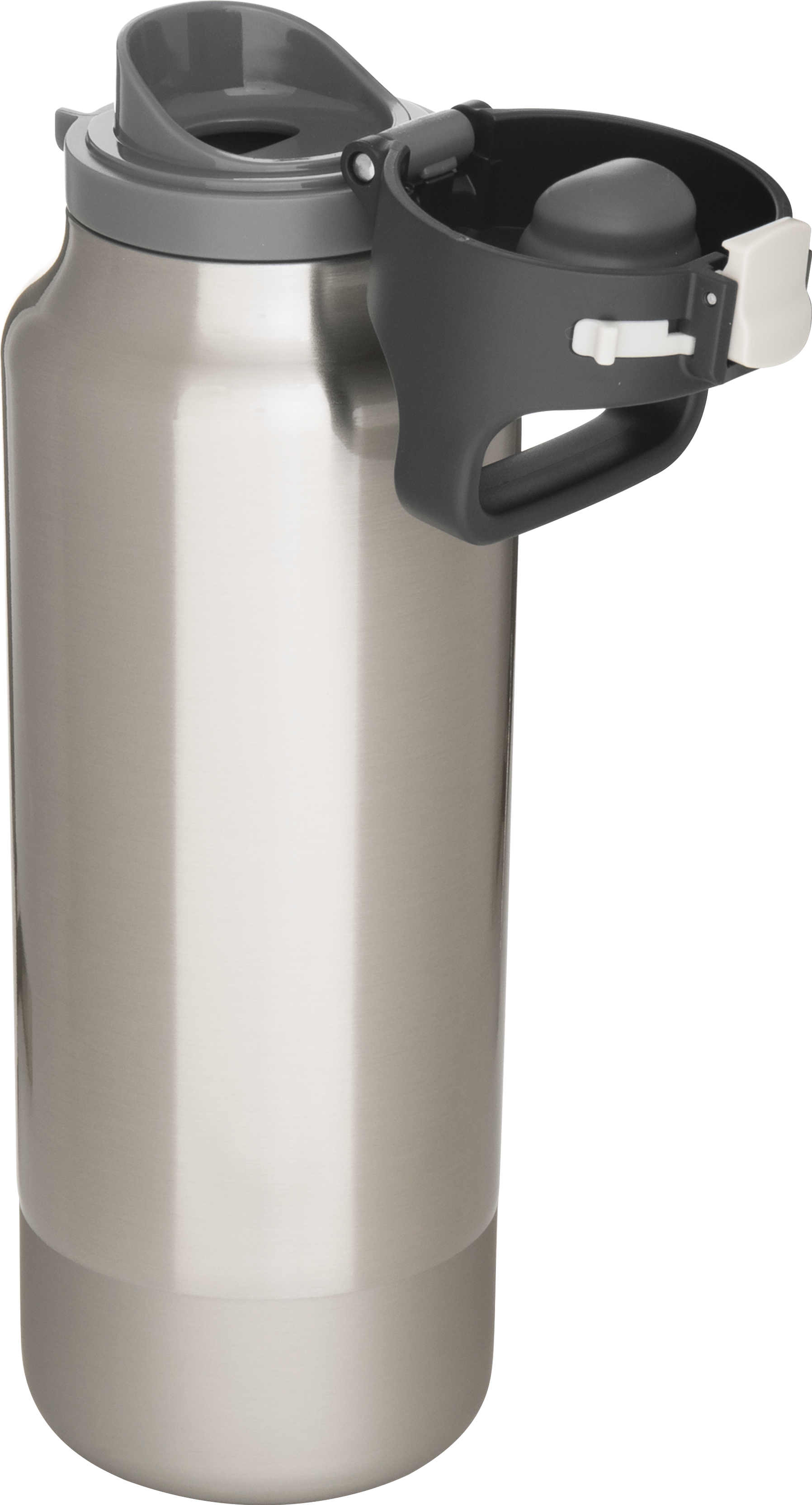The h2go Ranger 25 oz thermal bottle is designed for durability and ease of use, whether you're on the trail or in the office. Made from double wall 18/8 stainless steel with copper vacuum insulation, it keeps beverages hot or cold for hours. The threaded lid features a push-button locking mechanism and sip opening for secure, one-handed use. A built-in carrying handle adds convenience, while the tinted finish and rubberized base provide style and stability.