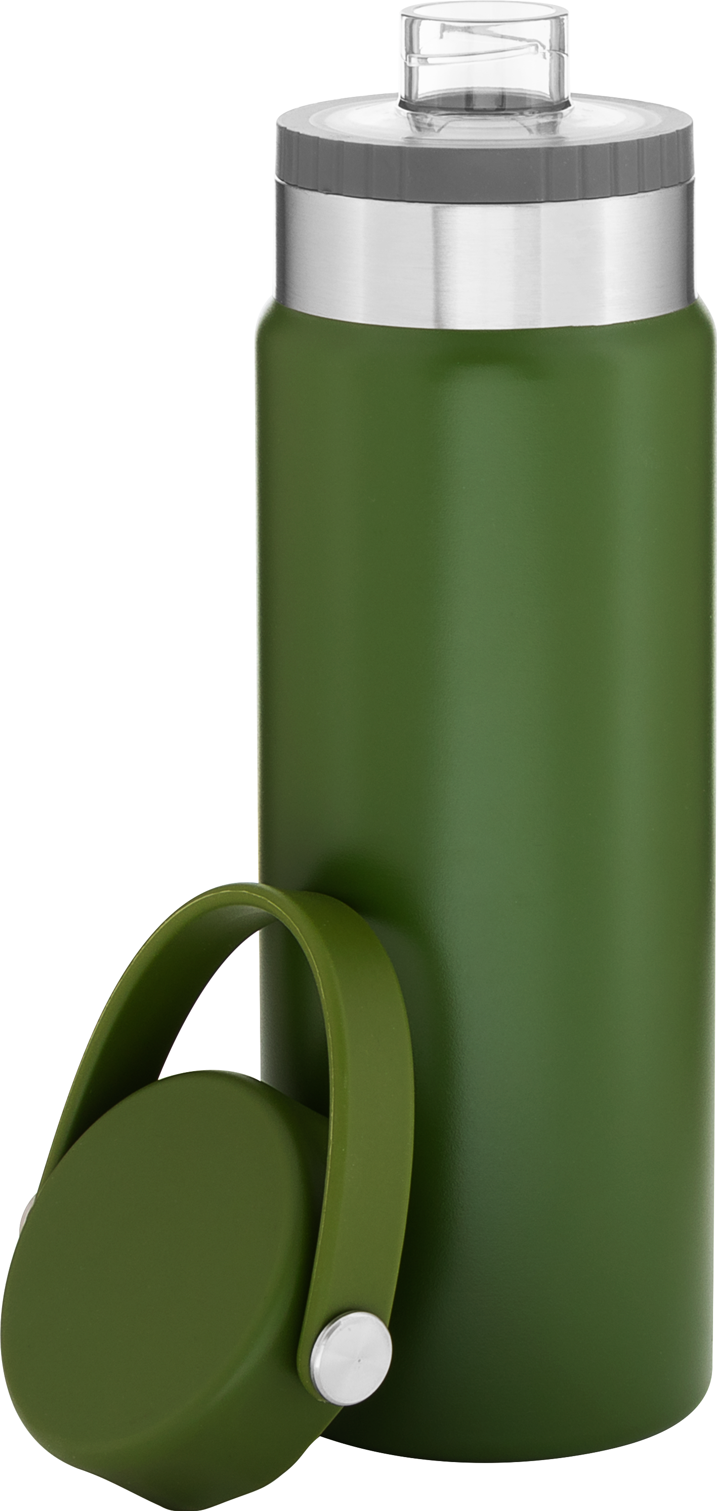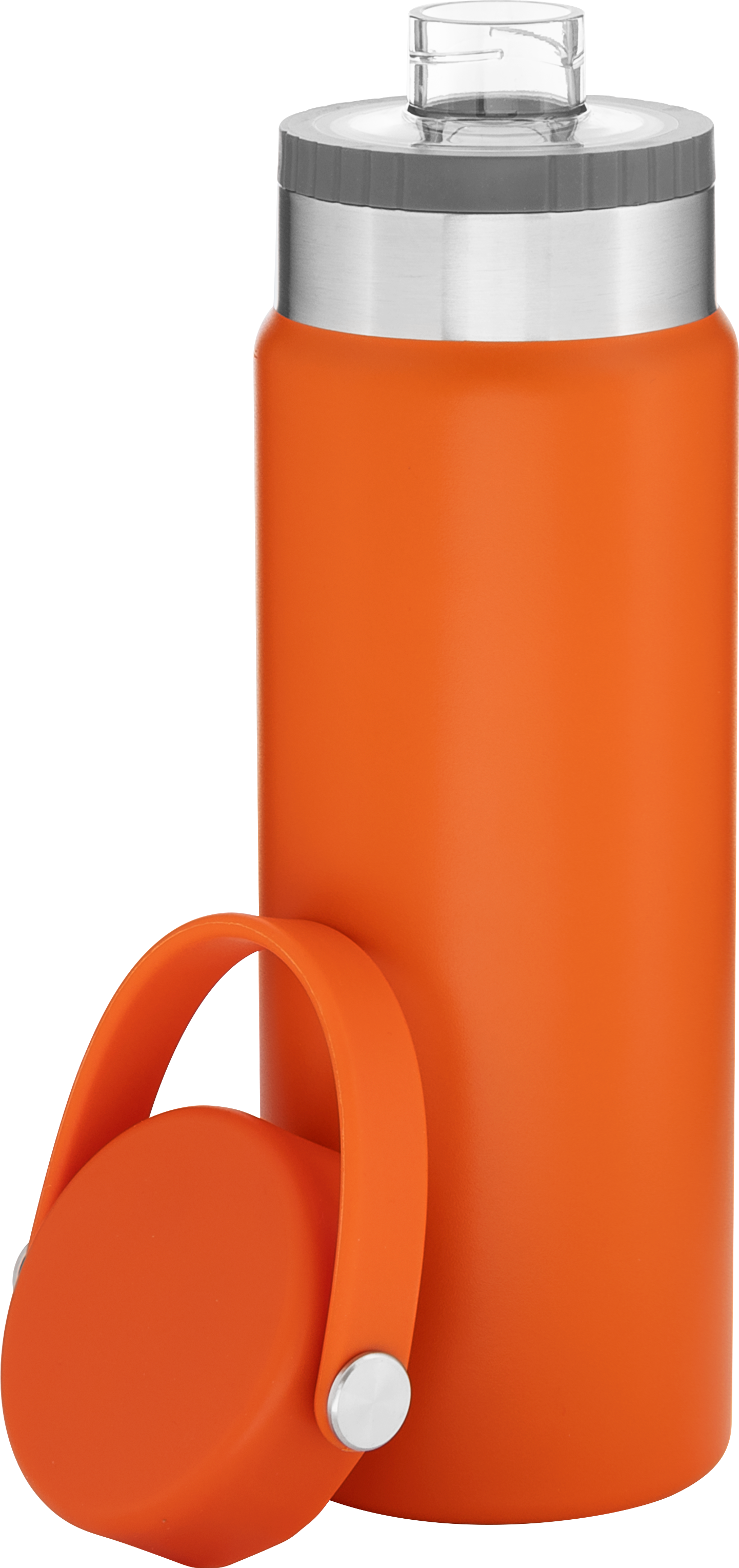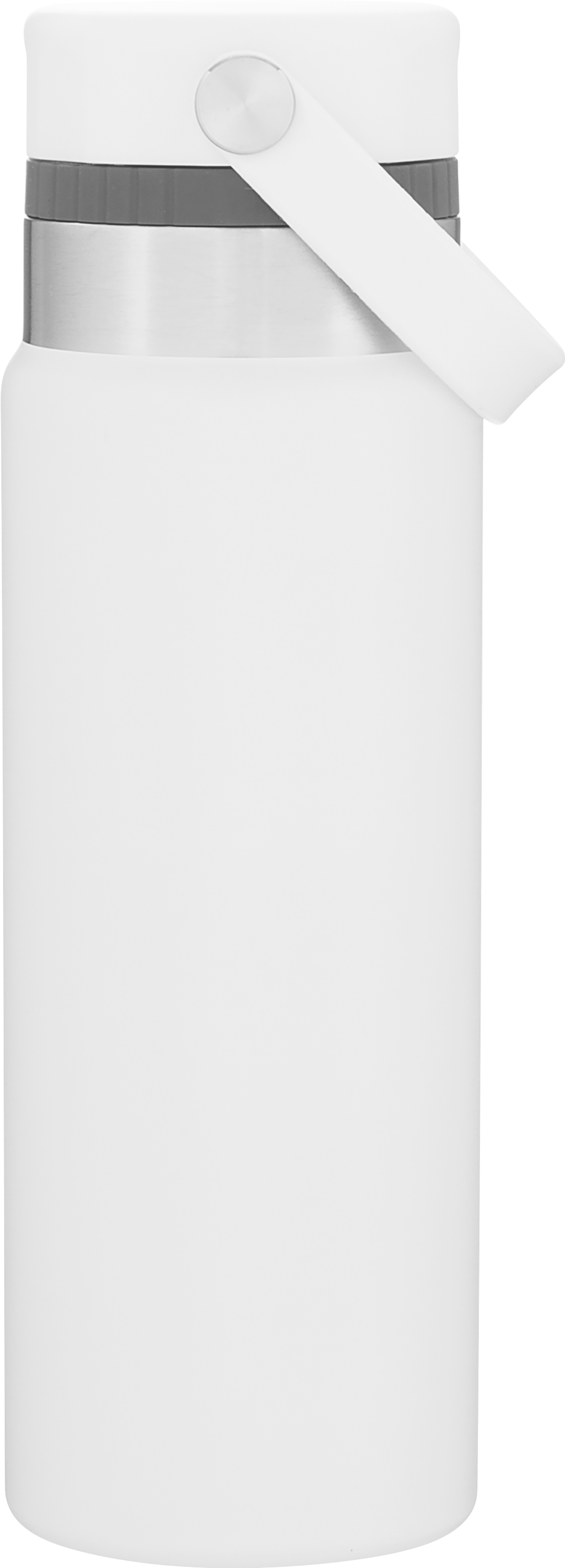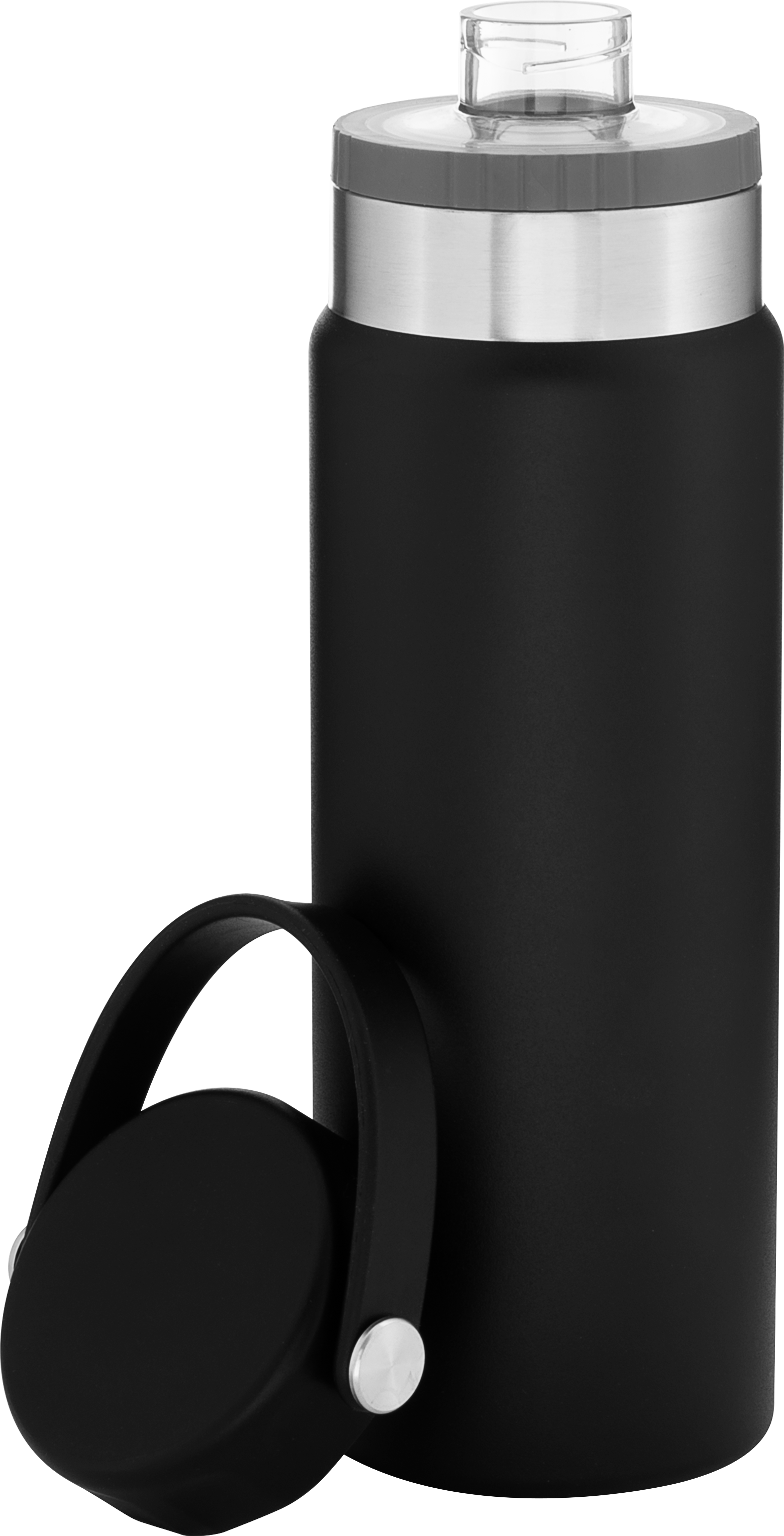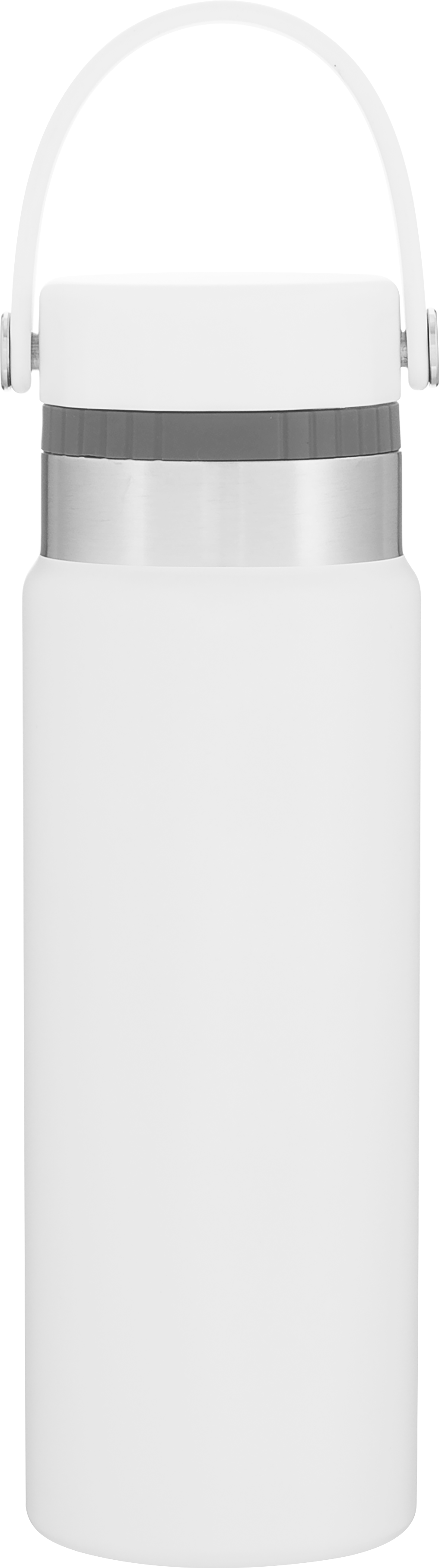 The h2go Realm 25 oz thermal bottle is designed for active days and all-day hydration. Made from double-wall 18/8 stainless steel with copper vacuum insulation, it keeps drinks hot or cold for hours. It features a threaded lid with a flexible carrying handle, a separate threaded drinking spout for easy sipping, and a silicone grip accent for added comfort and control. Finished with a durable powder coated exterior, the Realm is ready to go wherever you do.