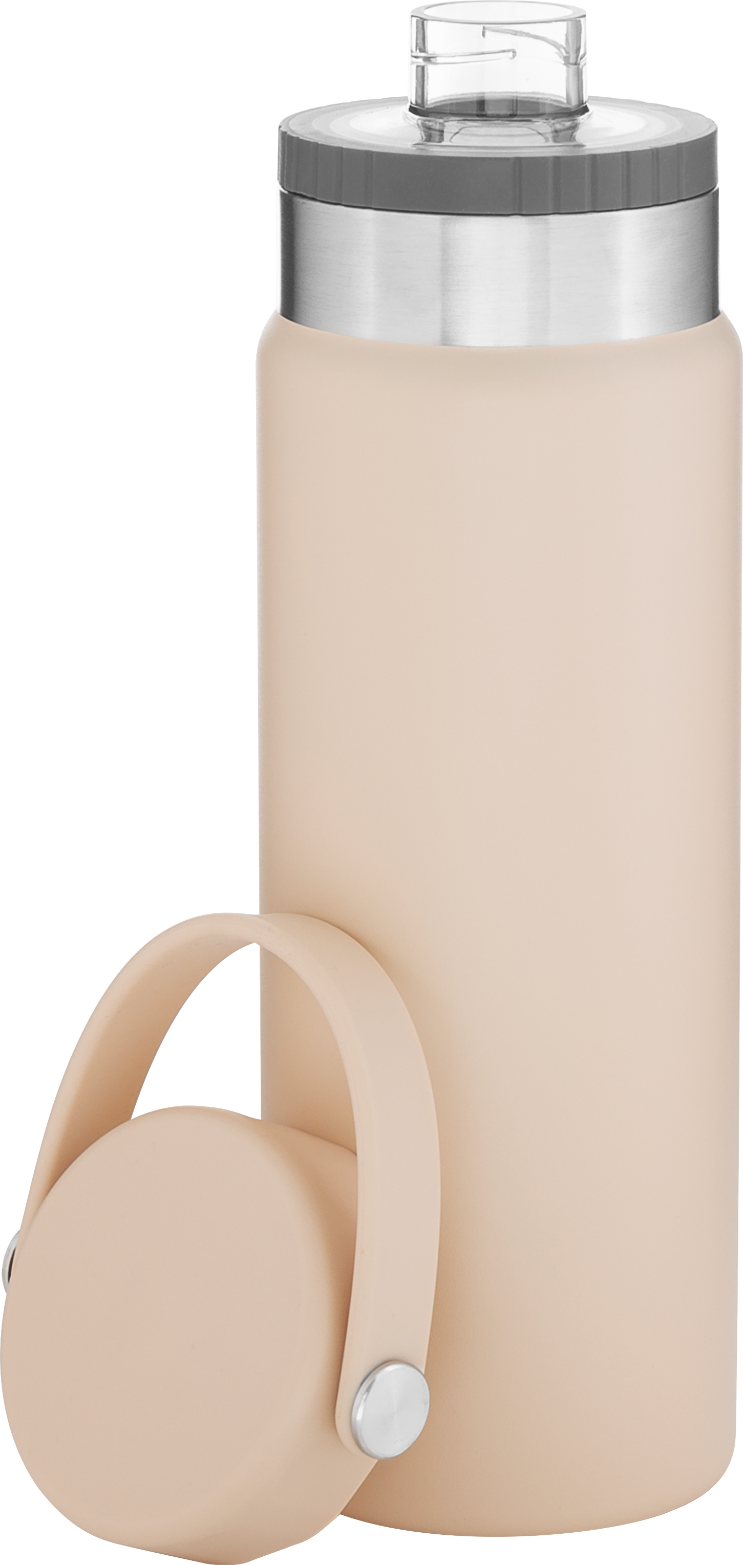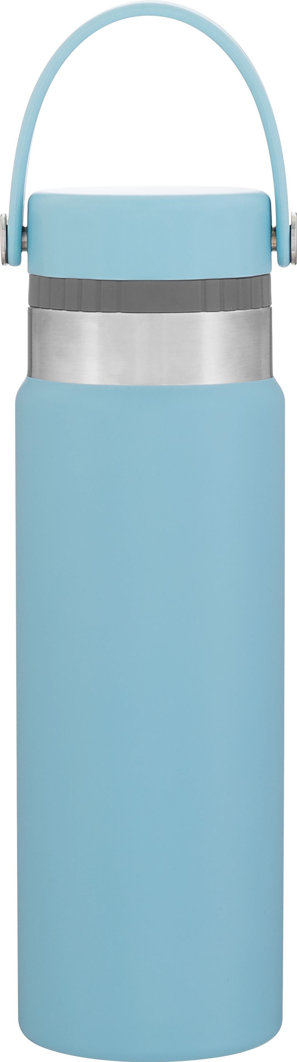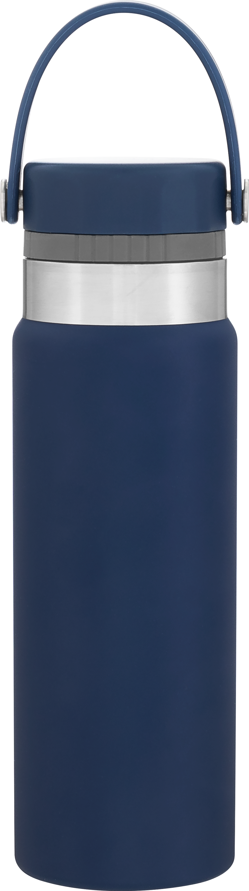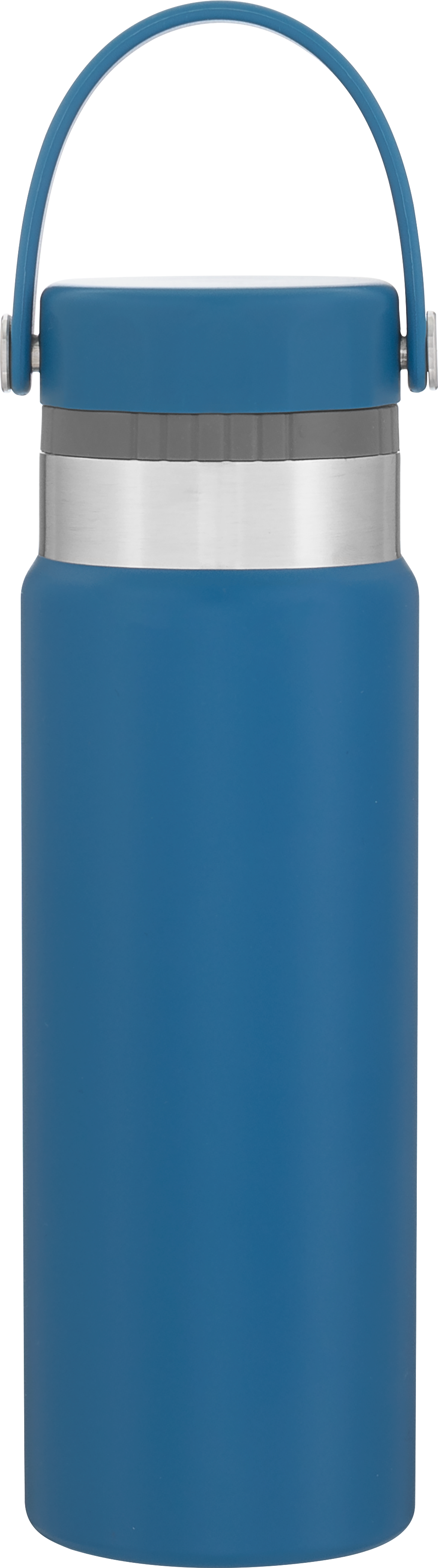 The h2go Realm 25 oz thermal bottle is designed for active days and all-day hydration. Made from double-wall 18/8 stainless steel with copper vacuum insulation, it keeps drinks hot or cold for hours. It features a threaded lid with a flexible carrying handle, a separate threaded drinking spout for easy sipping, and a silicone grip accent for added comfort and control. Finished with a durable powder coated exterior, the Realm is ready to go wherever you do.