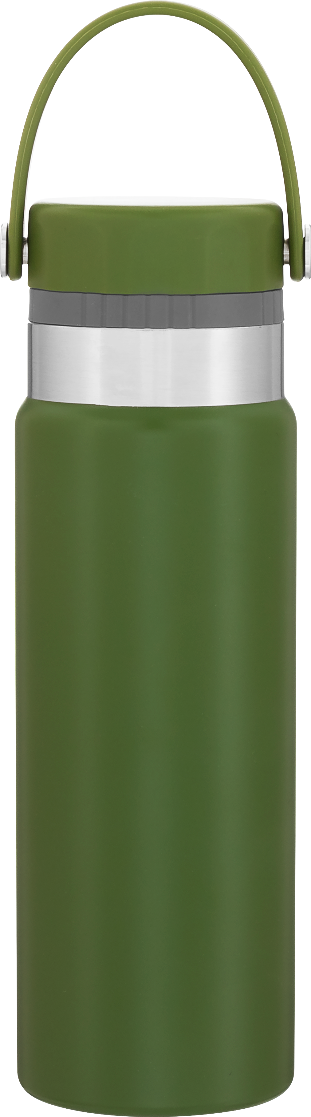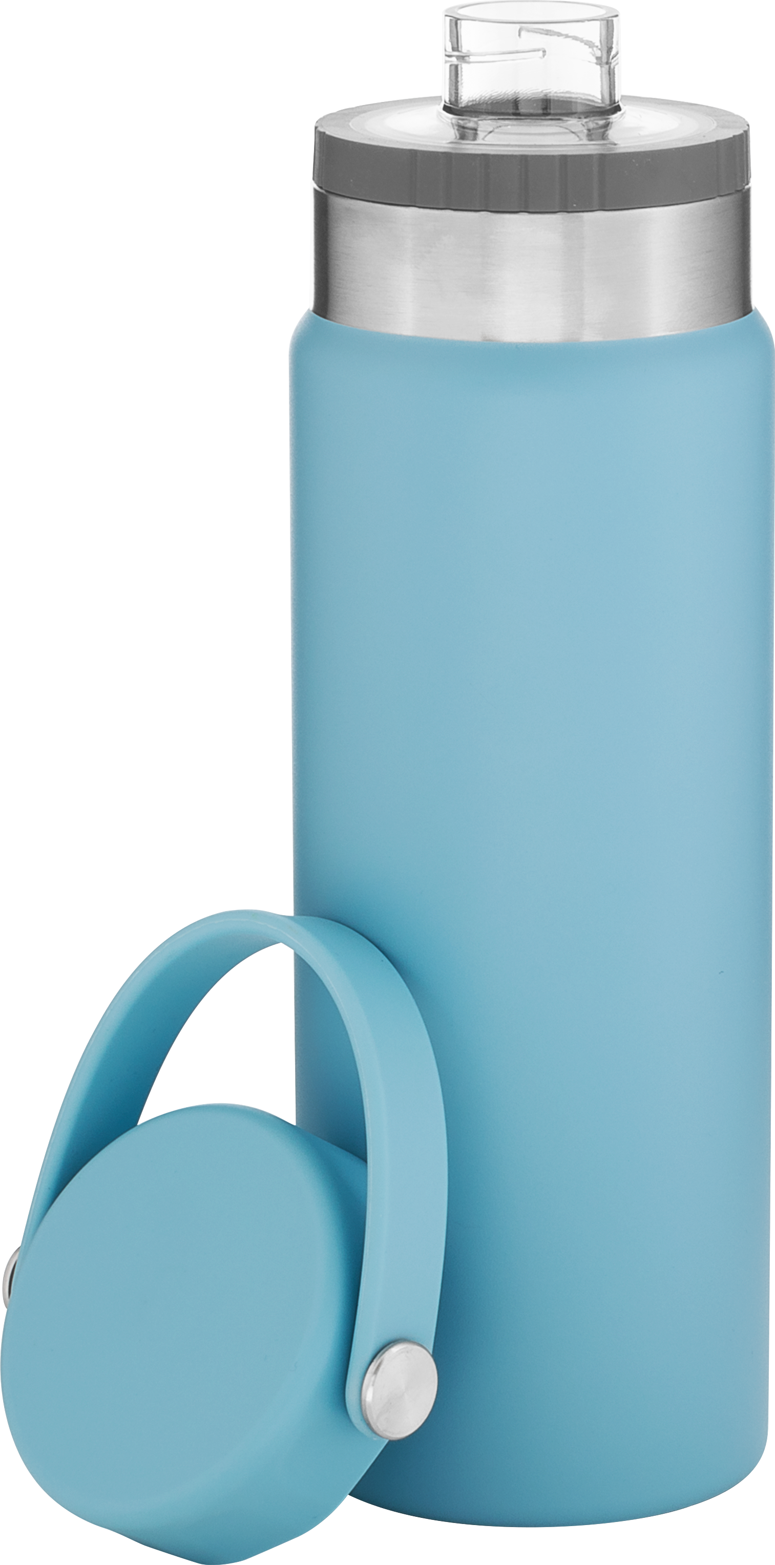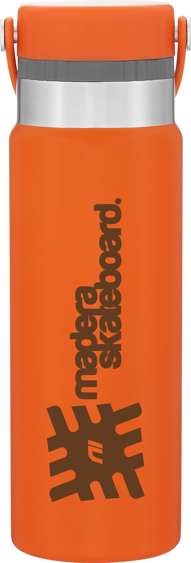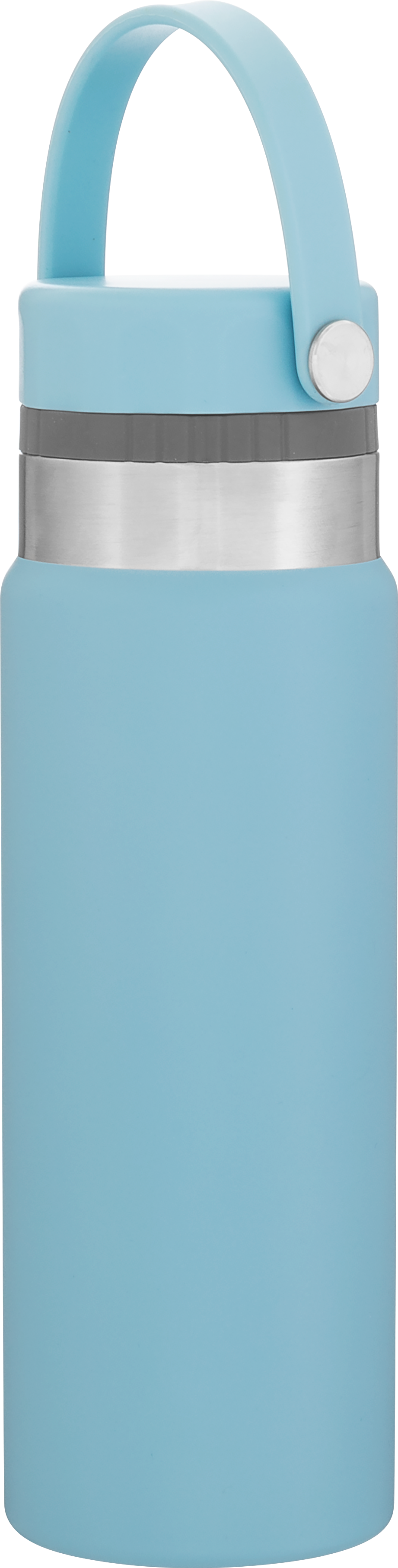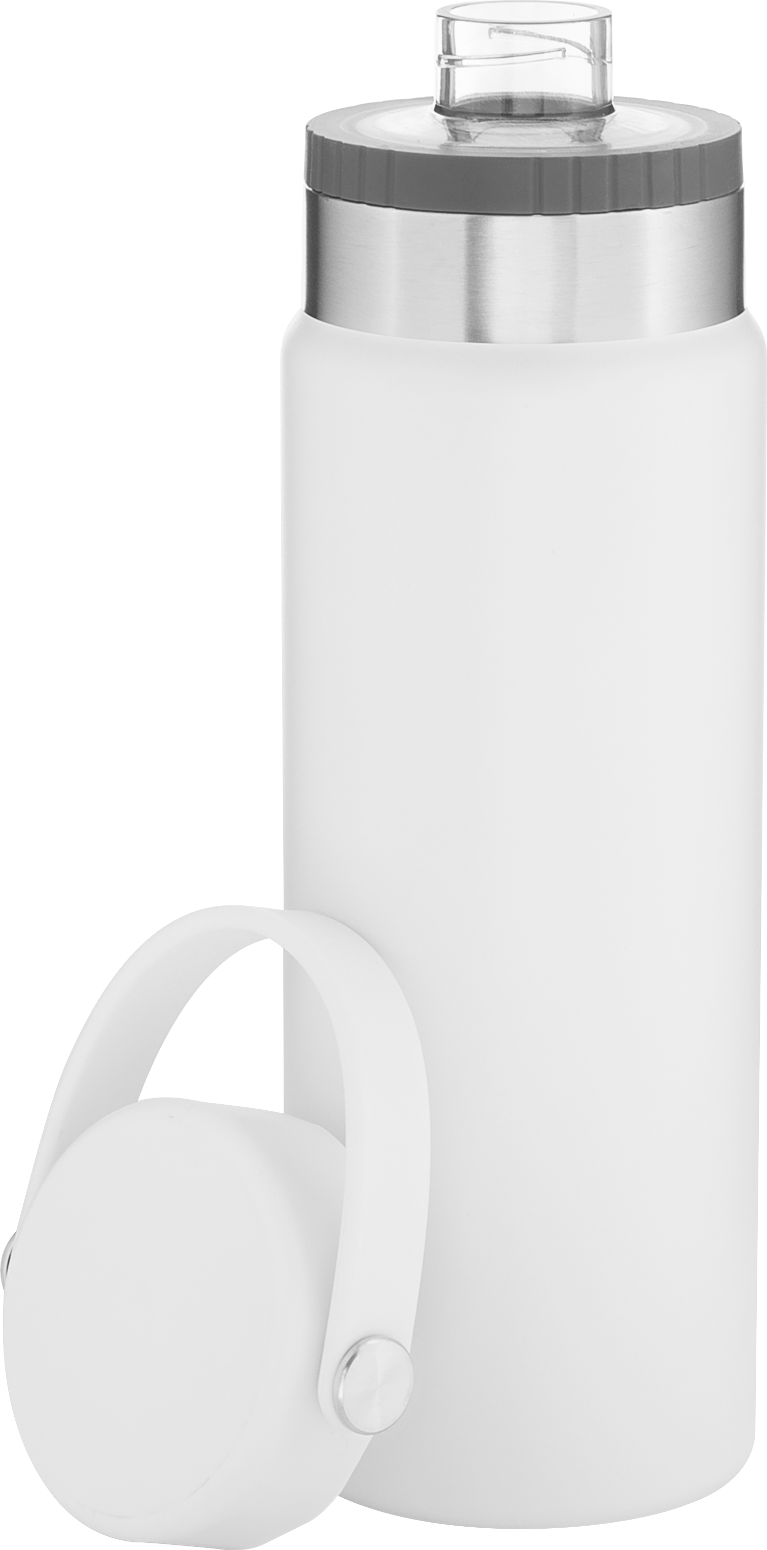 The h2go Realm 25 oz thermal bottle is designed for active days and all-day hydration. Made from double-wall 18/8 stainless steel with copper vacuum insulation, it keeps drinks hot or cold for hours. It features a threaded lid with a flexible carrying handle, a separate threaded drinking spout for easy sipping, and a silicone grip accent for added comfort and control. Finished with a durable powder coated exterior, the Realm is ready to go wherever you do.