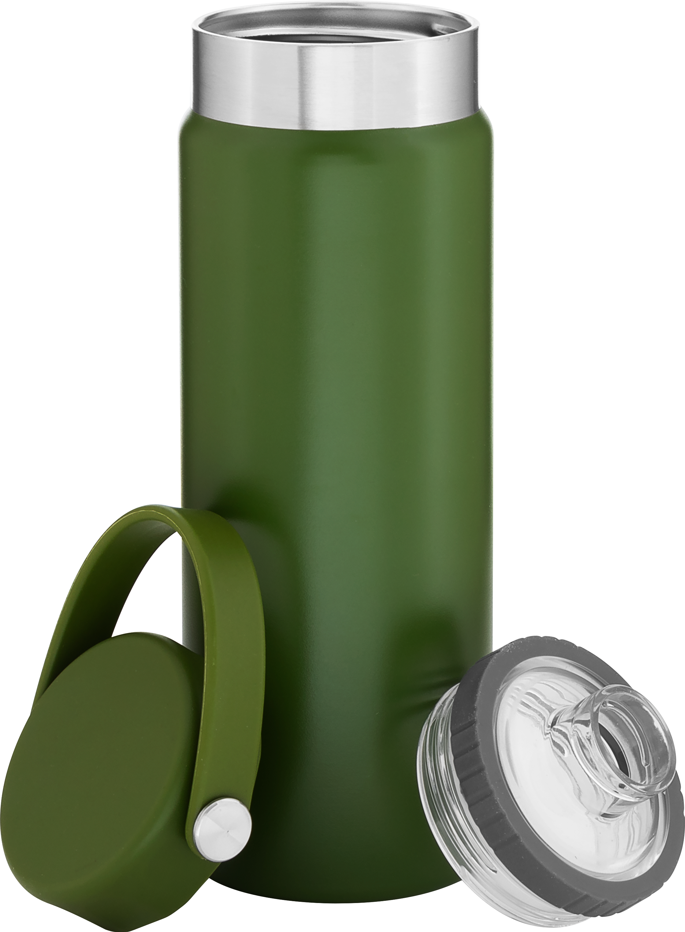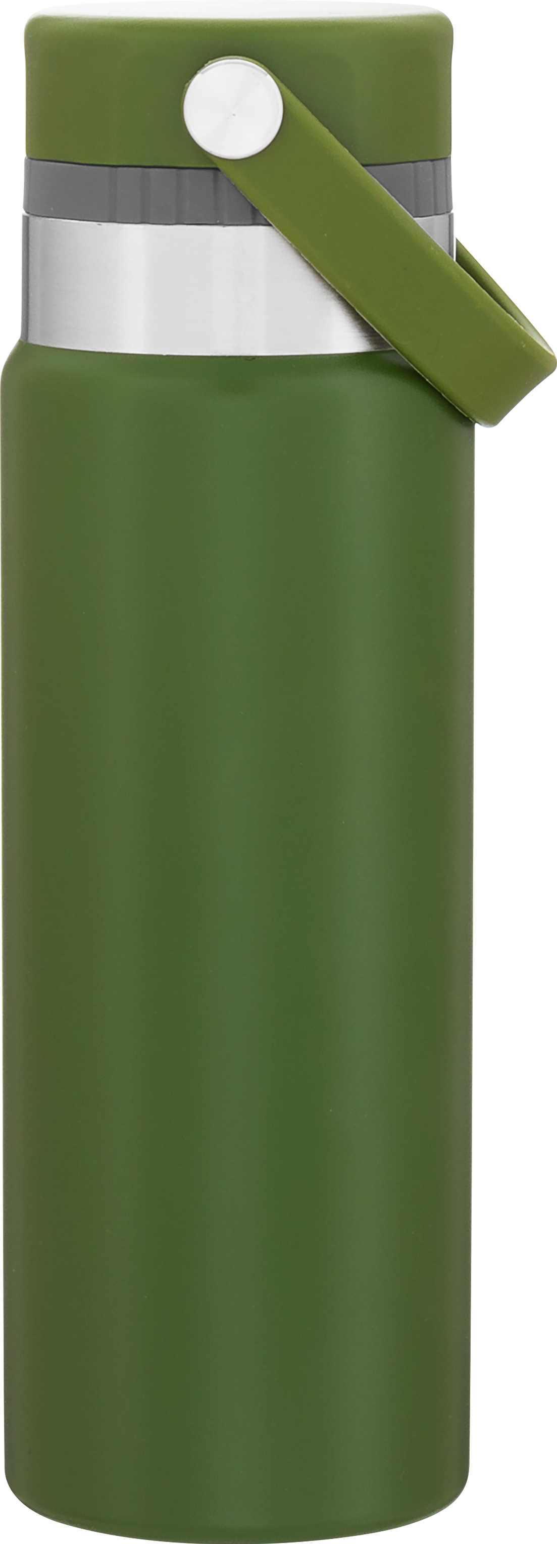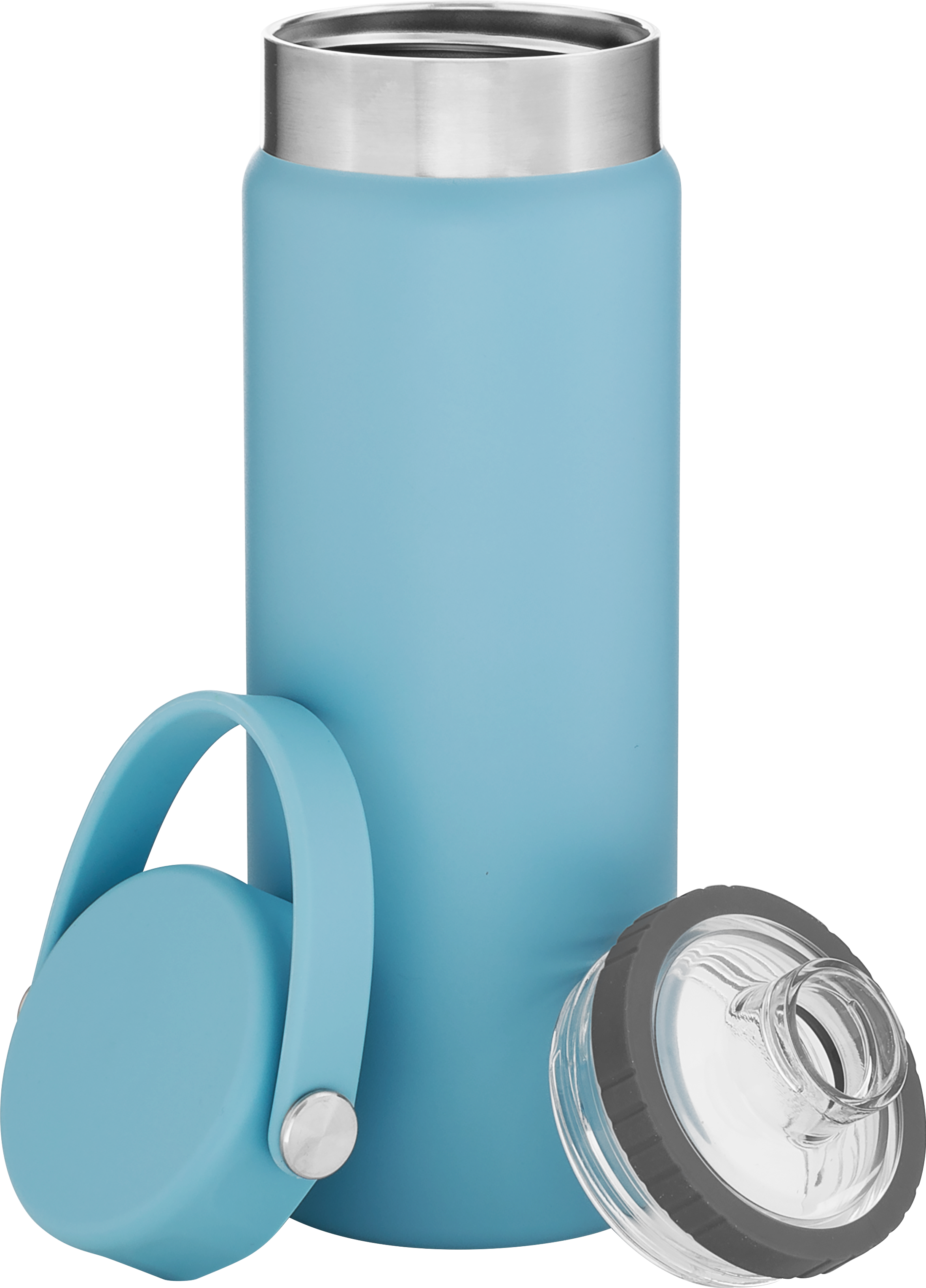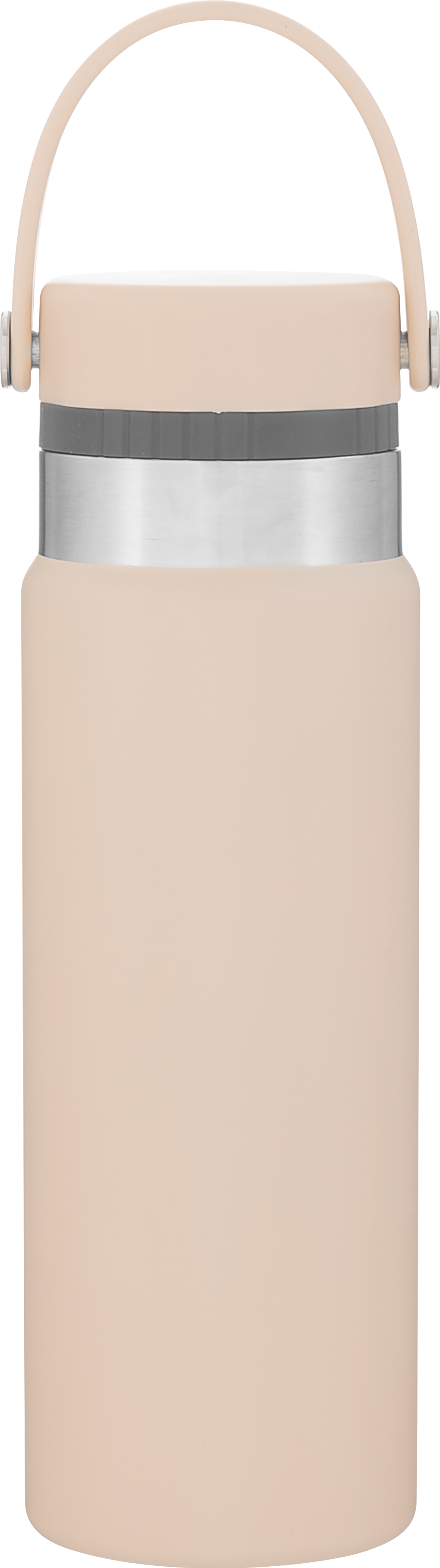 The h2go Realm 25 oz thermal bottle is designed for active days and all-day hydration. Made from double-wall 18/8 stainless steel with copper vacuum insulation, it keeps drinks hot or cold for hours. It features a threaded lid with a flexible carrying handle, a separate threaded drinking spout for easy sipping, and a silicone grip accent for added comfort and control. Finished with a durable powder coated exterior, the Realm is ready to go wherever you do.