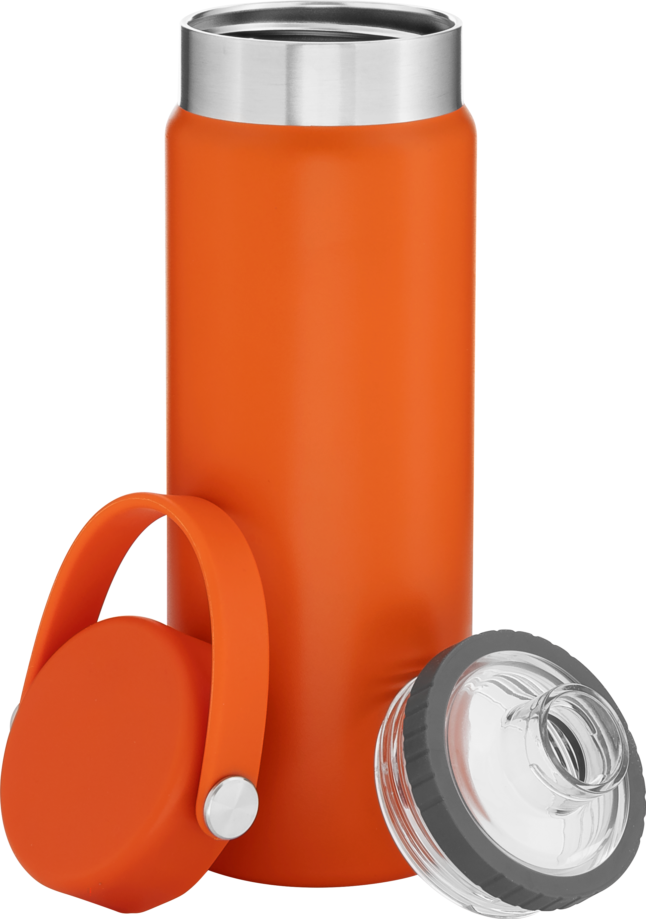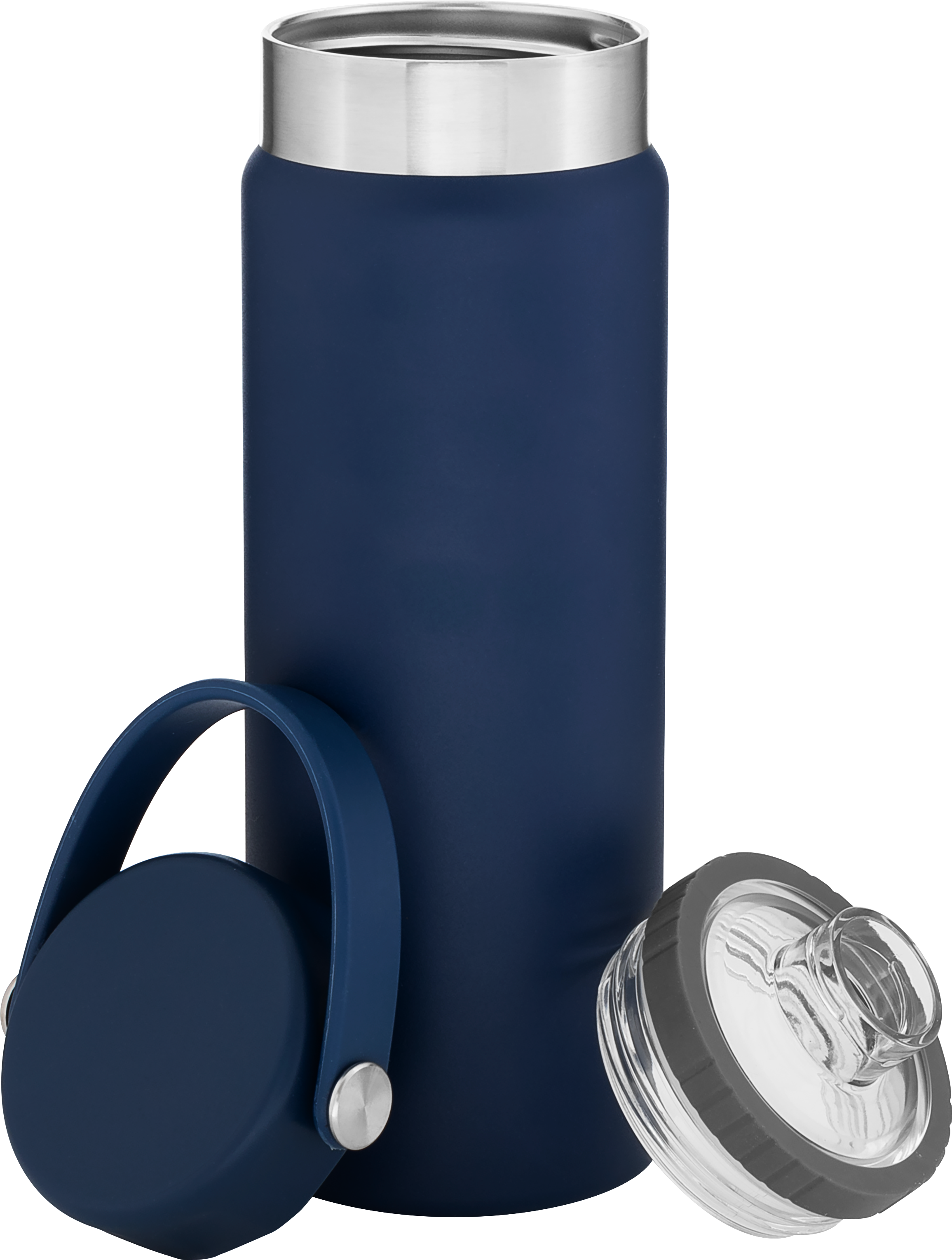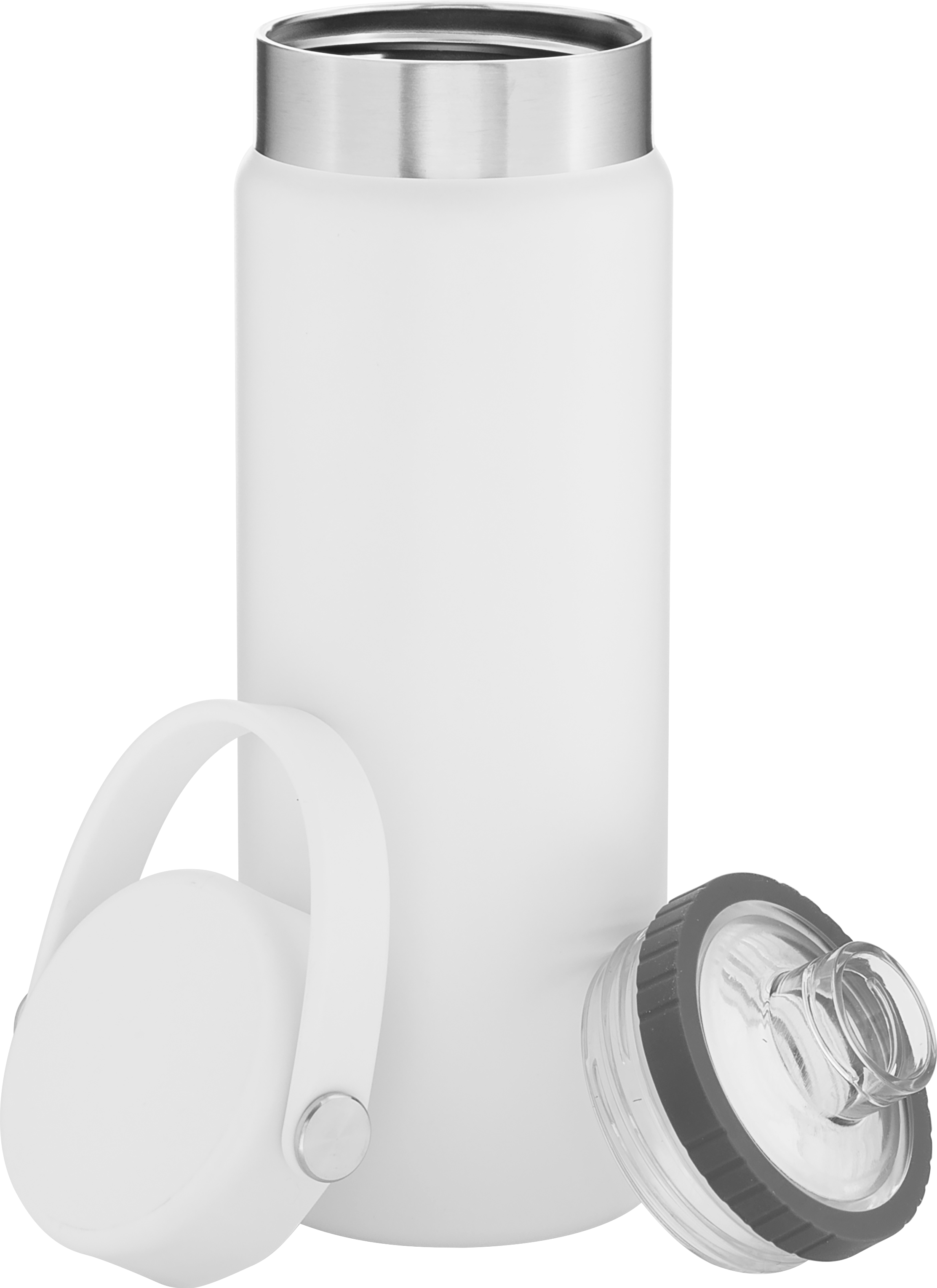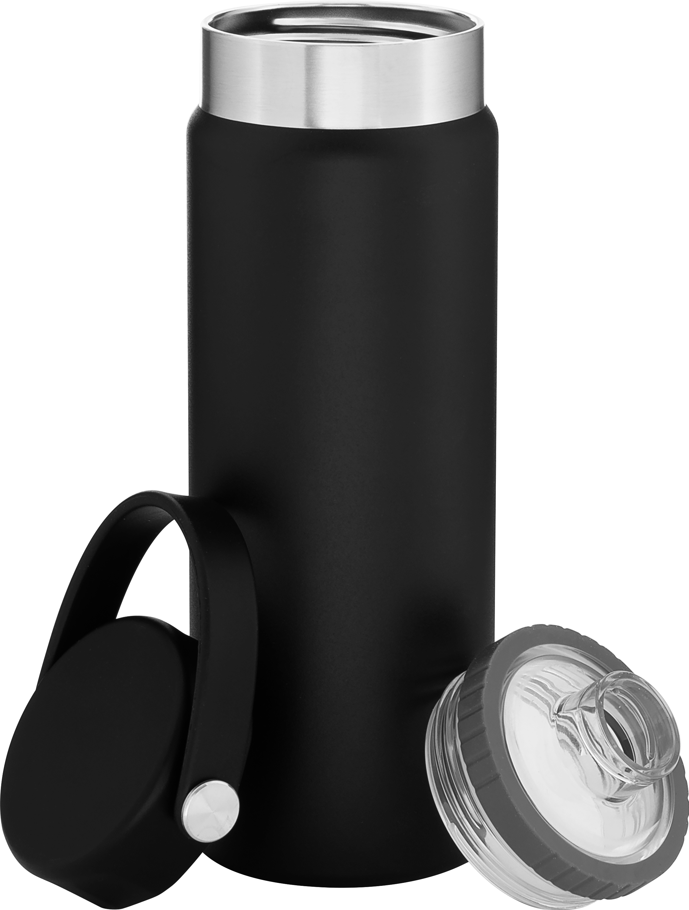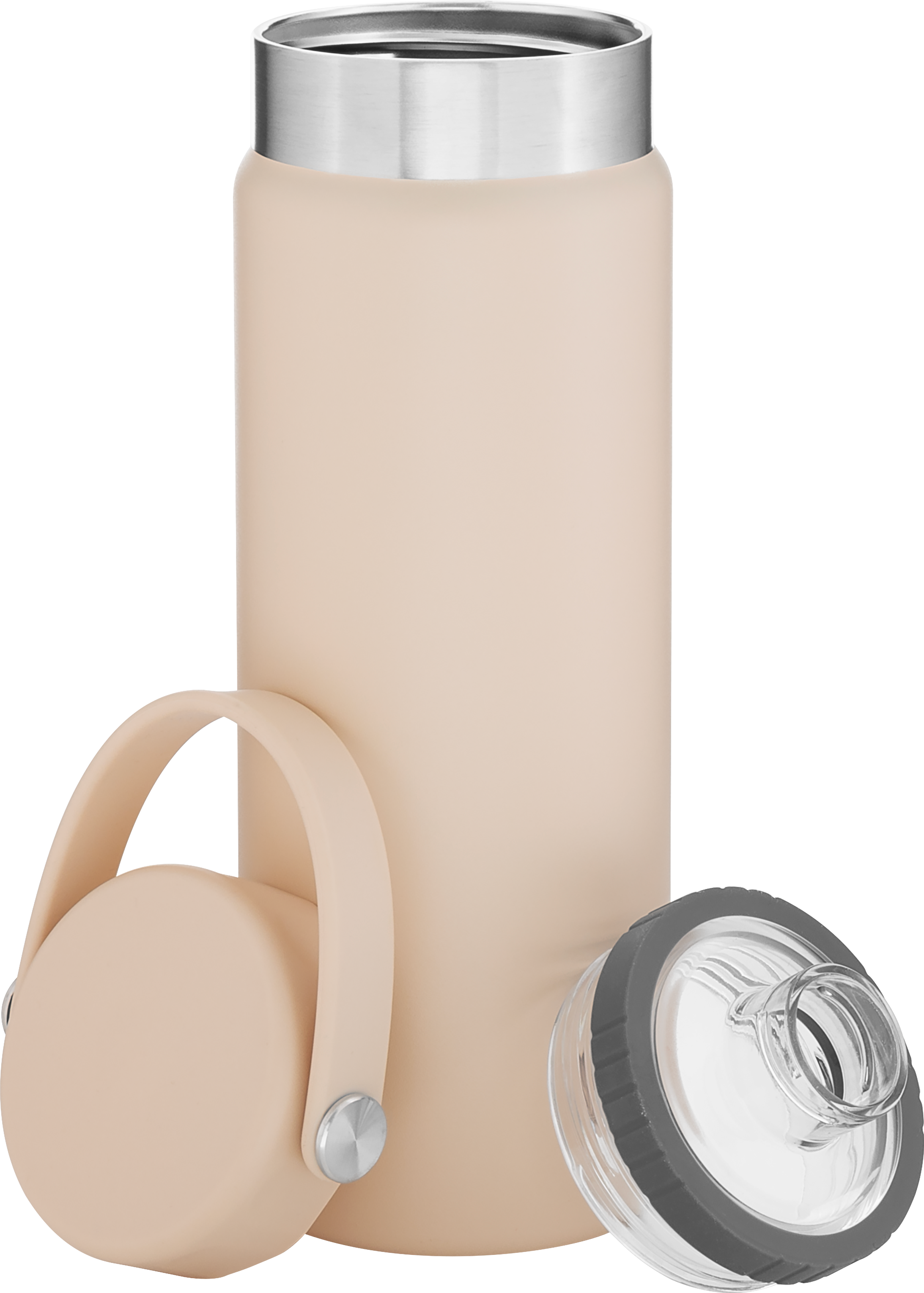 The h2go Realm 25 oz thermal bottle is designed for active days and all-day hydration. Made from double-wall 18/8 stainless steel with copper vacuum insulation, it keeps drinks hot or cold for hours. It features a threaded lid with a flexible carrying handle, a separate threaded drinking spout for easy sipping, and a silicone grip accent for added comfort and control. Finished with a durable powder coated exterior, the Realm is ready to go wherever you do.