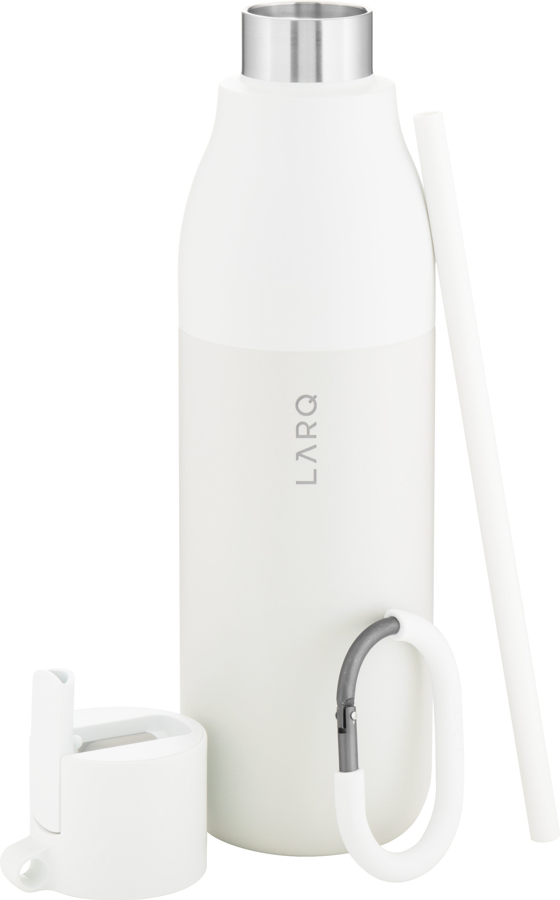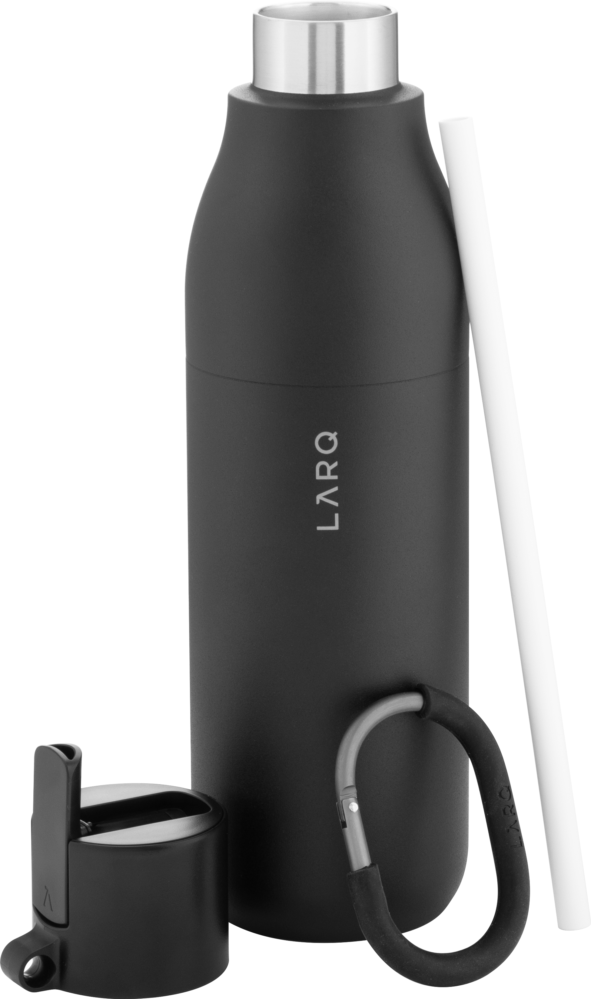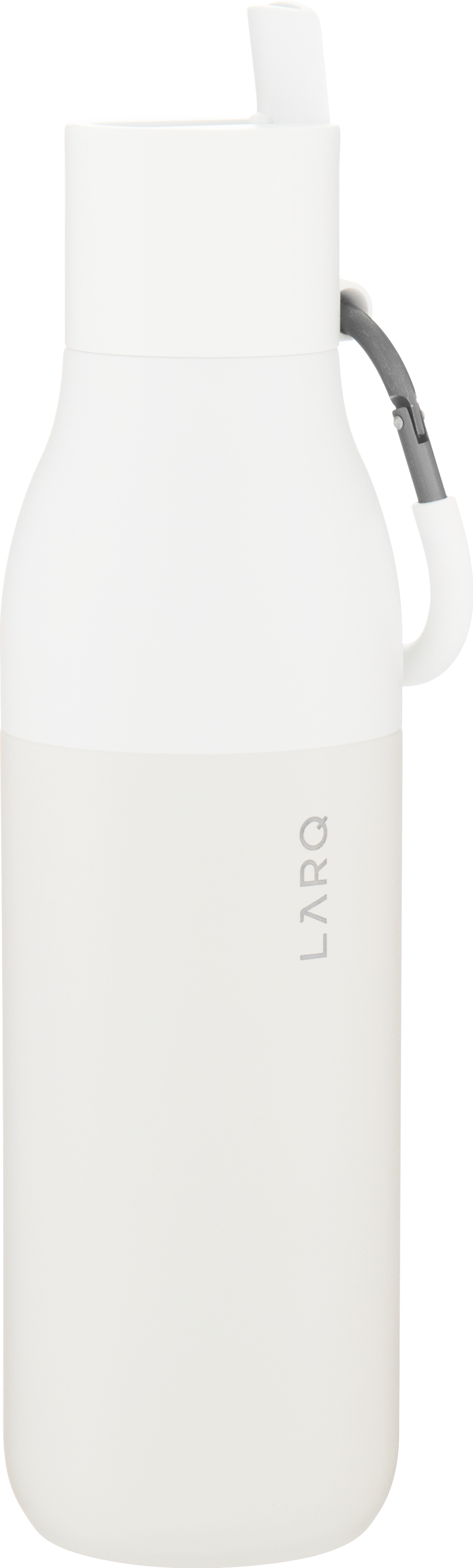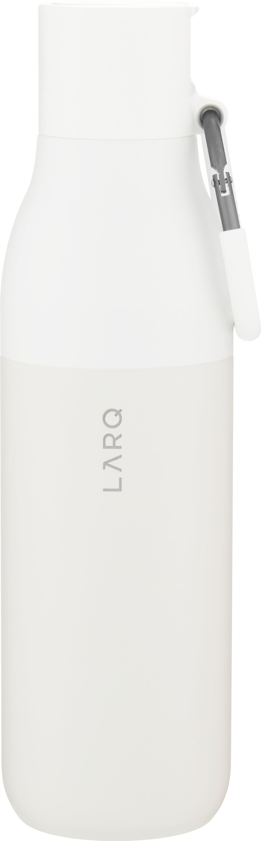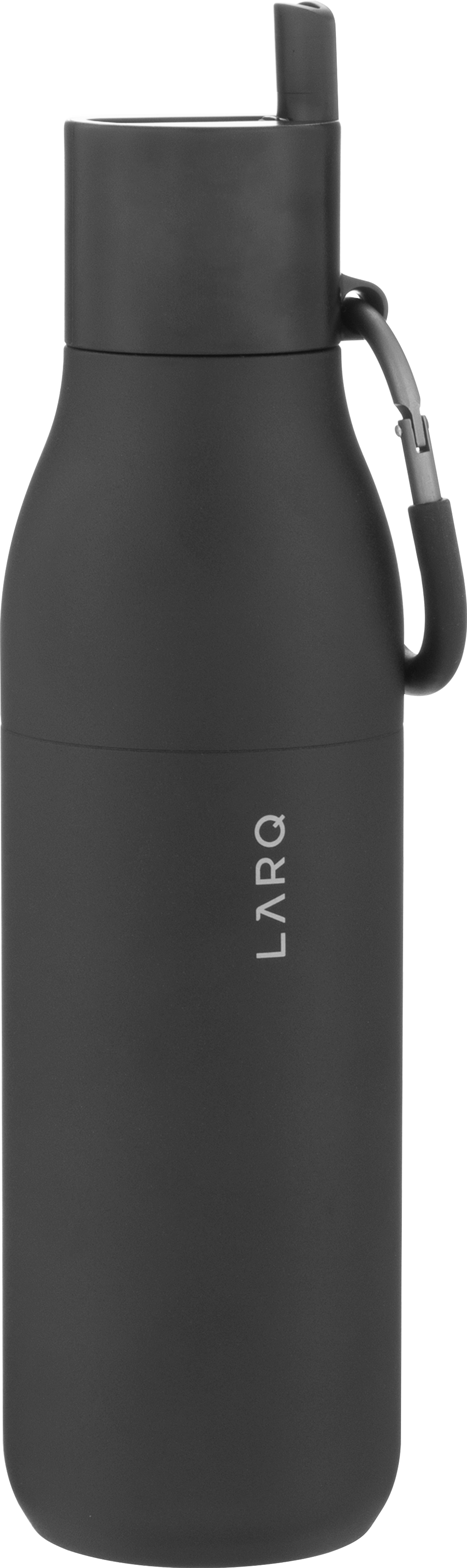 The LARQ Flip Top Bottle 25 oz combines sleek design, premium materials, and functional hydration. Made from double wall electropolished 18/8 stainless steel with vacuum insulation, it keeps cold beverages chilled for hours. The threaded lid features a flip-top spout and integrated straw for easy sipping, along with a silicone-coated carabiner for convenient, on-the-go carrying. Finished with a powder coated exterior for durability and style.