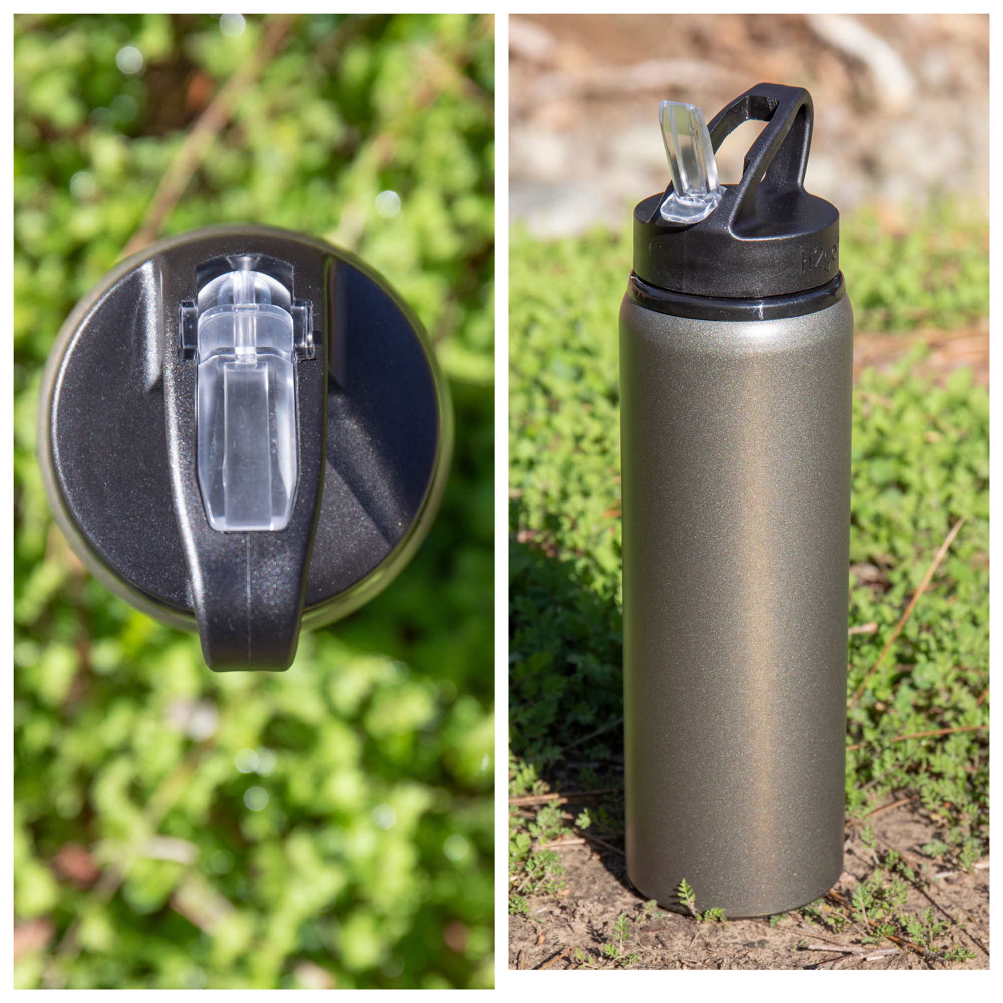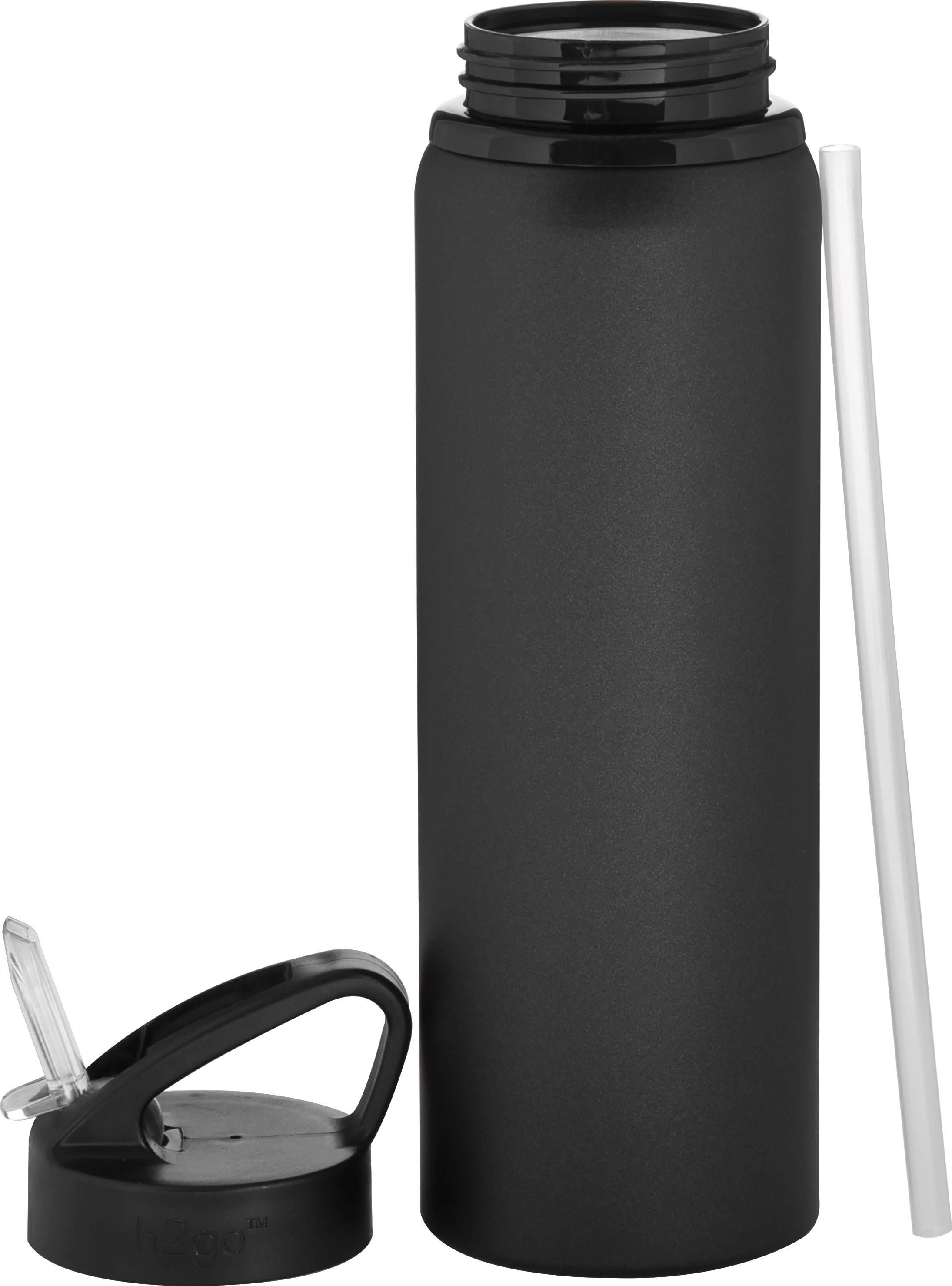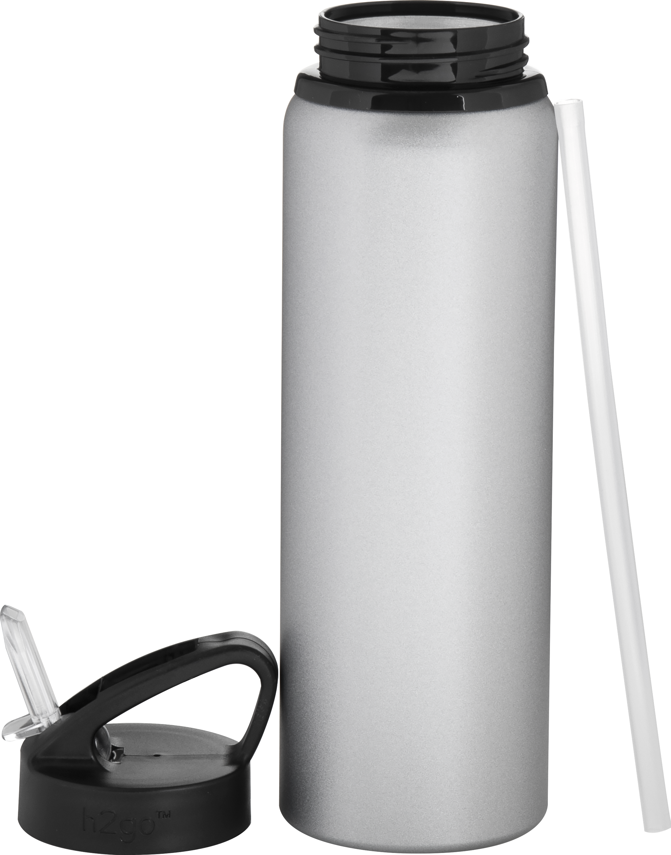 The h2go Allure 28 oz bottle offers lightweight hydration with a stylish finish. Made from single wall aluminum, it features a threaded lid with a flip-up spout and integrated straw for convenient sipping. The matte pearlized finish adds a subtle shimmer, making it perfect for workouts, travel, or everyday use with cold beverages.