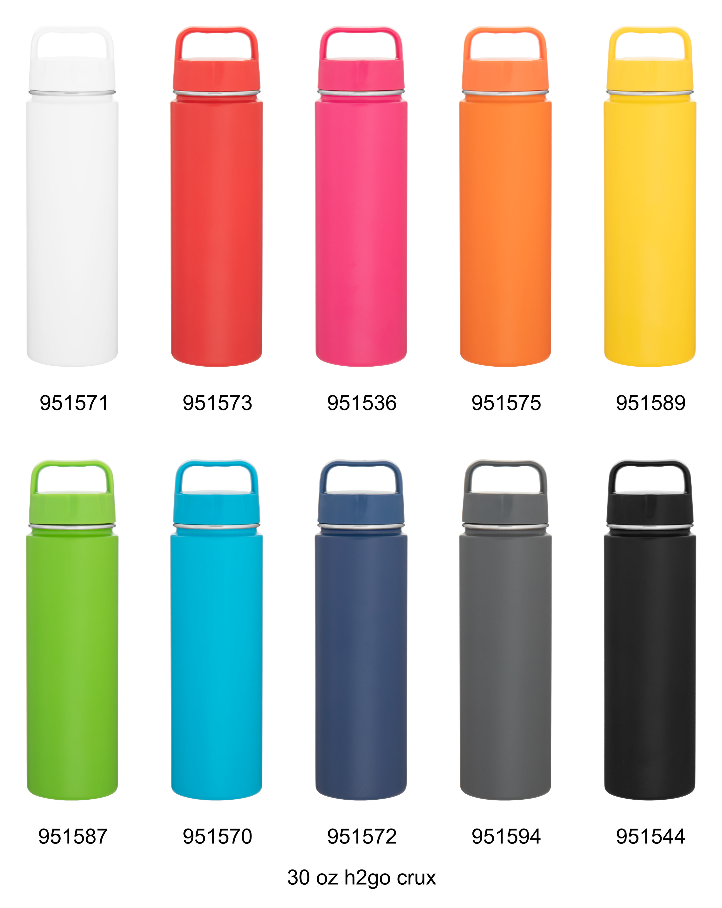 The h2go Crux 30 oz bottle is designed for simple, effective hydration. Made from single-wall 18/8 stainless steel, it's lightweight and durable—ideal for cold beverages on the go. The threaded lid with an integrated carrying handle offers convenience, while the powder coated finish adds a pop of color and extra grip. Whether you're commuting, at the gym, or out exploring, Crux keeps it easy to stay refreshed.