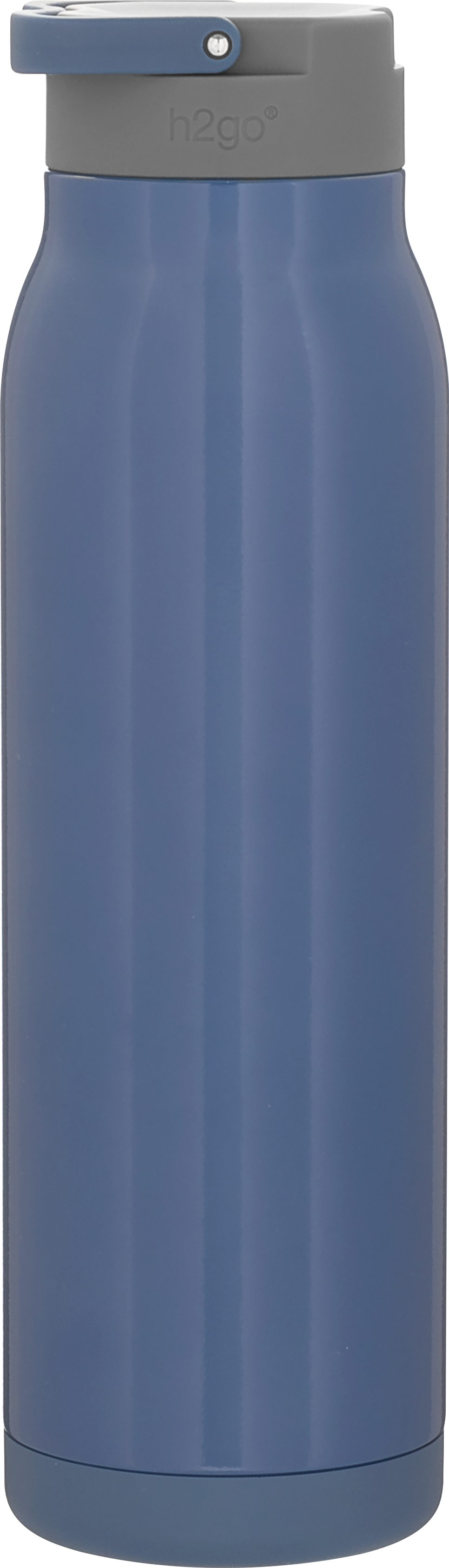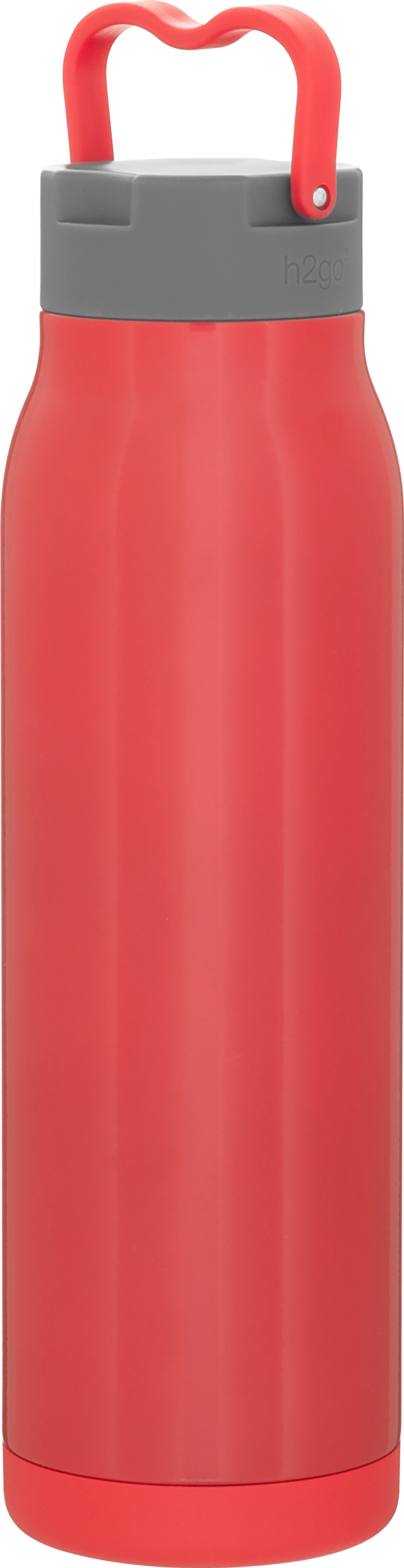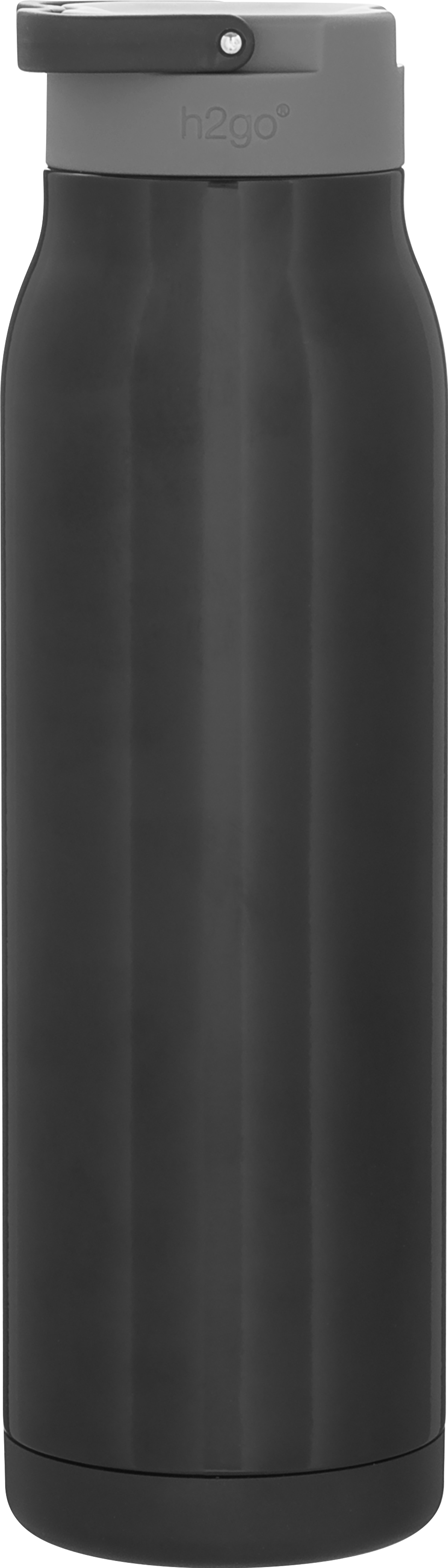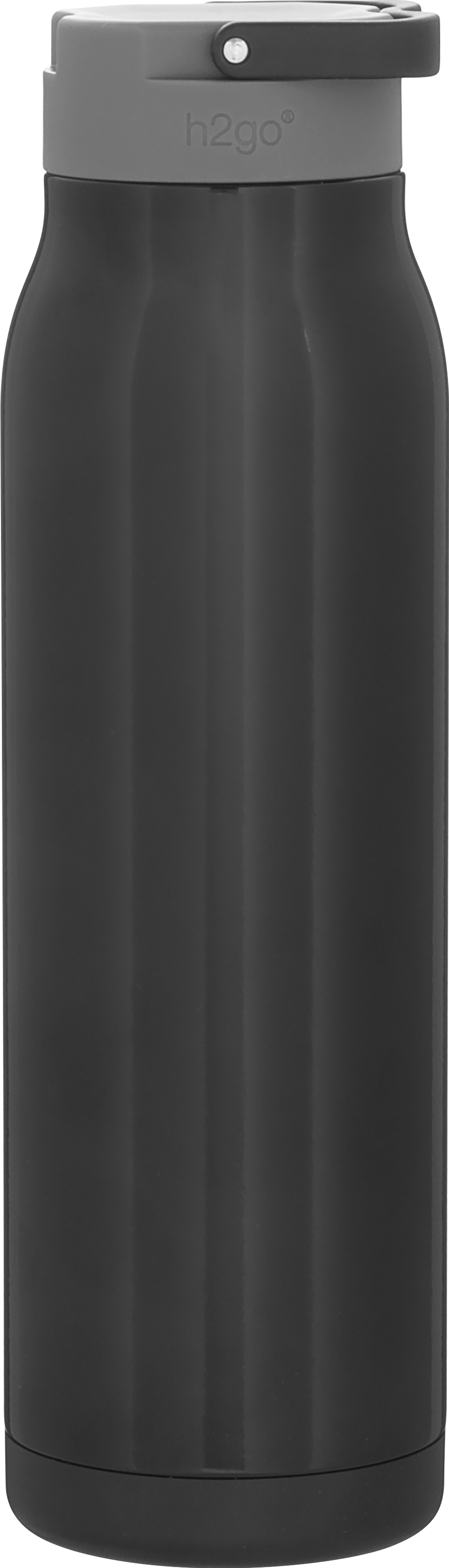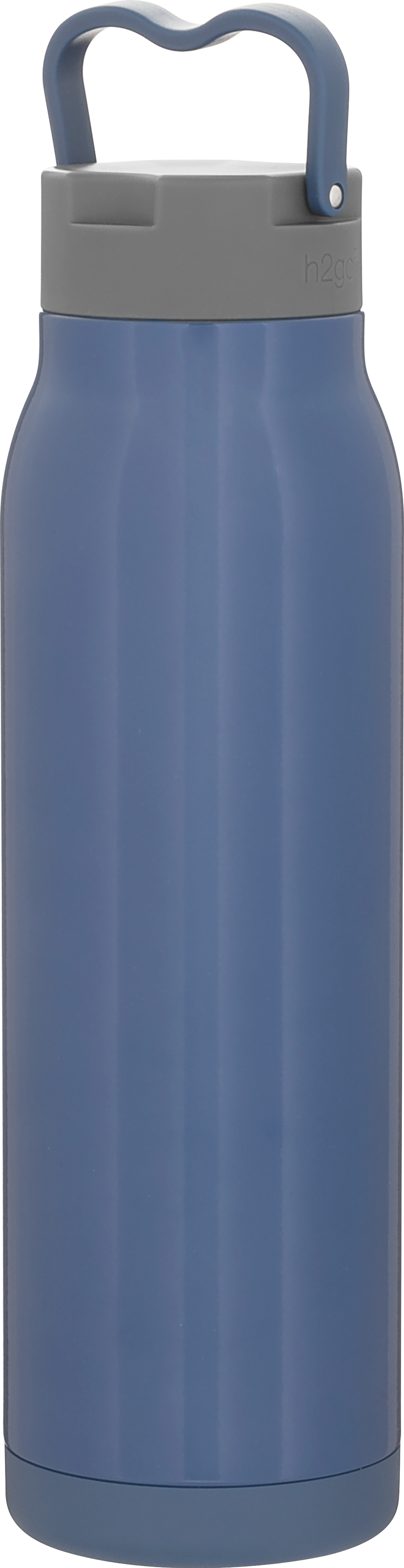 The h2go Flex 32 oz thermal bottle offers high-capacity hydration with a sleek, dual-texture finish. Made from durable double wall 18/8 stainless steel with copper vacuum insulation, it keeps beverages hot or cold for hours. It features a threaded insulated lid with a matching carrying handle for easy transport. A glossy powder coated body and matte powder coated base provide style, grip, and stability for life on the go.