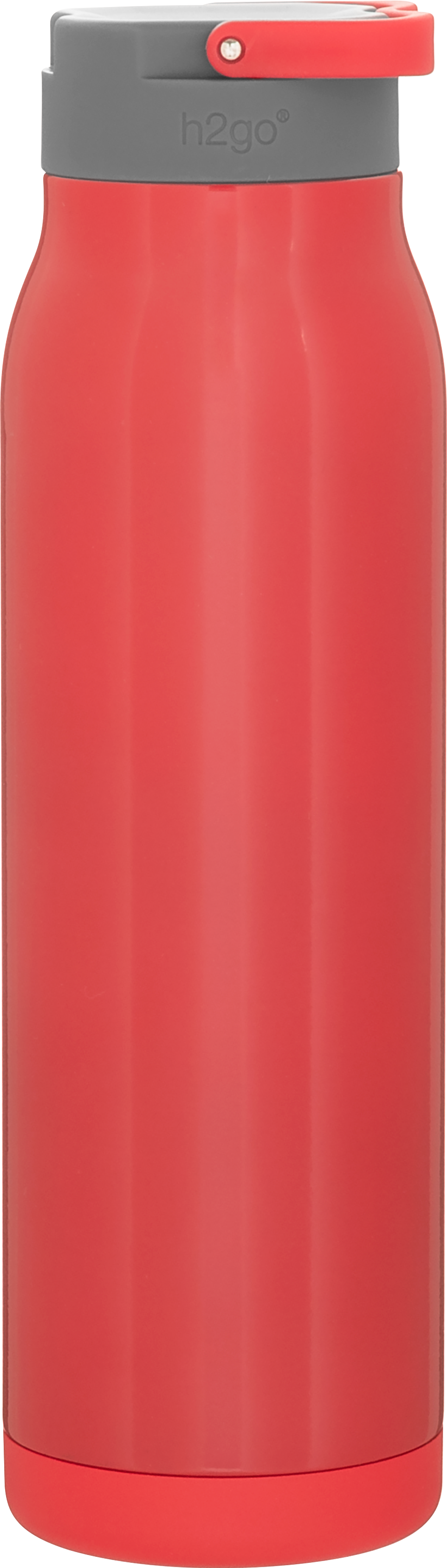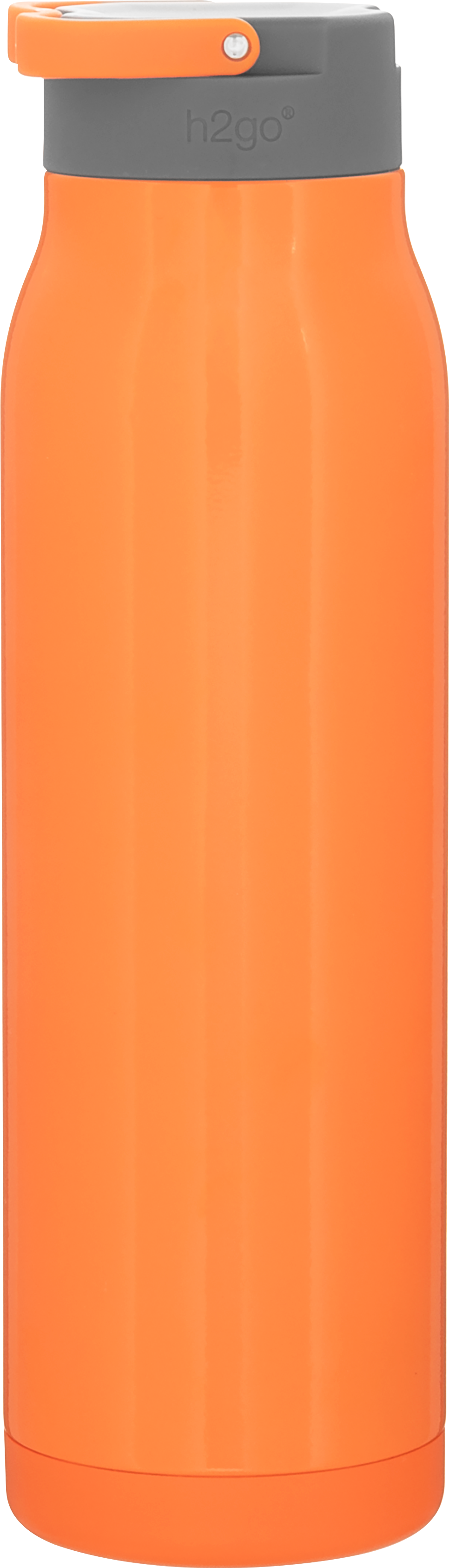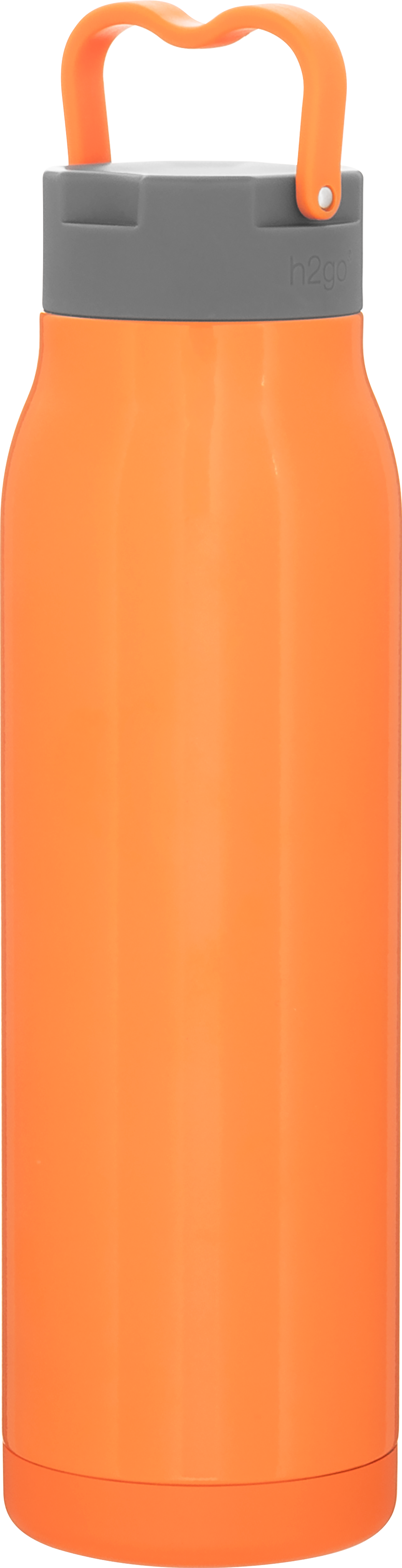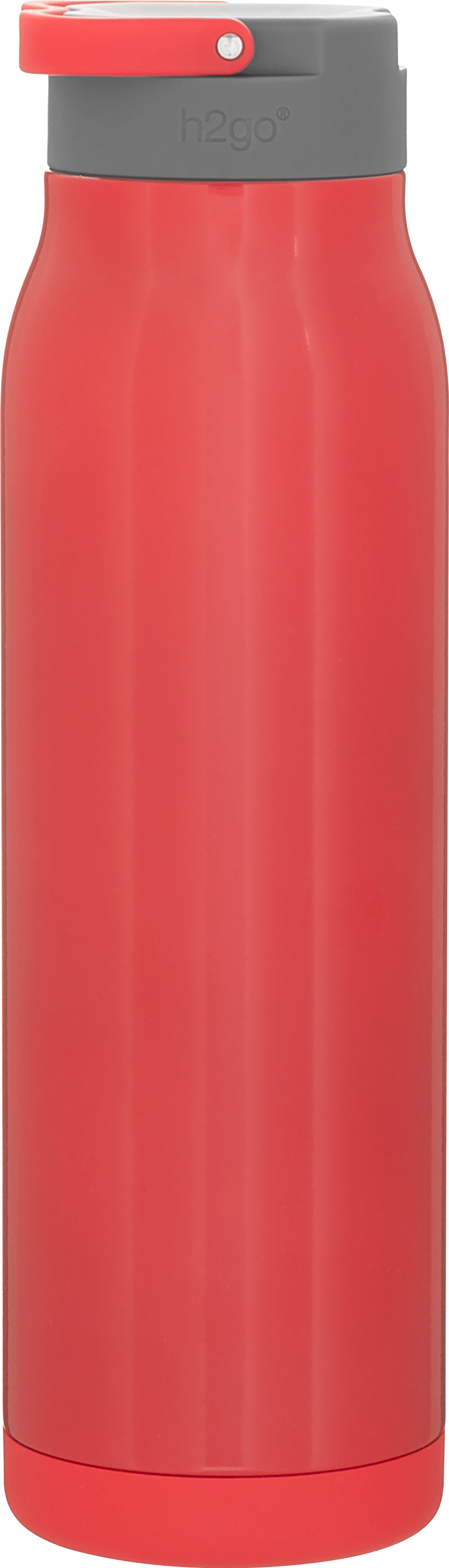 The h2go Flex 32 oz thermal bottle offers high-capacity hydration with a sleek, dual-texture finish. Made from durable double wall 18/8 stainless steel with copper vacuum insulation, it keeps beverages hot or cold for hours. It features a threaded insulated lid with a matching carrying handle for easy transport. A glossy powder coated body and matte powder coated base provide style, grip, and stability for life on the go.
