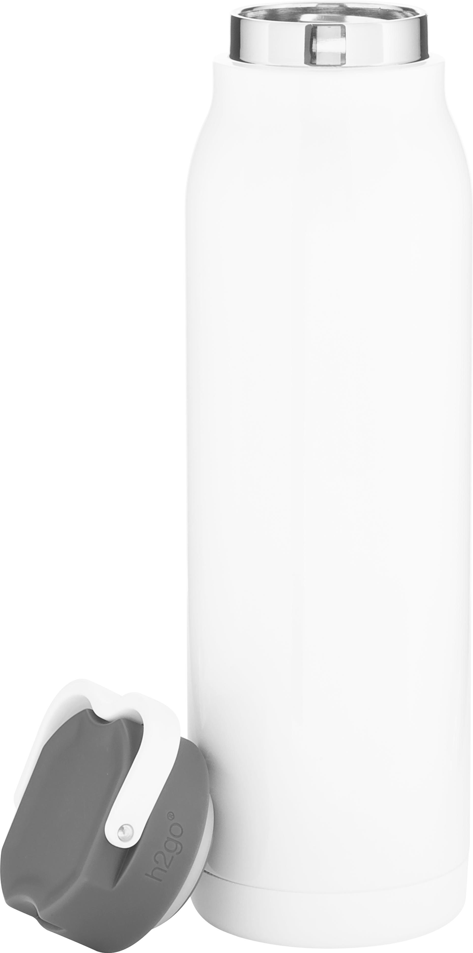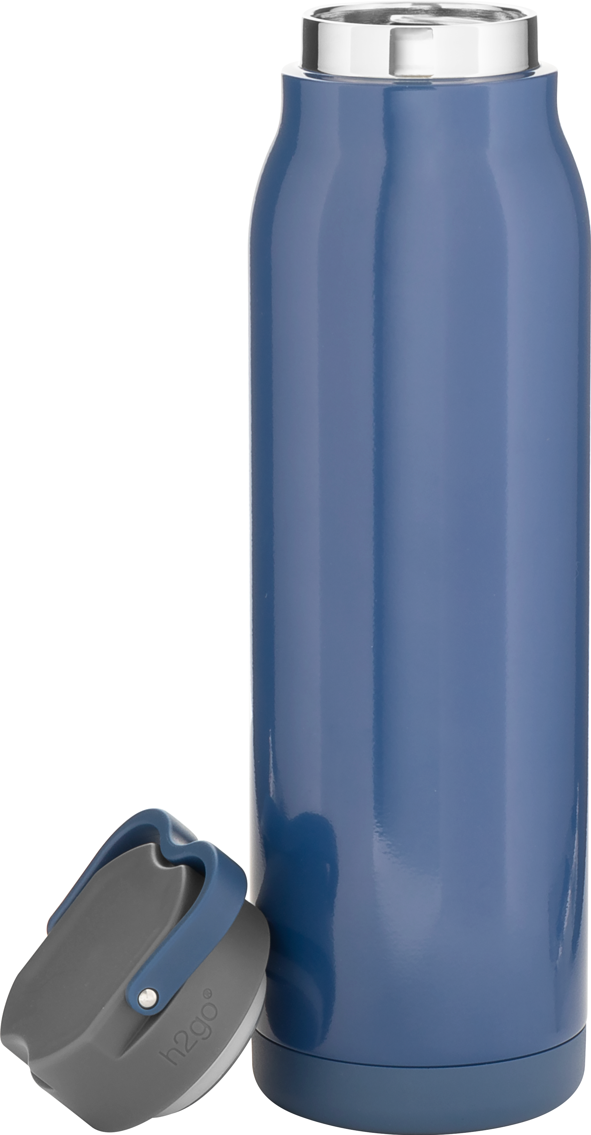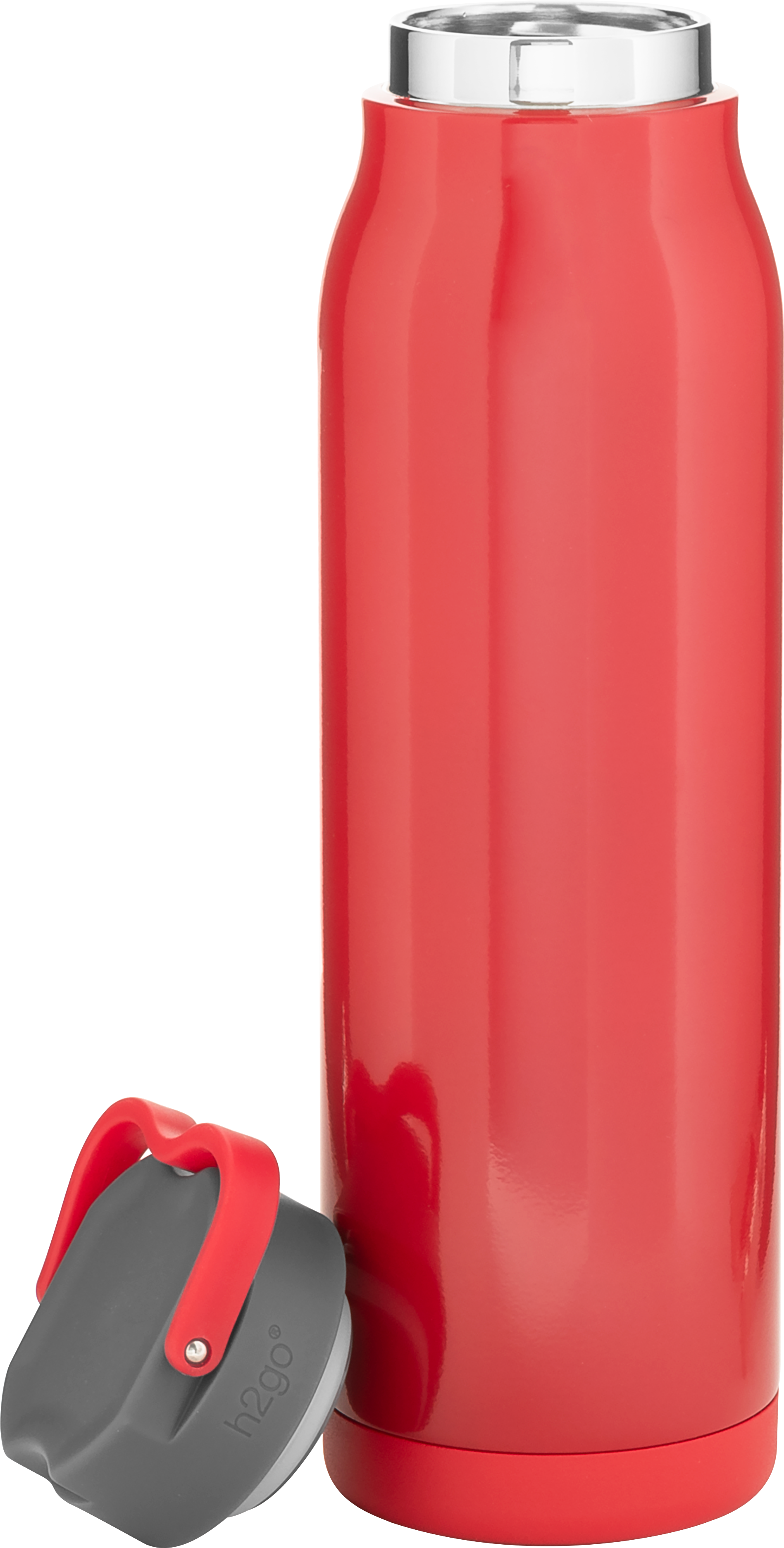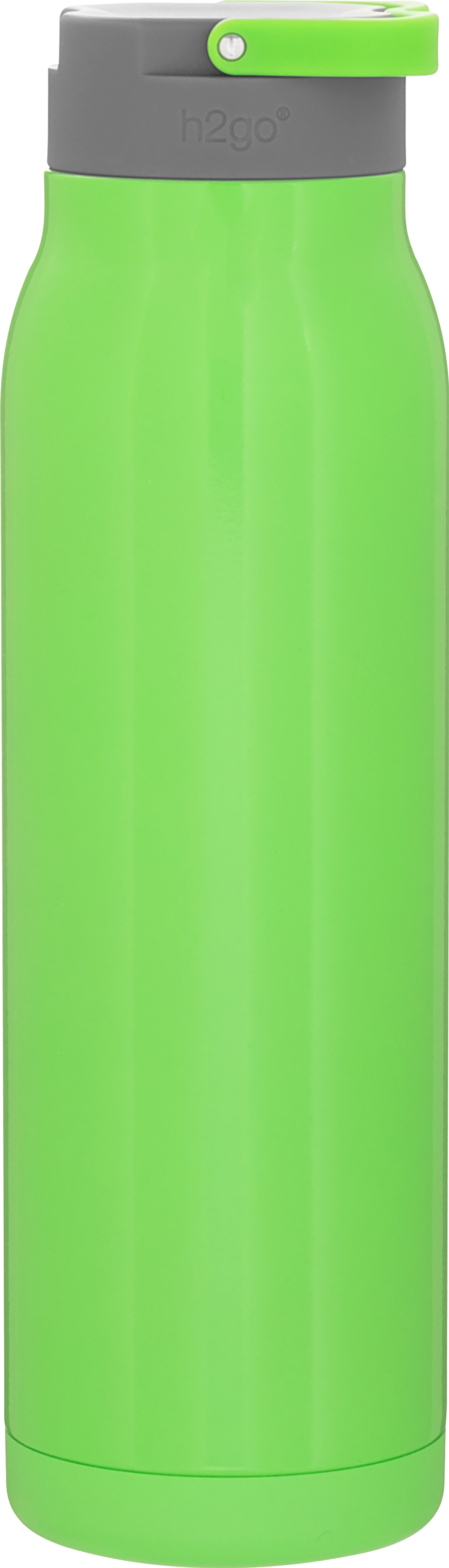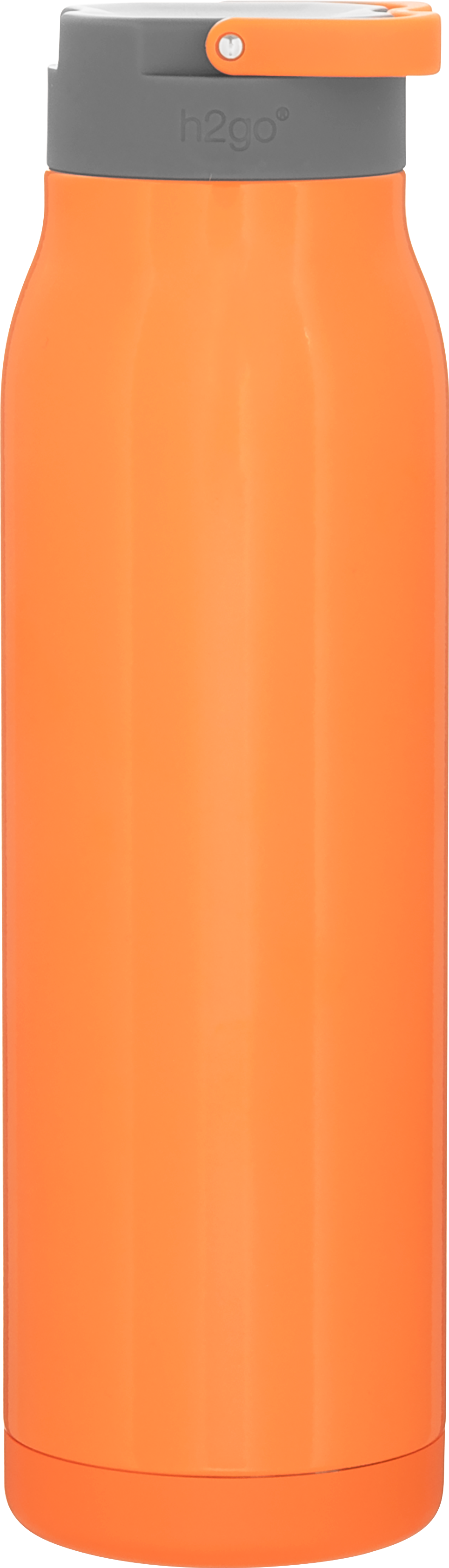 The h2go Flex 32 oz thermal bottle offers high-capacity hydration with a sleek, dual-texture finish. Made from durable double wall 18/8 stainless steel with copper vacuum insulation, it keeps beverages hot or cold for hours. It features a threaded insulated lid with a matching carrying handle for easy transport. A glossy powder coated body and matte powder coated base provide style, grip, and stability for life on the go.