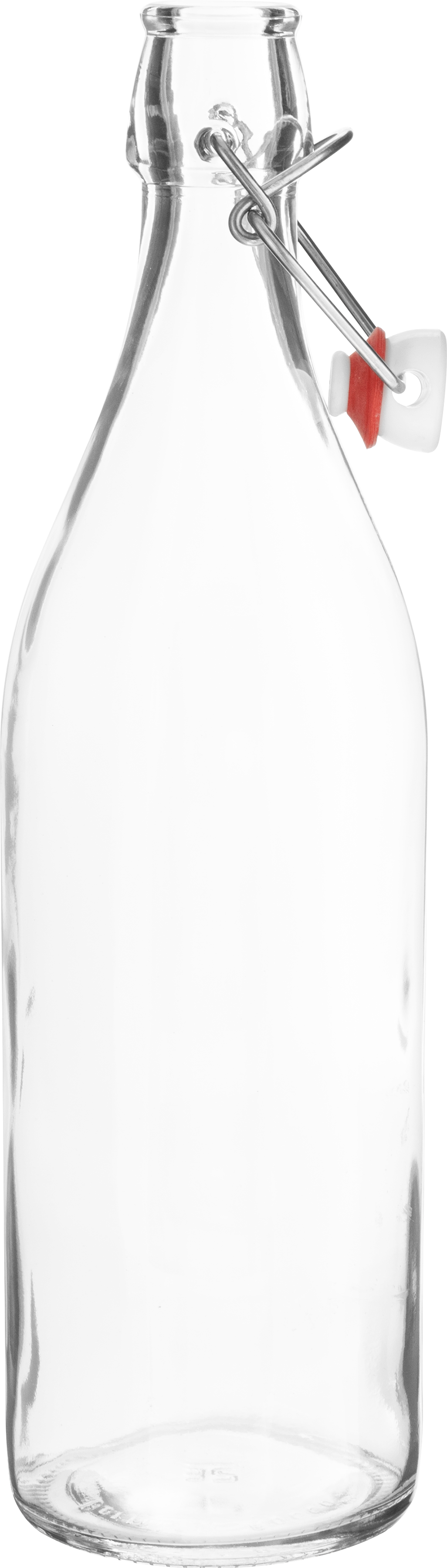 The Giara 33.75 oz bottle offers a timeless way to store and serve beverages. Its classic design features an airtight clamp closure with a rubber gasket to help keep contents fresh. Ideal for water, juice, and infusions. The gasket and metal ring should be hand washed without cleanser and thoroughly dried. Do not fill to the brim—leave about 5 cm from the top for proper use. The gasket is not suitable for contact with fatty substances.