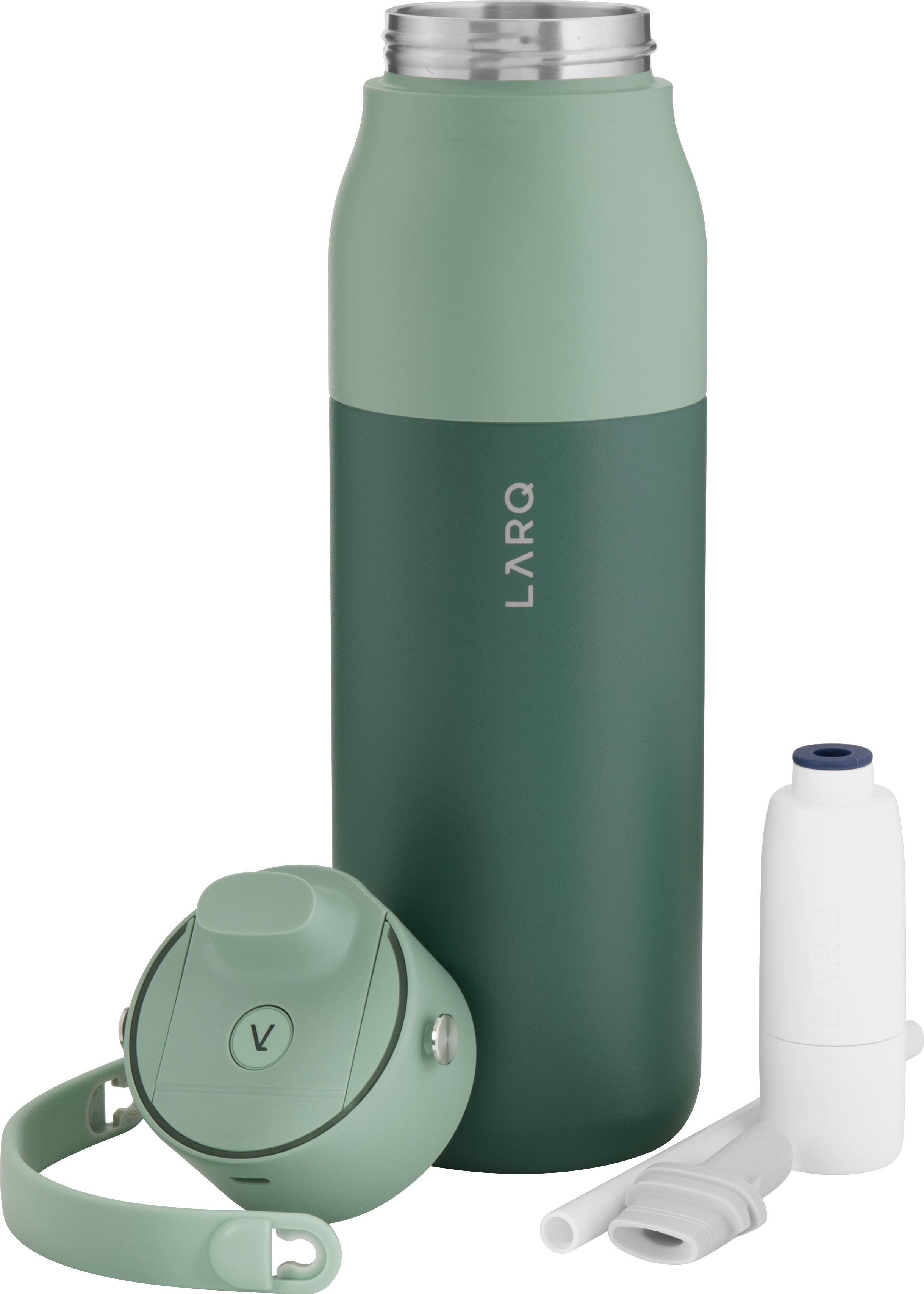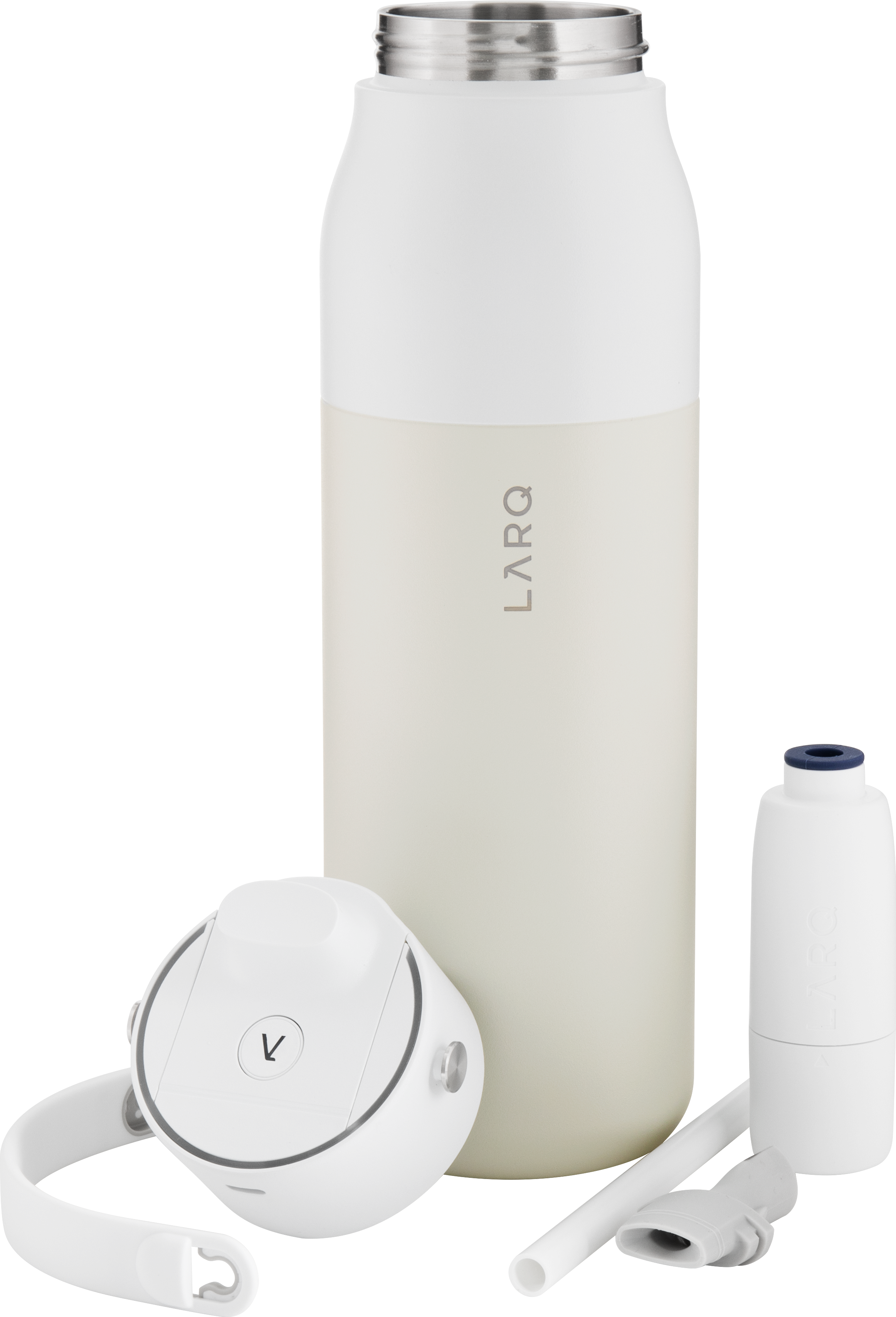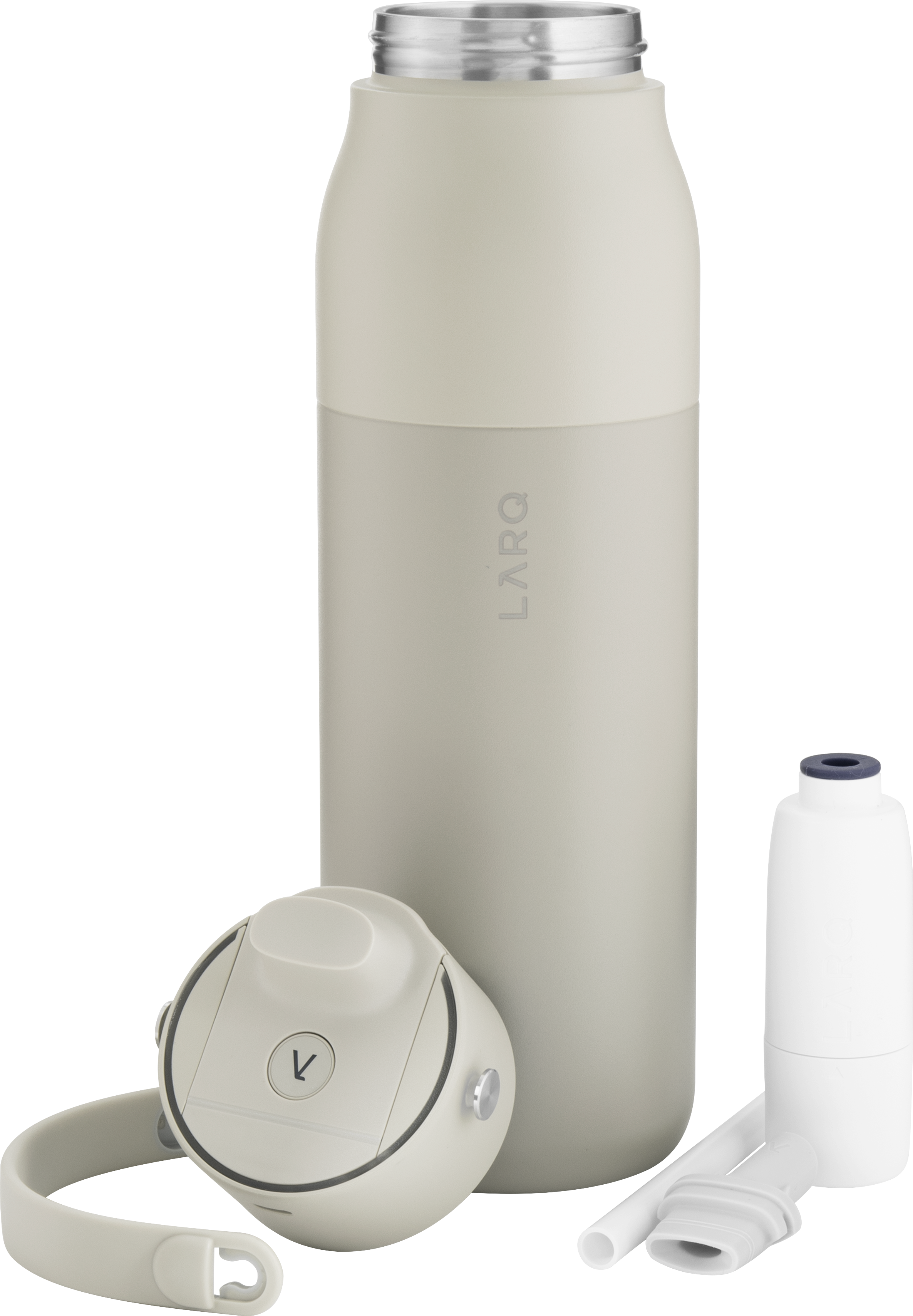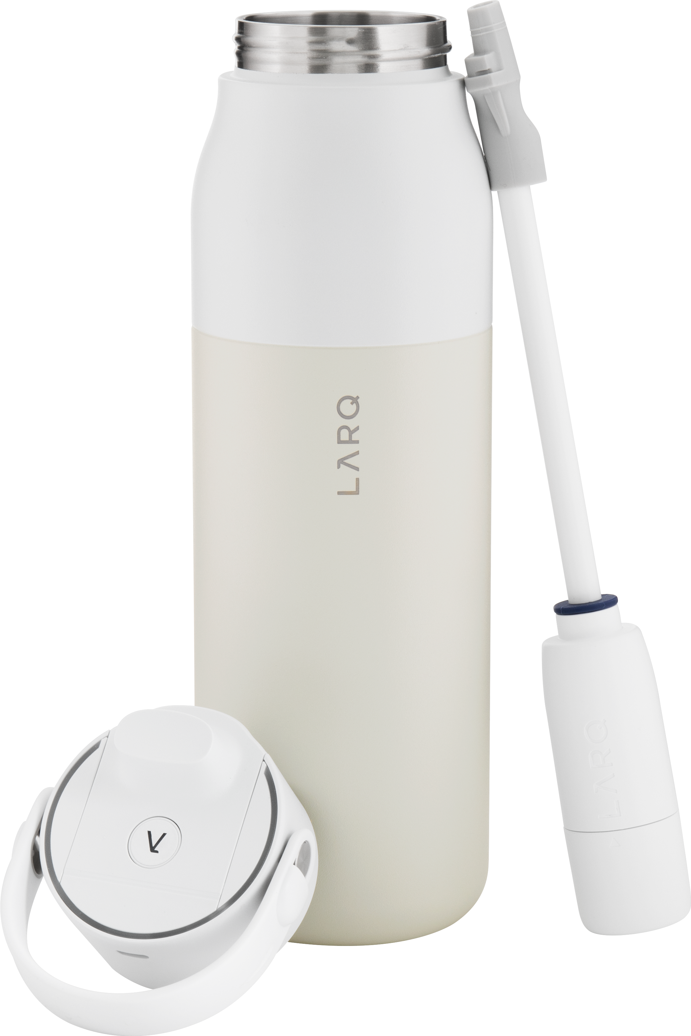 The LARQ PureVis 2 34 oz bottle combines advanced purification technology with everyday functionality. Made from premium electropolished 18/8 stainless steel with double wall construction and vacuum insulation, it keeps beverages cold for hours. It features a threaded lid with a swig top cap, an inner straw with a silicone holder, and a soft removable carrying handle for easy portability. With 280nm PureVis™ UV-C LED technology and a Nano Zero filtration system, it neutralizes bacteria and improves taste at the push of a button. Finished with a durable powder coated exterior, it's innovation you can carry anywhere.