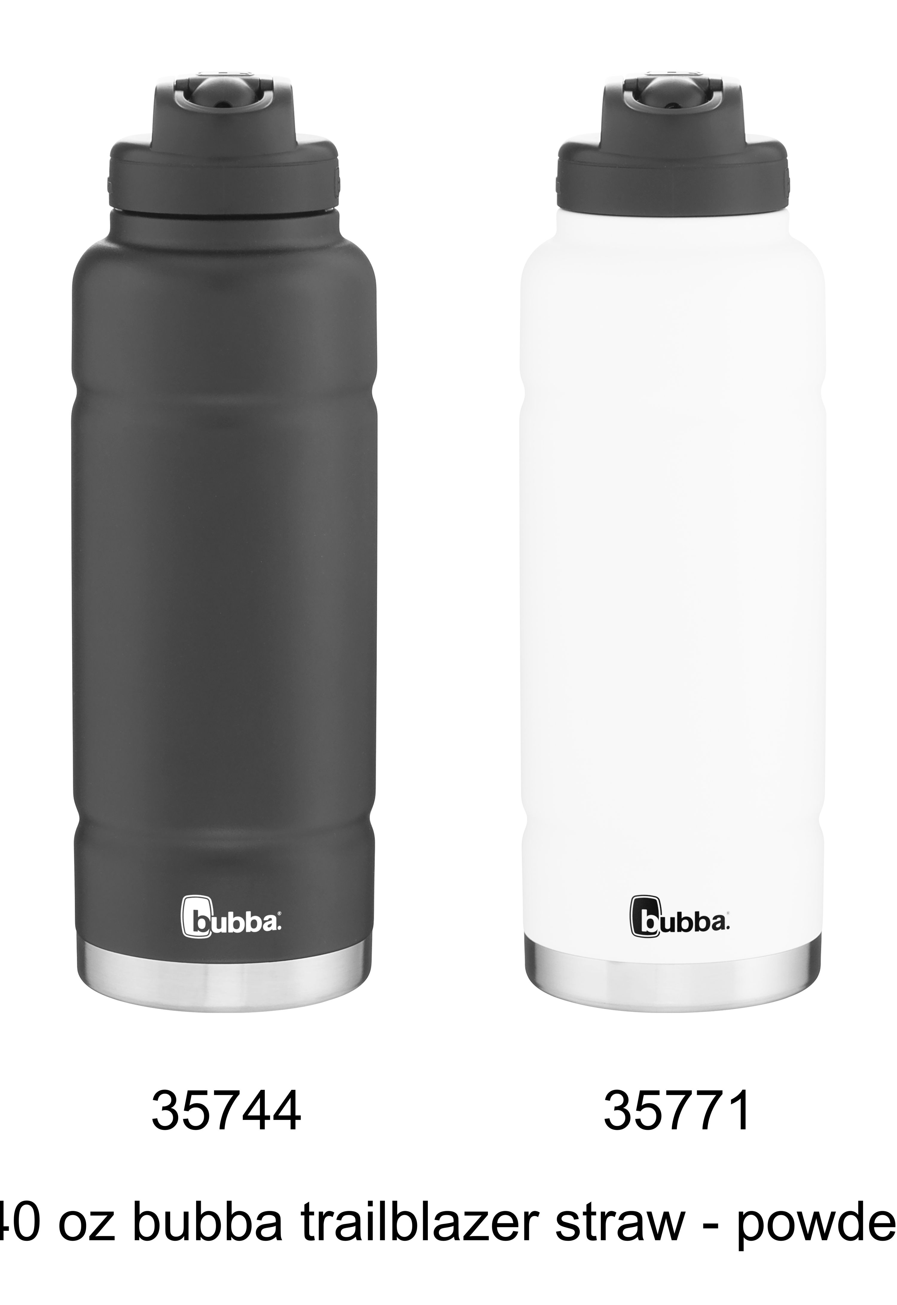The Bubba Trailblazer Straw 40 oz thermal bottle is built for all-day hydration with easy, on-the-go sipping. Made from double wall stainless steel with vacuum insulation, it keeps drinks hot or cold for hours. It features a threaded lid with a flip-up spout and built-in straw for smooth sipping, plus a sturdy carrying handle for travel-ready convenience. A stainless steel base adds durability, and the powder coated finish provides a comfortable grip and modern look.