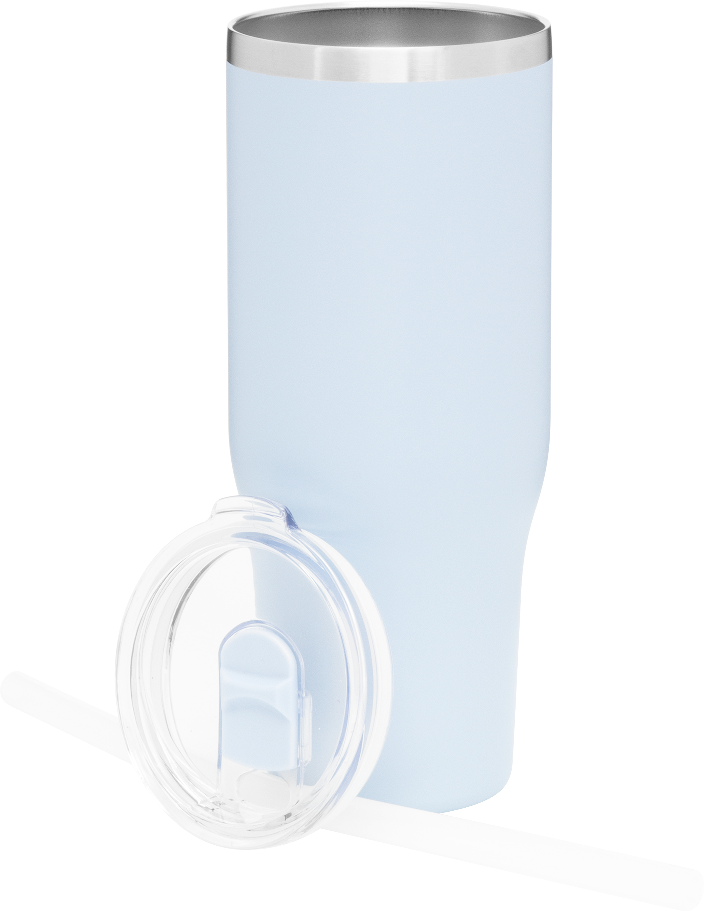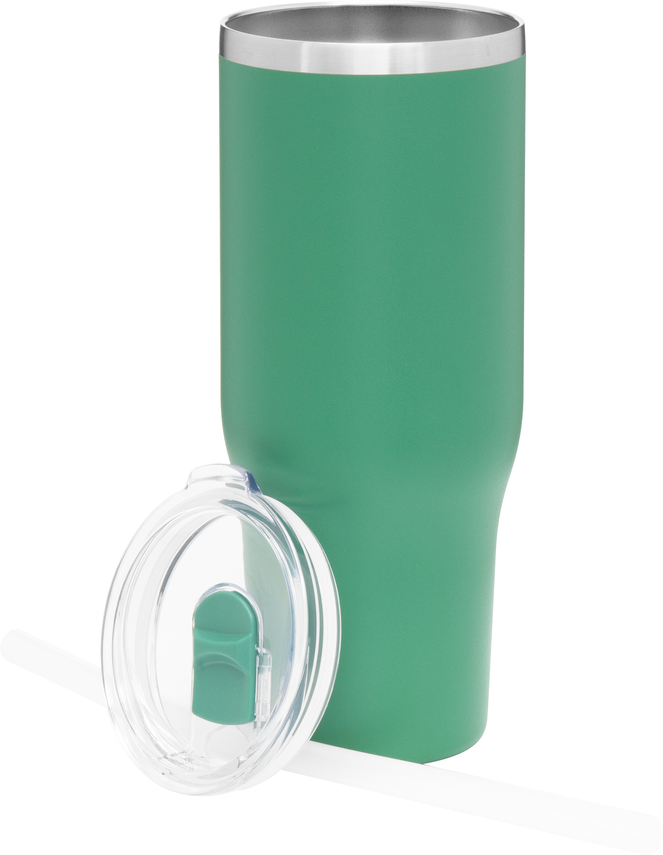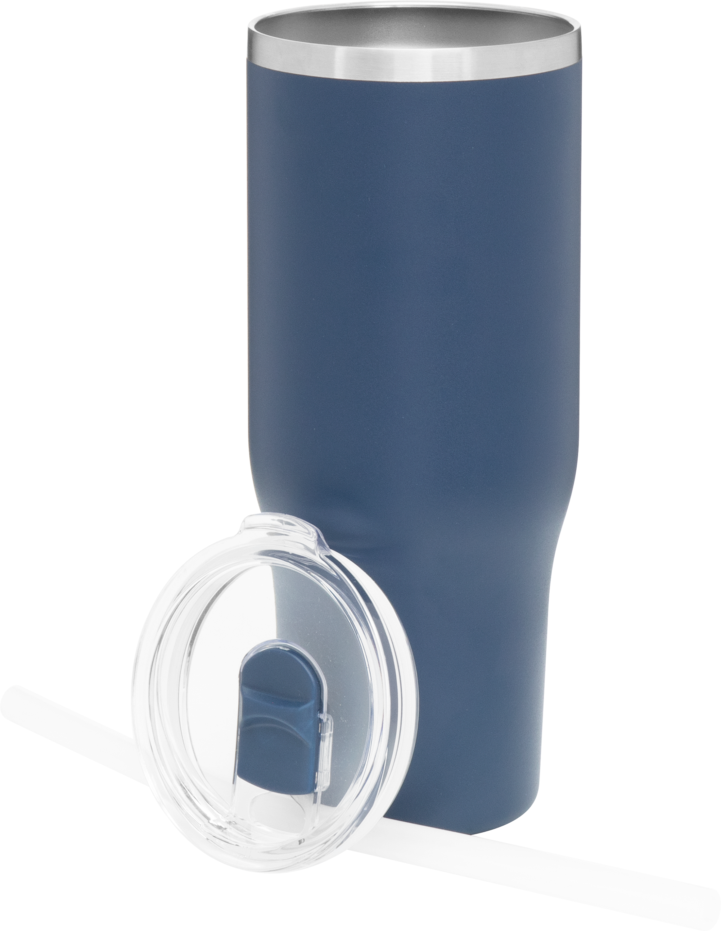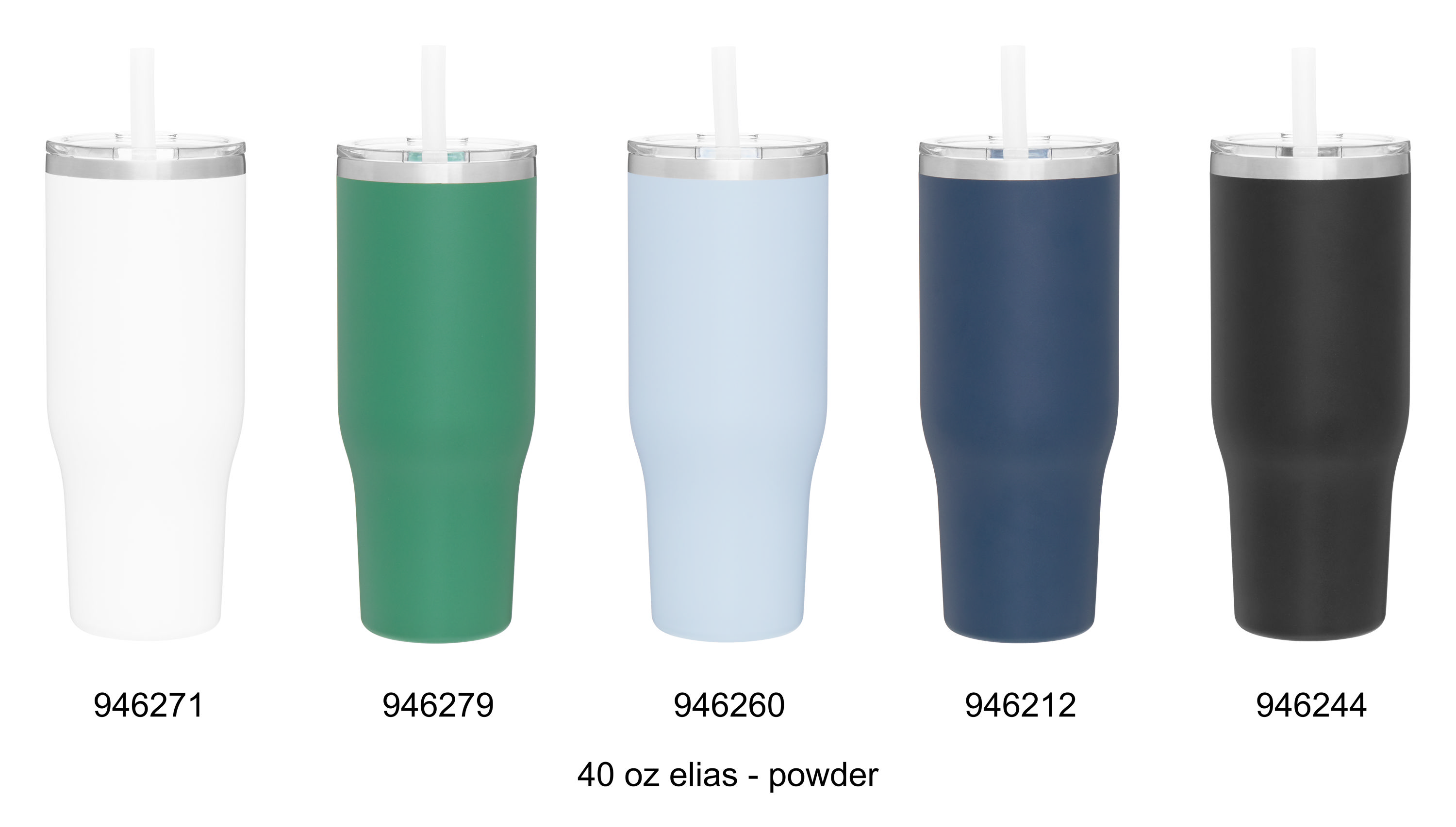 The Elias 40 oz thermal tumbler is made for all-day hydration with style and performance. Constructed from durable 18/8 stainless steel with double wall design and copper vacuum insulation, it keeps drinks hot or cold for hours. It features a clear dual-purpose push-on lid with a matching sliding closure and a flexible wide silicone straw for versatile sipping. Finished with a powder coated exterior for durability and grip, Elias is ideal for work, workouts, or on-the-go refreshment.