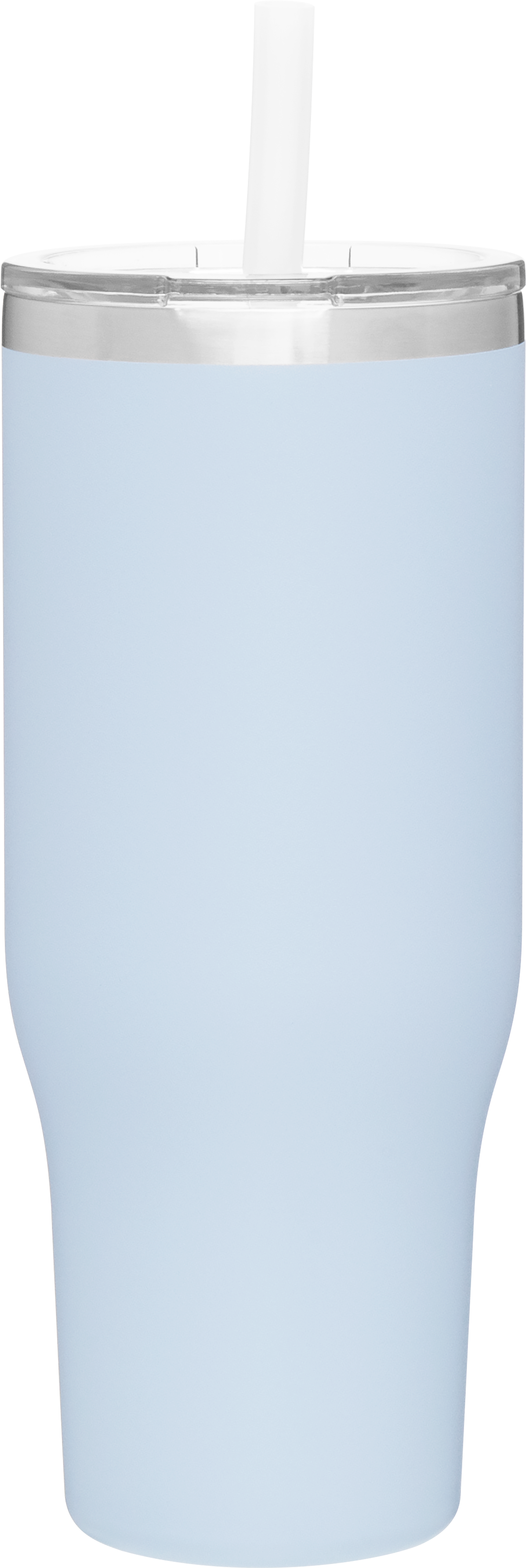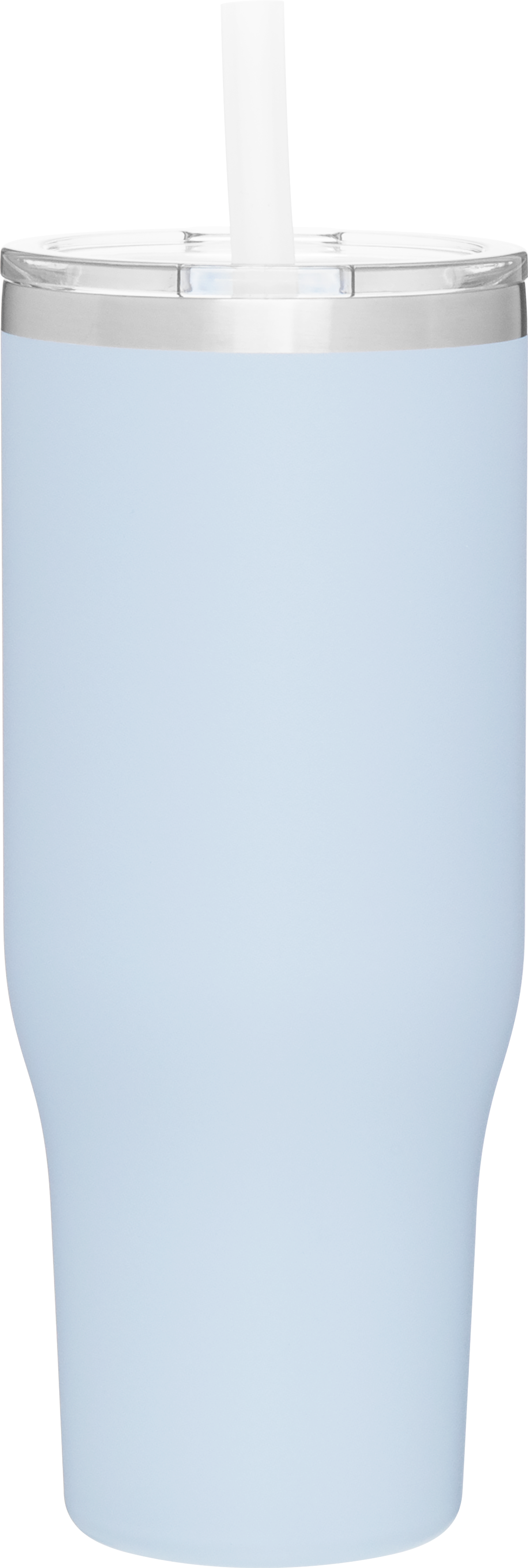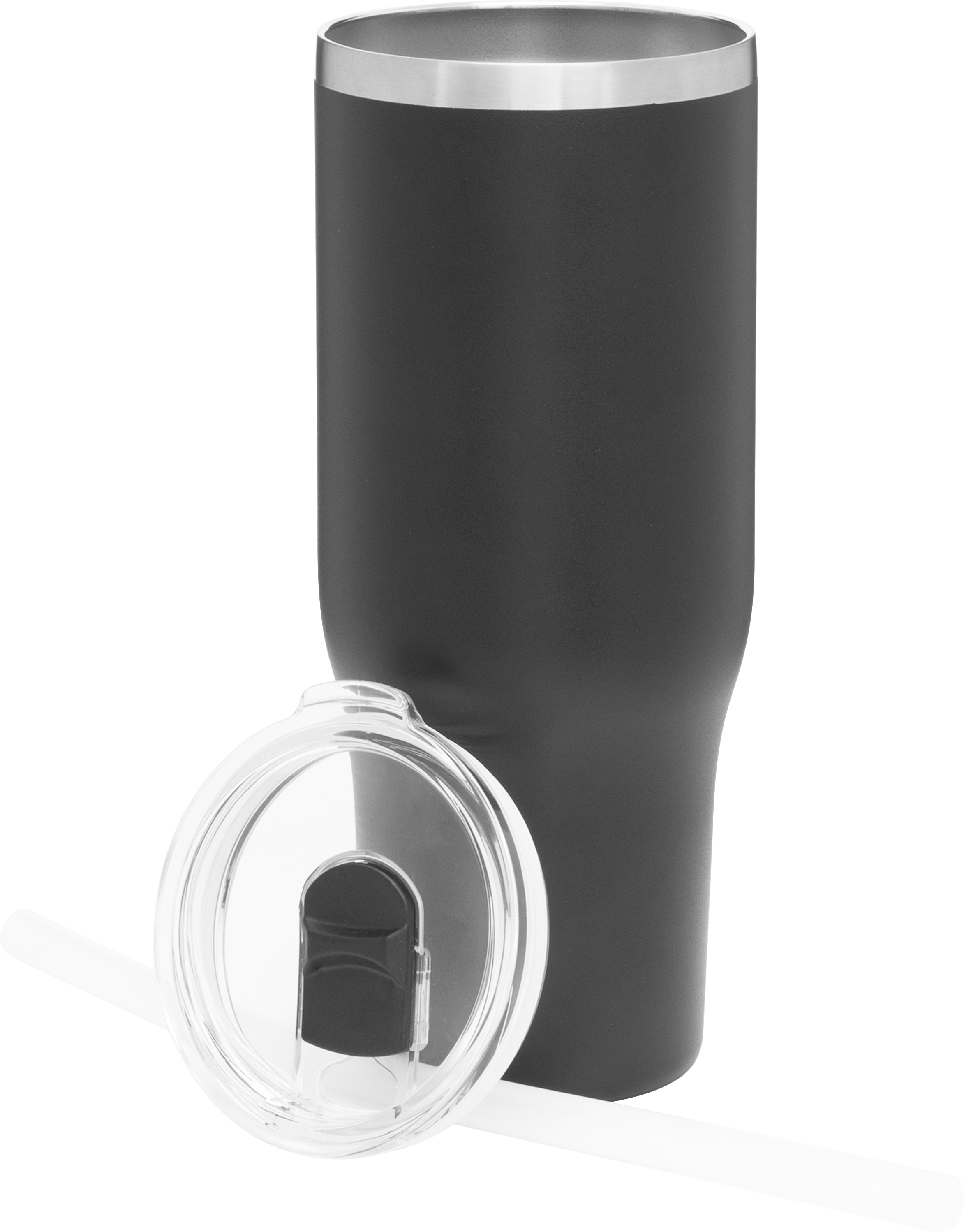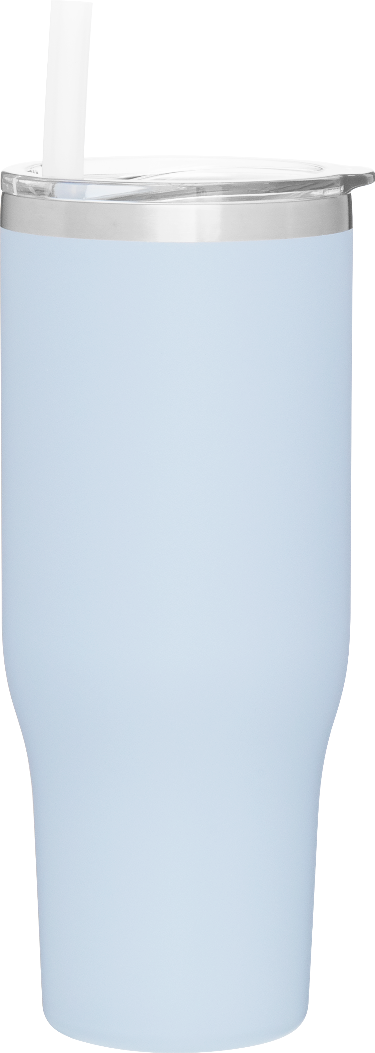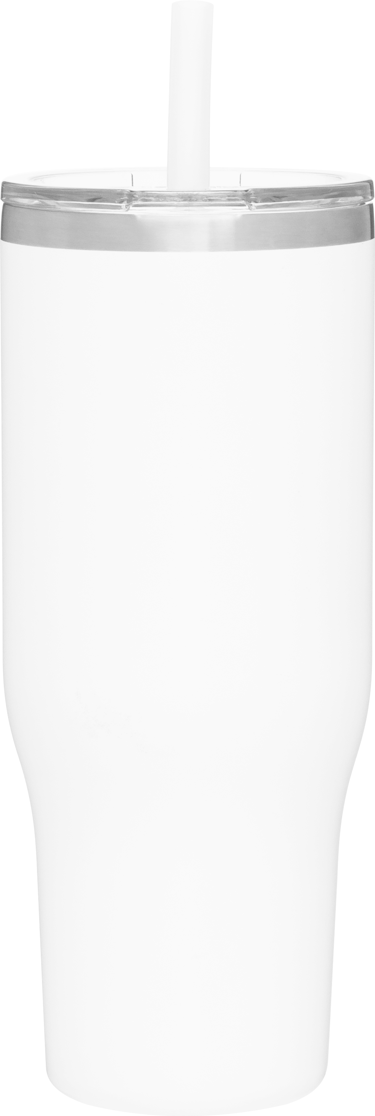 The Elias 40 oz thermal tumbler is made for all-day hydration with style and performance. Constructed from durable 18/8 stainless steel with double wall design and copper vacuum insulation, it keeps drinks hot or cold for hours. It features a clear dual-purpose push-on lid with a matching sliding closure and a flexible wide silicone straw for versatile sipping. Finished with a powder coated exterior for durability and grip, Elias is ideal for work, workouts, or on-the-go refreshment.