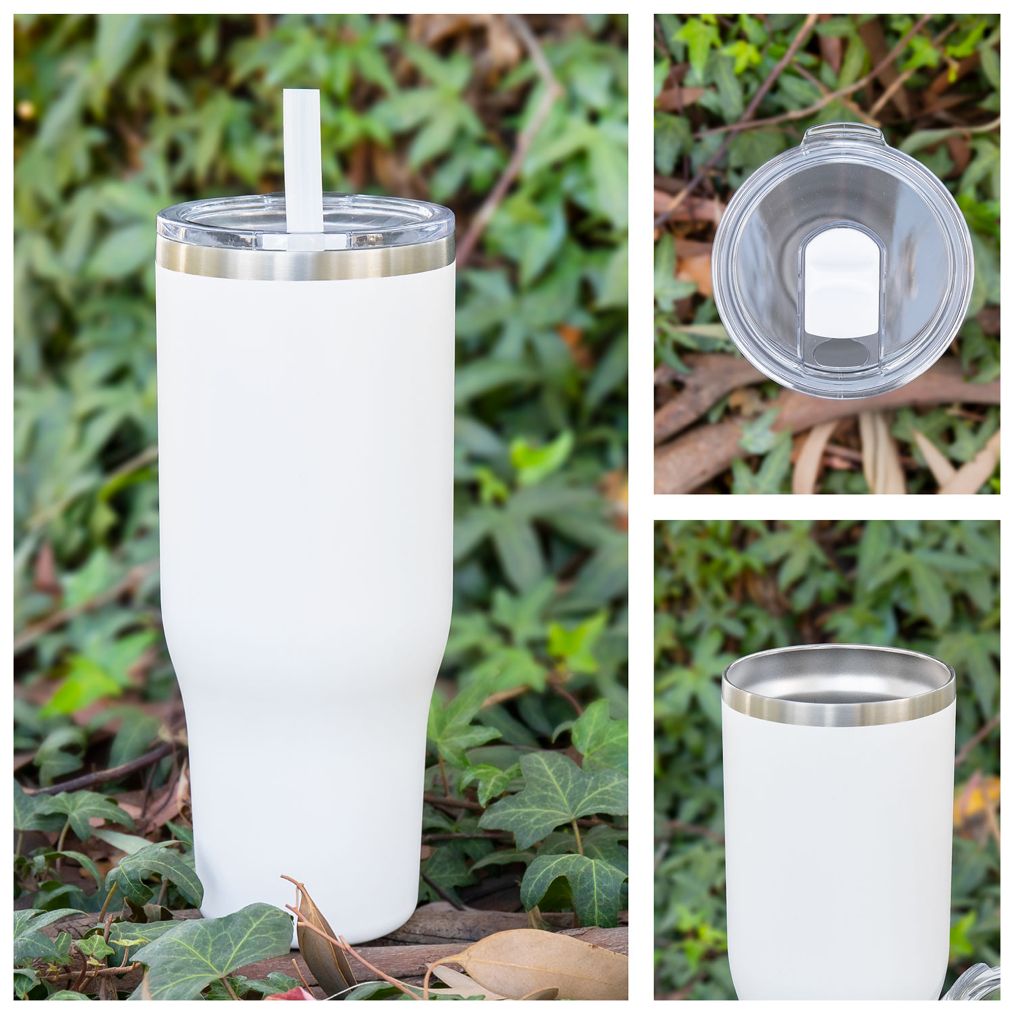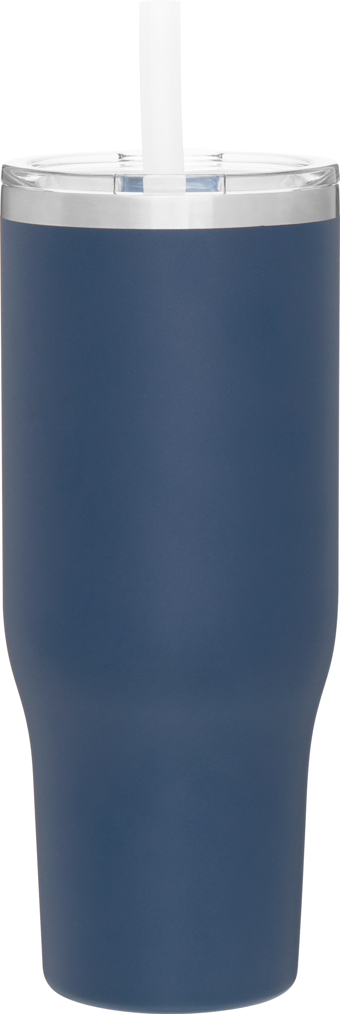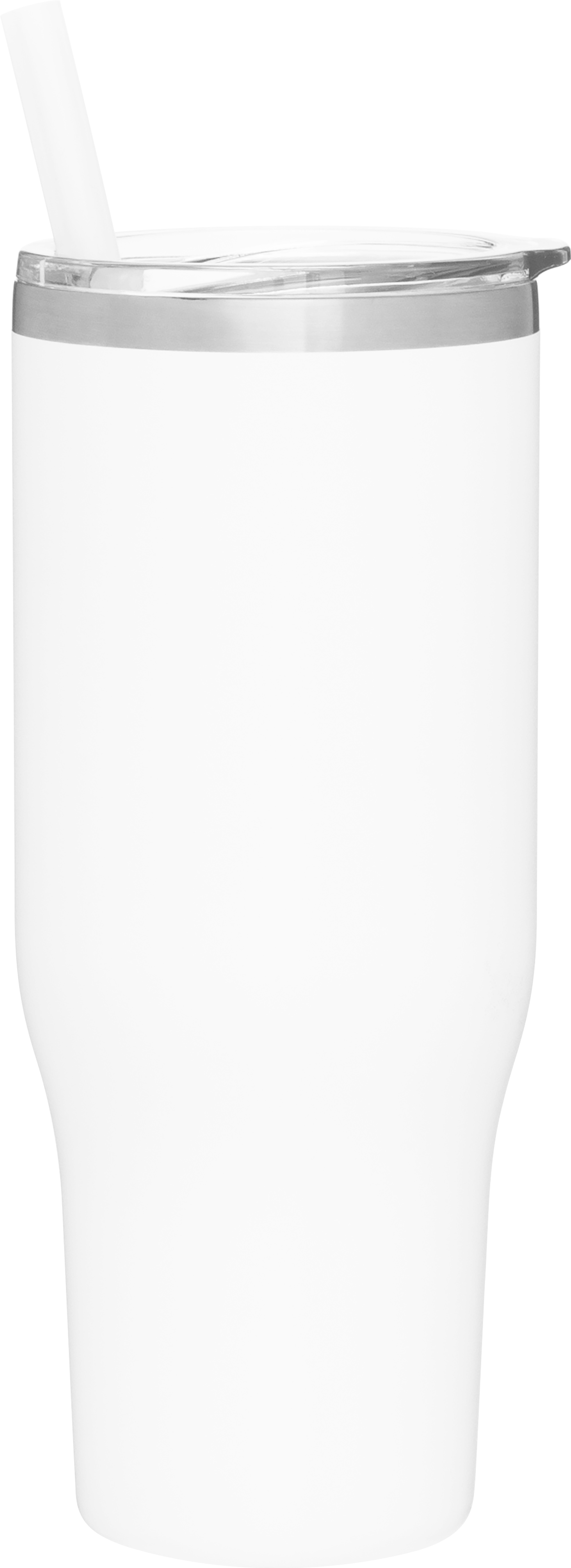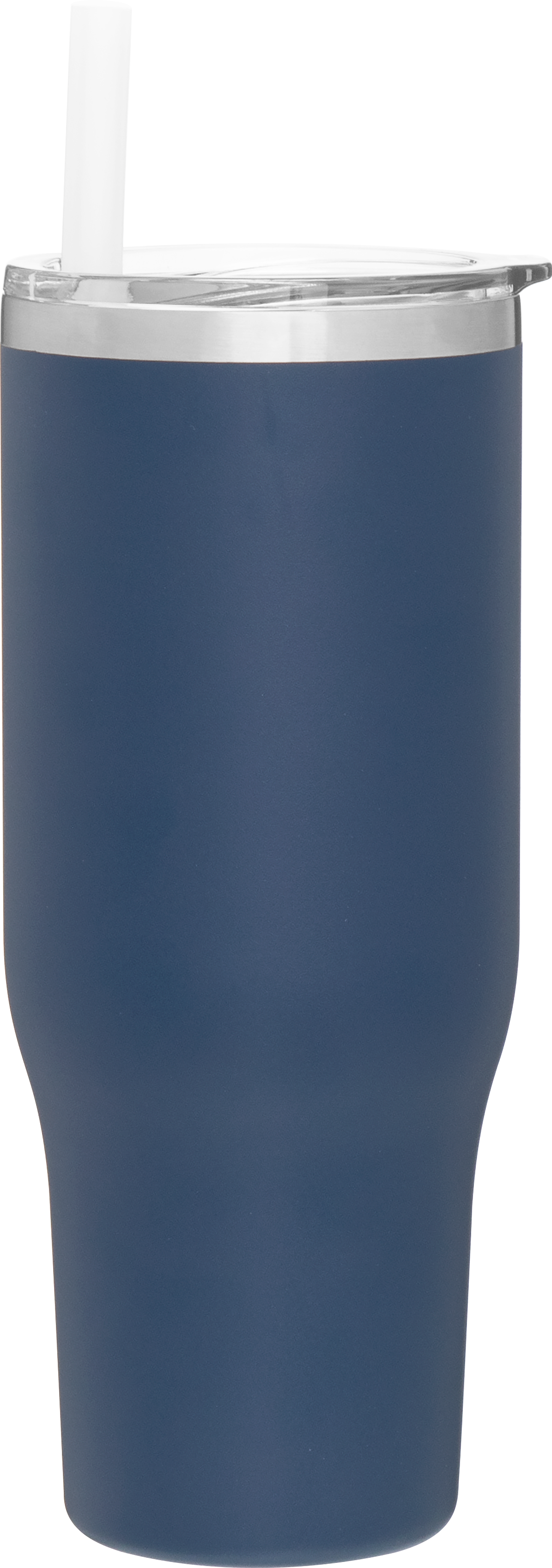 The Elias 40 oz thermal tumbler is made for all-day hydration with style and performance. Constructed from durable 18/8 stainless steel with double wall design and copper vacuum insulation, it keeps drinks hot or cold for hours. It features a clear dual-purpose push-on lid with a matching sliding closure and a flexible wide silicone straw for versatile sipping. Finished with a powder coated exterior for durability and grip, Elias is ideal for work, workouts, or on-the-go refreshment.