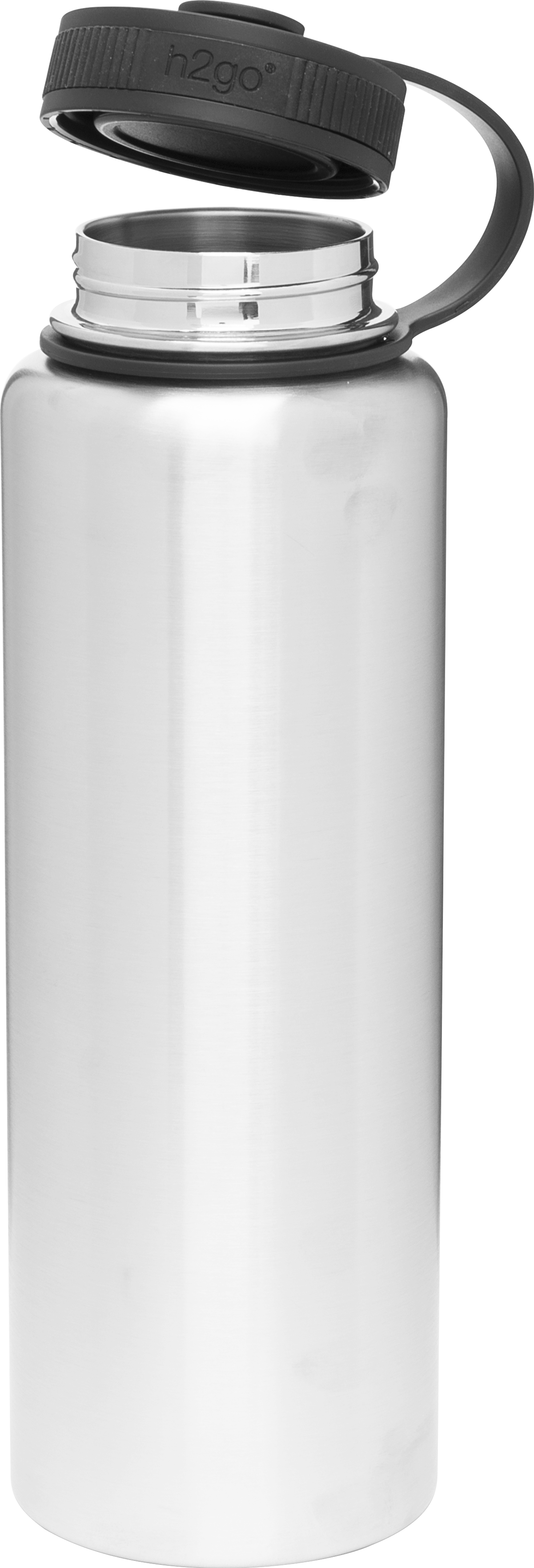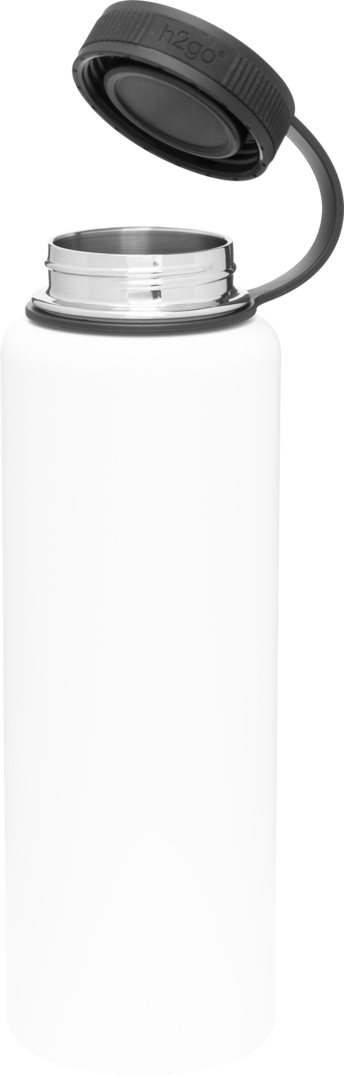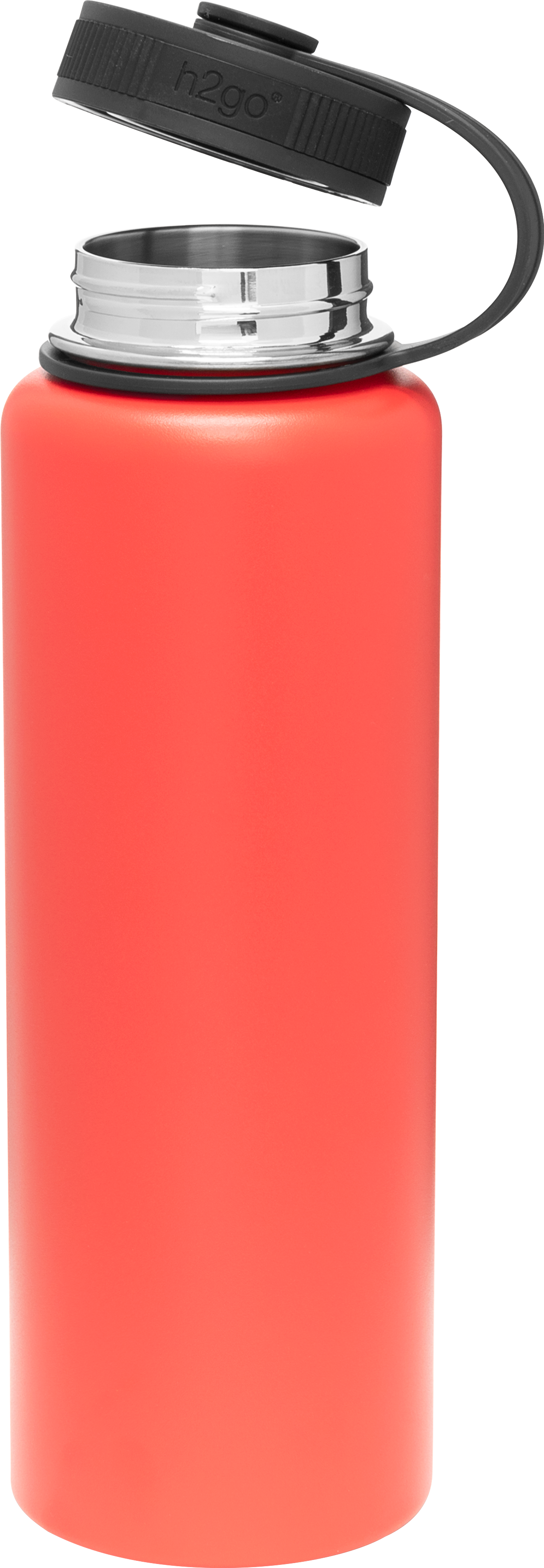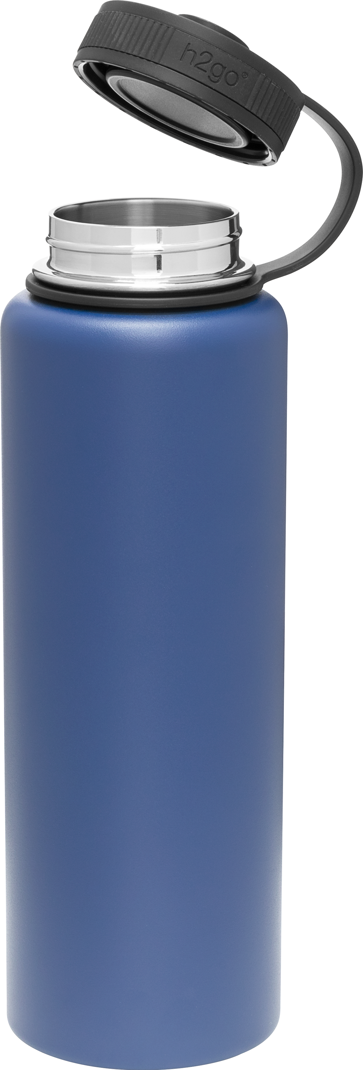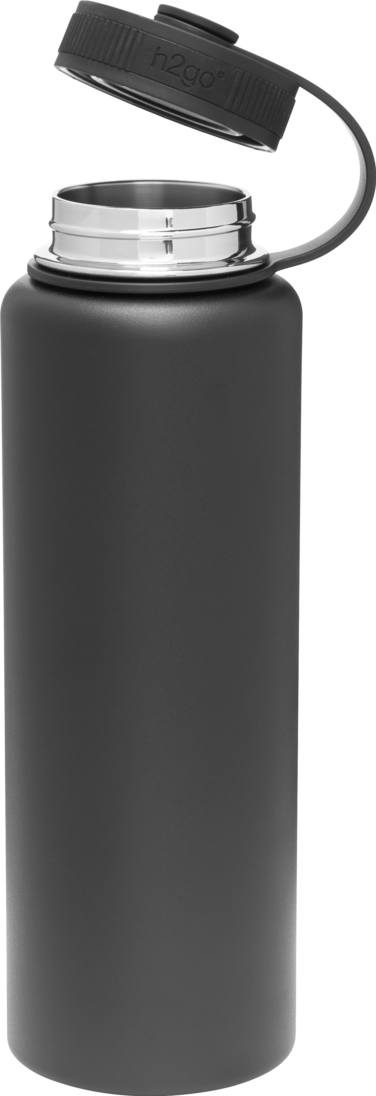 The h2go Venture 40 oz thermal bottle is built for high-capacity hydration and rugged performance. Made from double wall 18/8 stainless steel with copper vacuum insulation, it keeps drinks hot or cold for hours. It features a threaded insulated lid with a silicone band for comfort and a lid retaining loop for added convenience. Finished with a durable powder coated exterior, this bottle is ready for trails, travel, or daily use.
