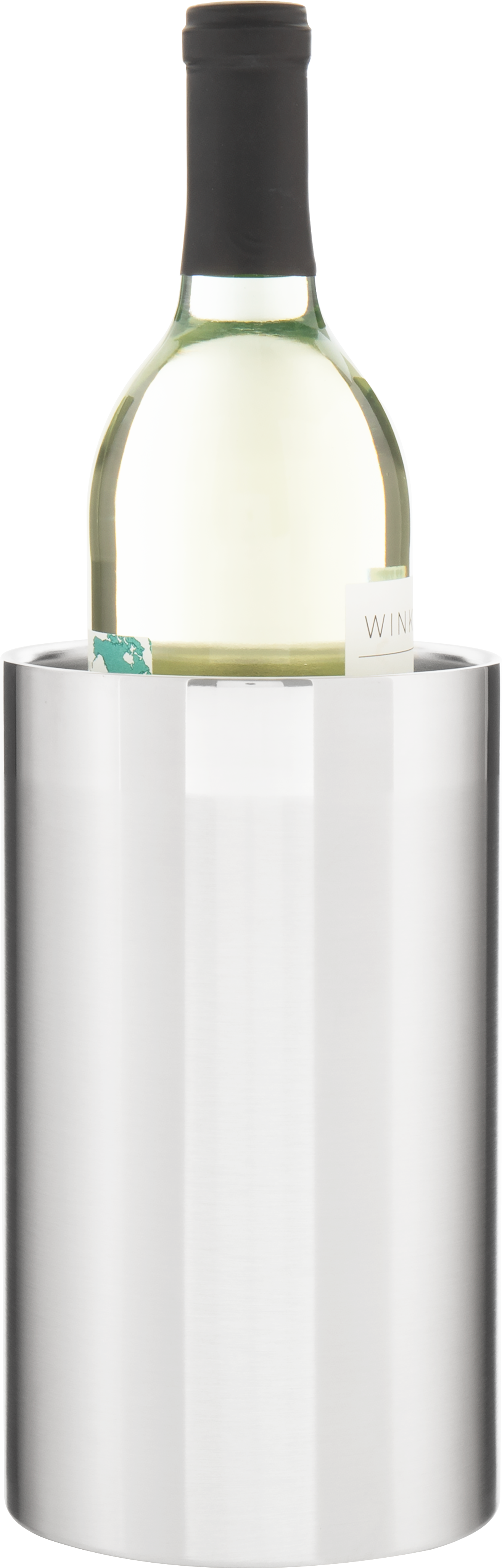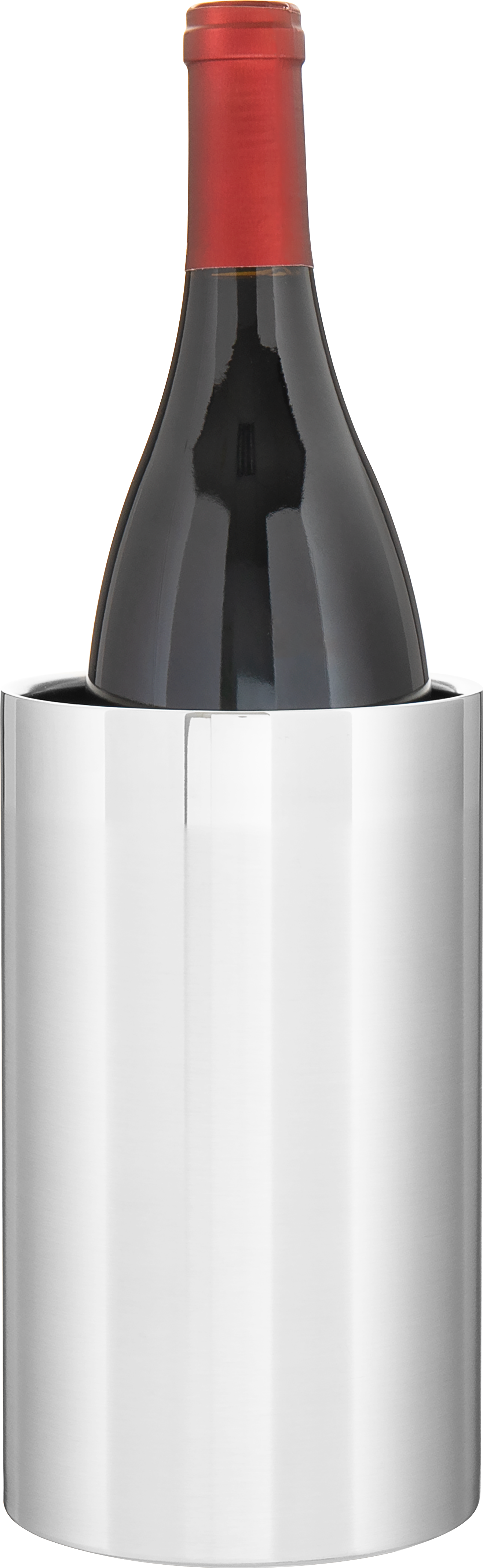 The Sonoma 50 oz bottle chiller is designed to keep wine and beverages chilled in elegant, insulated style. Made from double wall 18/8 stainless steel with vacuum insulation, it maintains temperature for hours without condensation. A high polish rim adds a refined touch. Perfect for entertaining, gifting, or upscale outdoor dining.