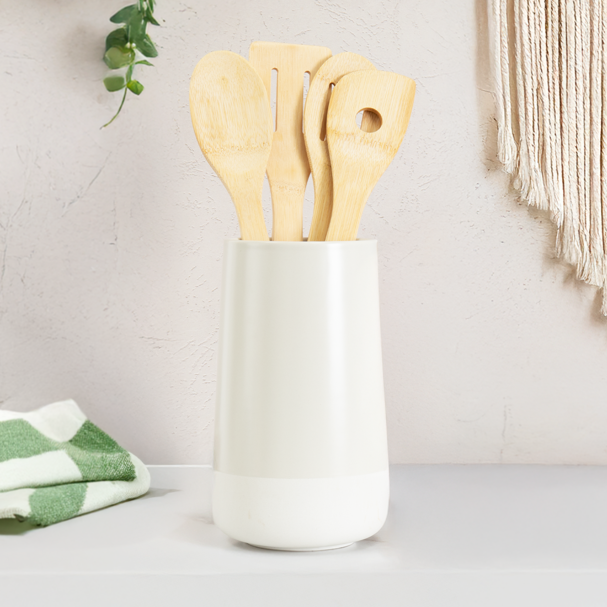 The Calyx 55 oz ceramic vase brings a grounded, natural aesthetic to any space. With a smooth matte finish inside and out and an unglazed base for added texture, it’s the perfect accent for dried stems, minimalist arrangements, or shelf styling. A subtle, timeless piece that complements boho, modern, or rustic decor.