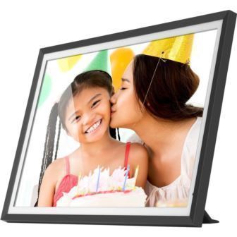 Enjoy vibrant, clear photos on the 3k resolution, 13.5 inch IPS LCD panel. Share your photos from anywhere with an internet connection. Send photos to the frame using our smartphone app, Facebook Messenger, Twitter Messages or even through email! The touchscreen panel is fun and easy to use and frame looks great in any room of your home. Includes 32GB built-in memory, MicroSD/HC/XC or USB flash drive (card not included), clock, calendar, weather, and built-in speakers.