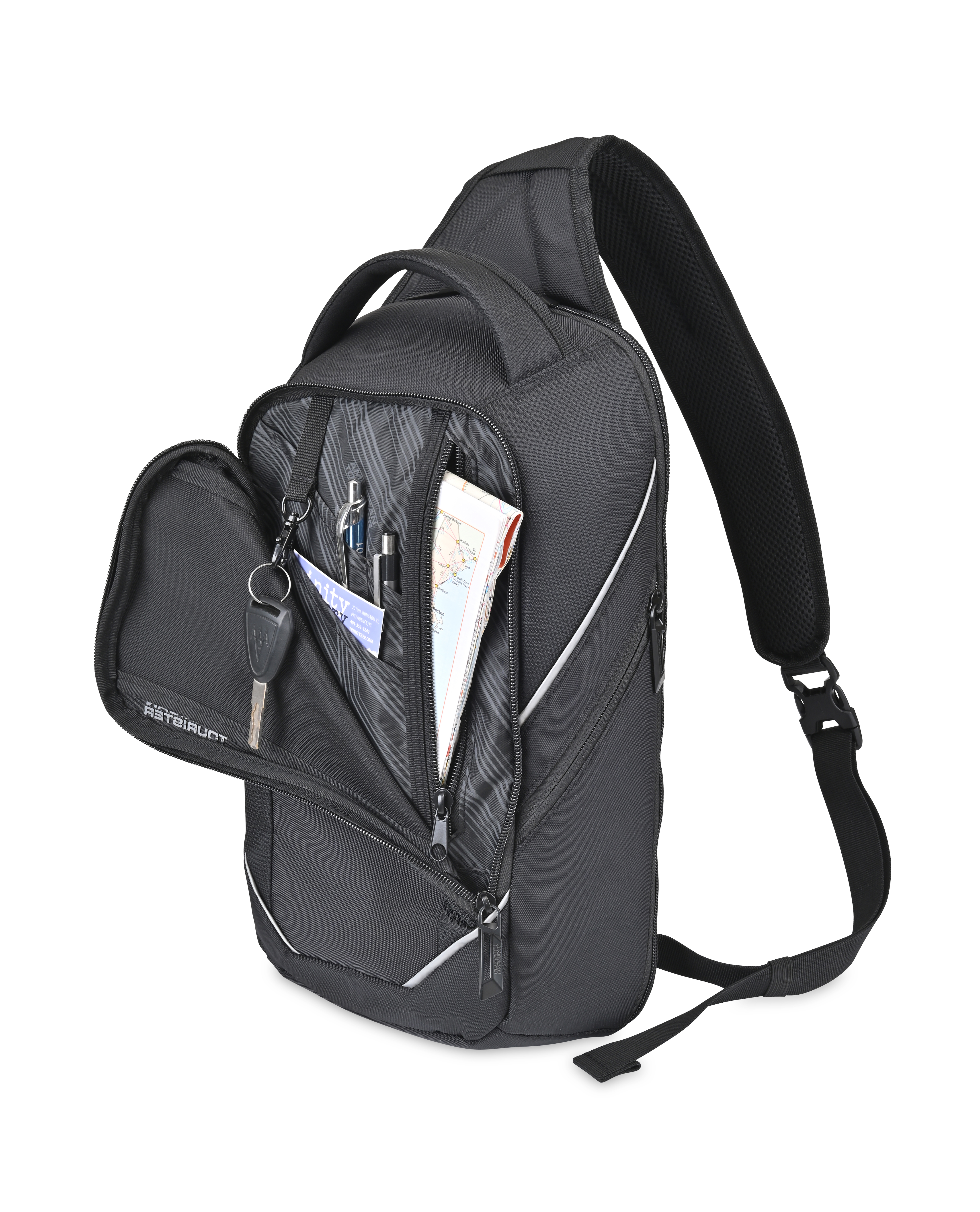 Designed for your daily dash, the American Tourister® Zoom Turbo Sling Bag keeps essentials close and organized. With a padded tablet pocket, multiple zip compartments, hidden back pocket, and comfy sling strap, it’s perfect for commutes, errands, or everyday carry.