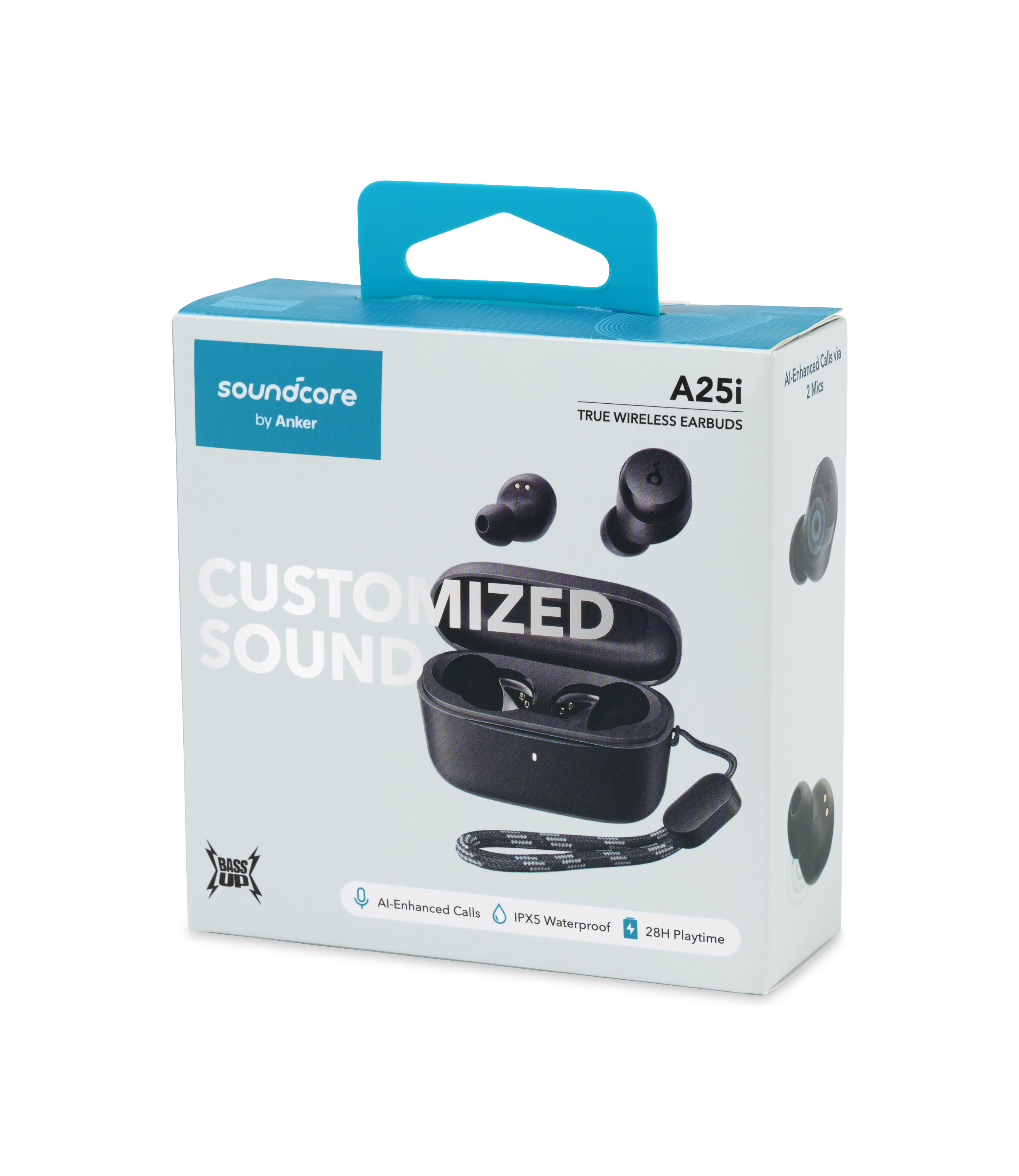 Elevate your audio with Anker® Soundcore Life A25i True Wireless Earbuds. Enjoy rich sound with Bass-Up EQ, 9-hour playtime (28 with case), and AI-enhanced calls via dual mics. With IPX5 waterproofing, a custom EQ app, and a compact design with lanyard, these earbuds move with you—rain or shine.