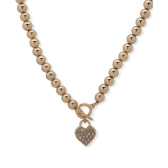 Sweetly filled with crystal sparkle, this heart pendant necklace from Anne Klein is finished with polished gold-tone beads. Lobster clasp closure with front toggle detail.