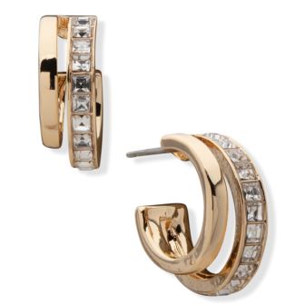 Classic pavé crystal hoops are enhanced by a gold-tone highlight to create an edgy and sophisticated double hoop earring from Anne Klein. Pierced.