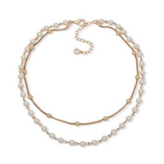 Embrace elegance with the dainty multi-row design of this gold-tone Anne Klein necklace that's accented with pretty imitation pearls.