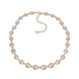 Pavé crystals exquisitely outline the blanc faux pearls of this elegant collar necklace designed by Anne Klein.