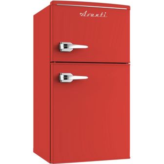 Keep your snacks and favorite beverages close by in the compact, 3.0 cu. ft. retro refrigerator from Avanti. The perfect mini fridge for the office, dorm, man cave, she shed, bar, bedroom or anywhere you need a little extra refrigerator space. The built-in door shelves can accommodate six 12 oz. cans as well as condiments. Use the adjustable, removable shelving to arrange salads, fruits, snacks and other foods for easy access throughout the day. This compact fridge features a separate 0.9 cu. ft. freezer, so your foods remain fresh and cold. Select the right settings for your items with mechanical temperature controls.