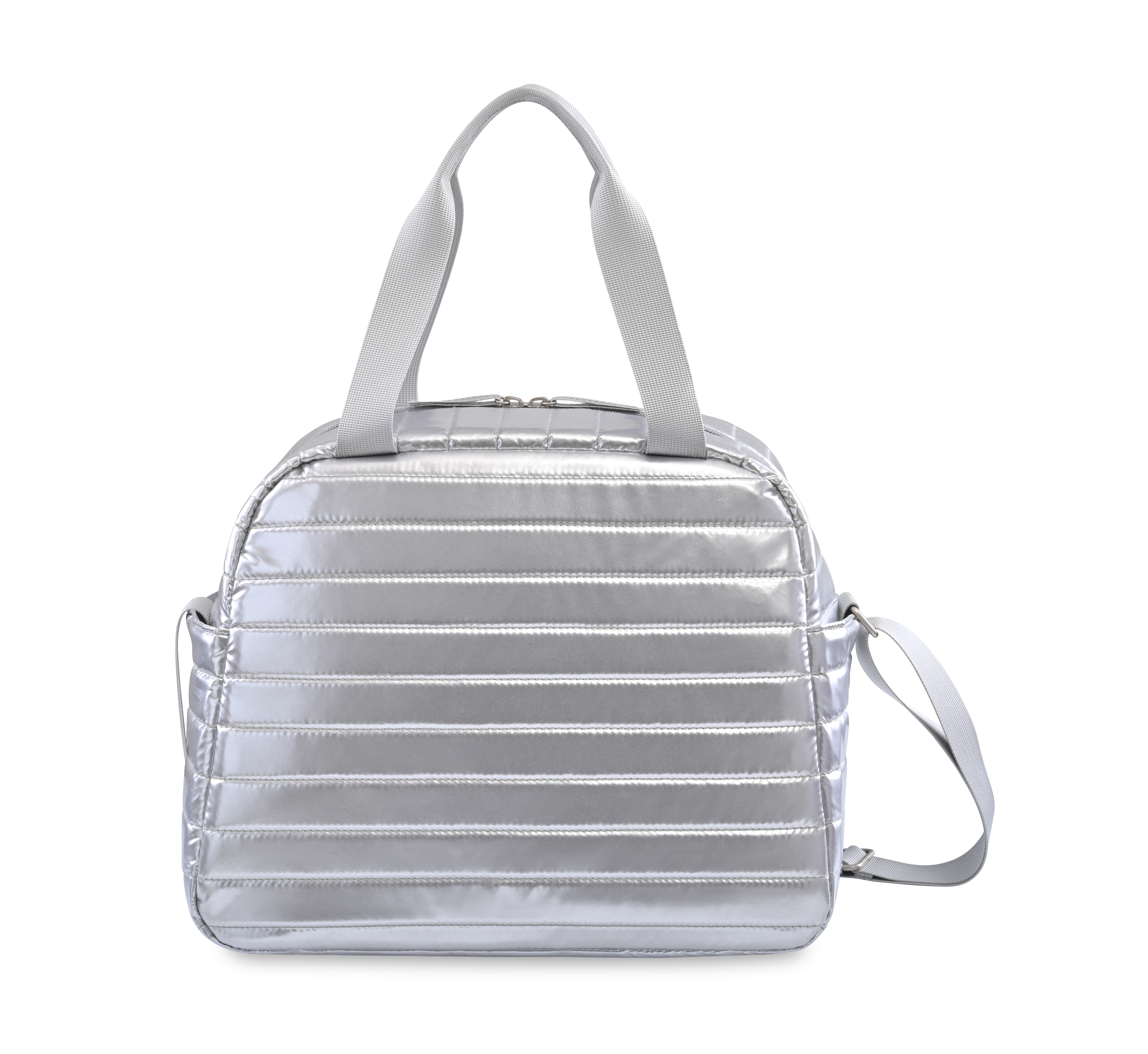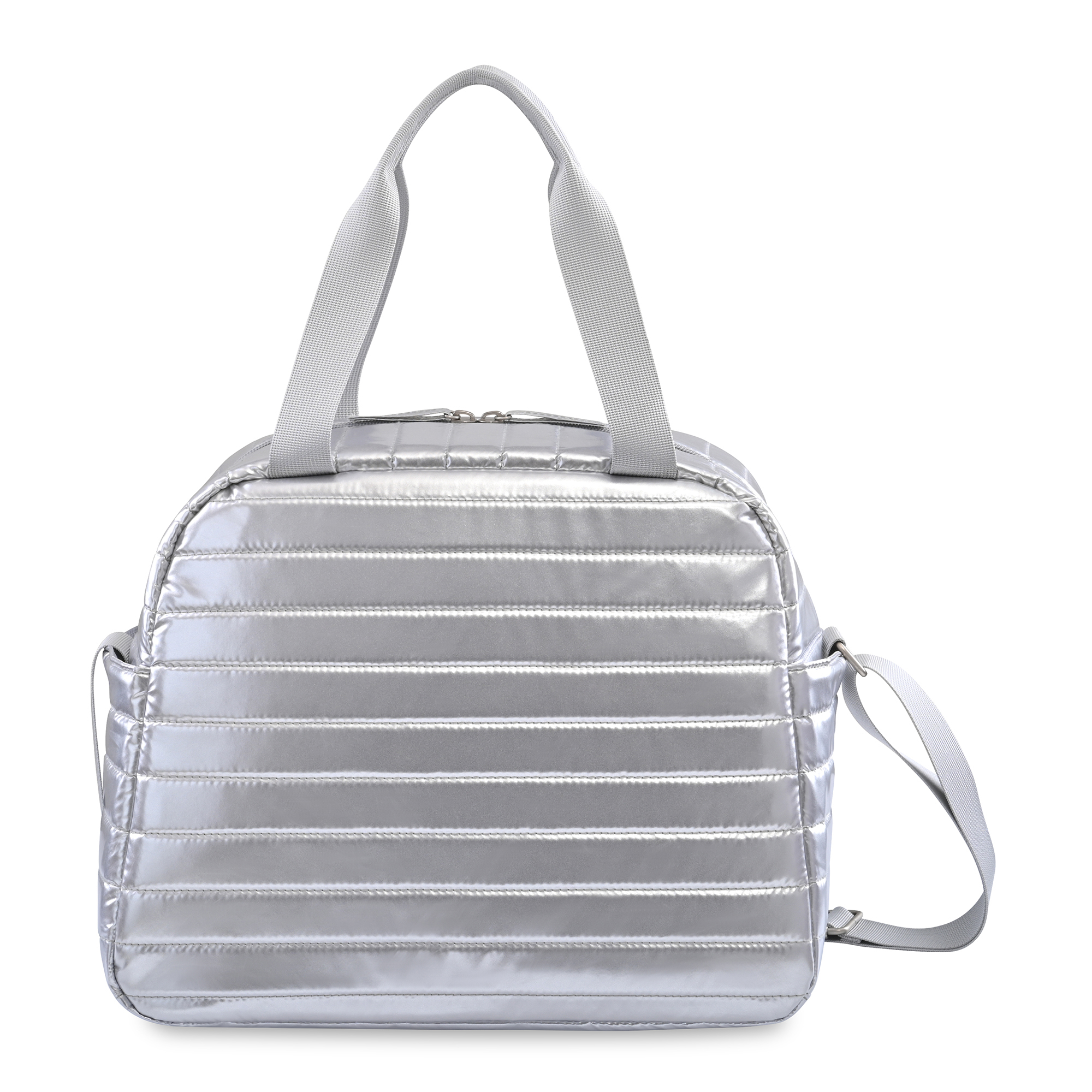 Carry your lunch and snacks with a touch of metallic flair. The Aviana™ Metallics Cooler Collection features quilted details, satin nickel accents, and soft fabric. Wide zippered opening allows for maximum storage. Interior bottle sleeves can hold two Aviana™ Palmer Bottles or other similar bottle shapes upright.