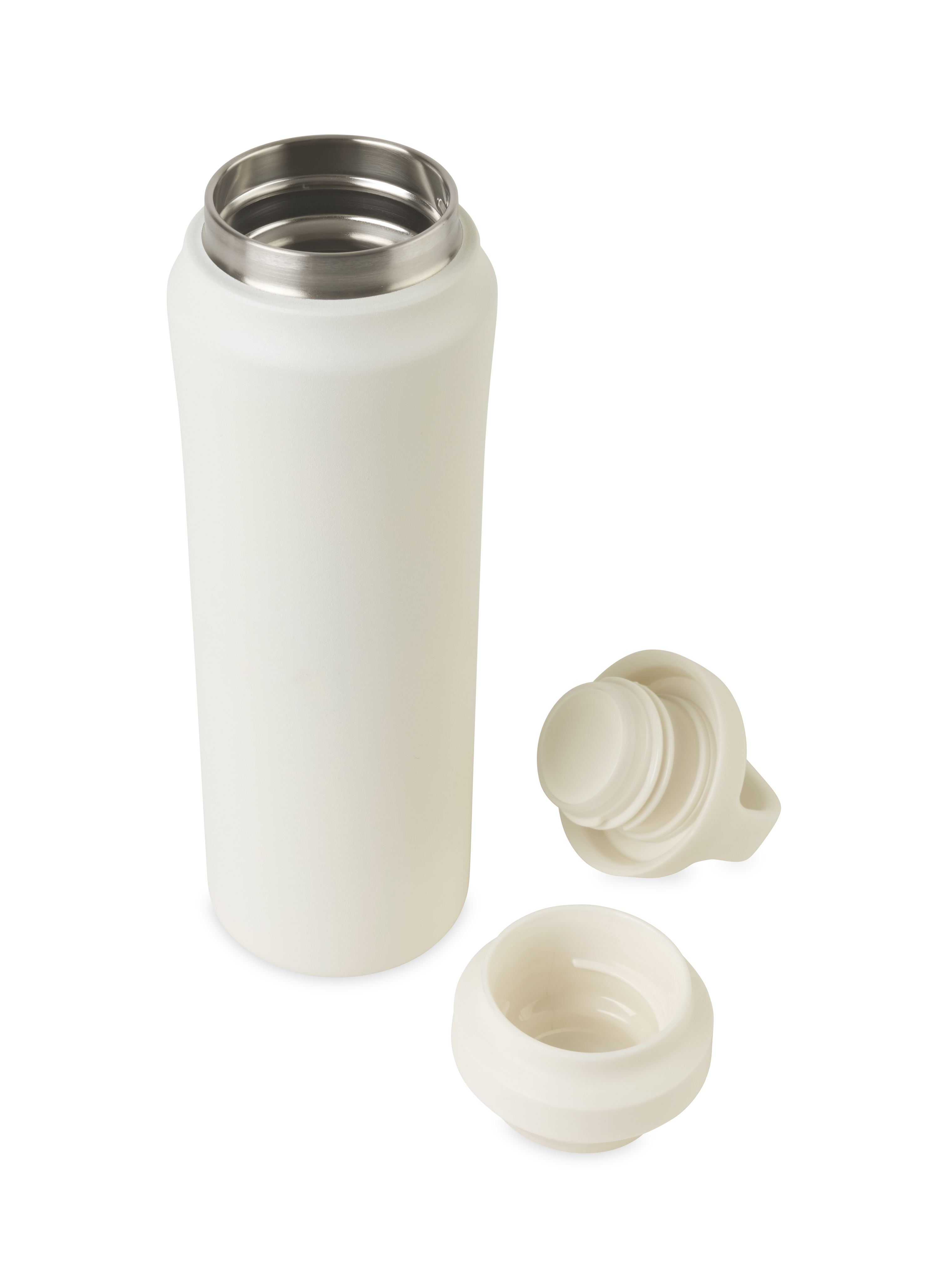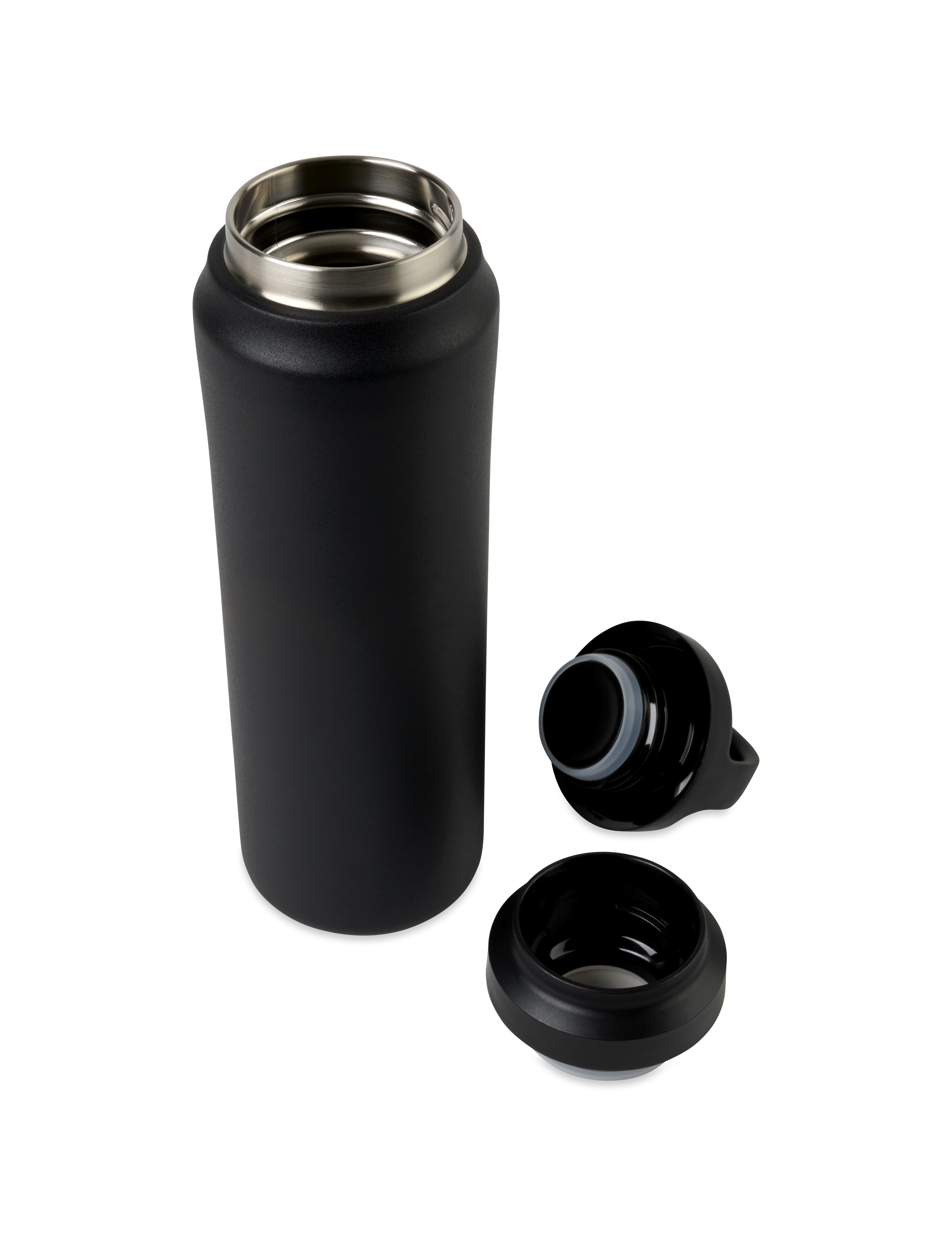The Aviana™ Rowan Recycled Water Bottle offers sleek, on-the-go hydration with double-wall vacuum insulation to keep drinks cold for 18 hours or hot for 10. Made from recycled stainless steel with a sweat-proof matte finish, it features a two-piece lid, nonslip base, and cup-holder-friendly size.
