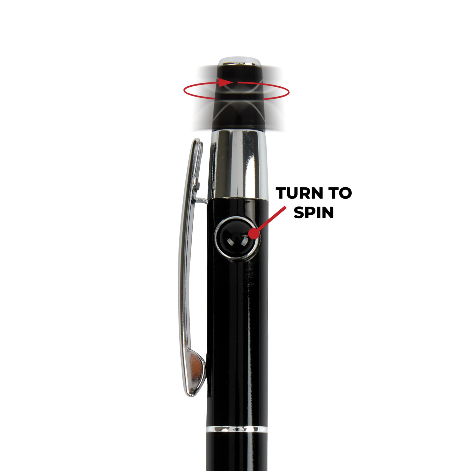 Experience the perfect blend of functionality and take the Continuity Twist Action Ballpoint Pen for a spin. This pen features a reliable twist-action mechanism, smooth black ink flow and a comfortable grip. The track-ball on its upper barrel controls the telescoping spinner, providing an engaging fidget element that can help reduce stress and enhance focus during meetings or study sessions. With a stylish chrome clip and trims and a barrel crafted from aluminum, it exudes sophistication. Perfect for everyday use or as a thoughtful gift, this pen combines practicality with a touch of playfulness.
