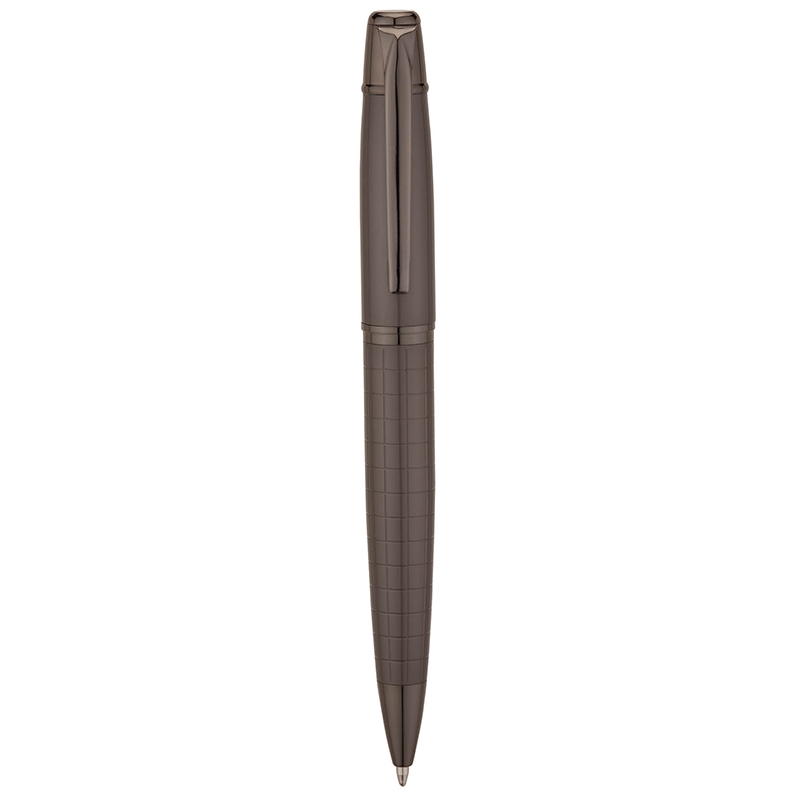 The Granite brass ballpoint pen has an even-balanced construction to give its twist-action design a weighty feel in hand when you have important papers to sign. The satin gunmetal finish, shiny gunmetal trims, etched barrel, and black ink give this pen a sense of gravitas.