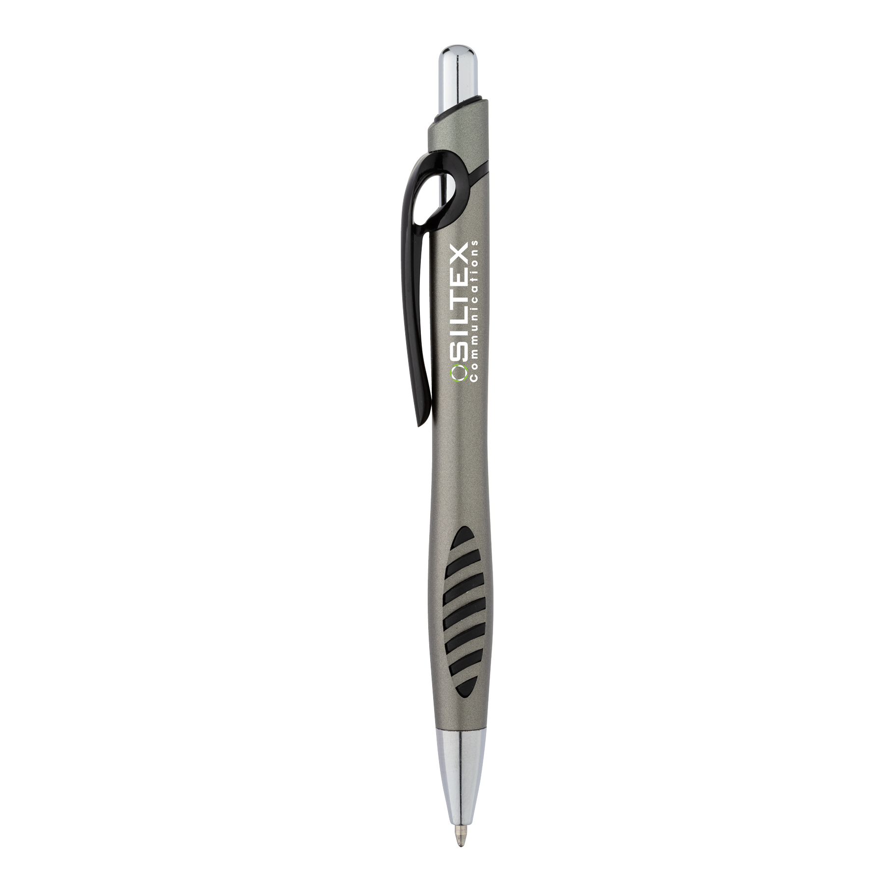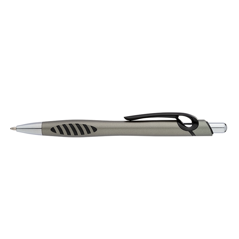 Gift the Spokane Plunge-Action Ballpoint Pen to your new hires or take them to your next tradeshow as a giveaway for customers. The D-ring clip design can easily attach to lanyards or wall hooks and the smooth metallic finish and textured rubber accent grip give it a unique look and ergonomic feel.