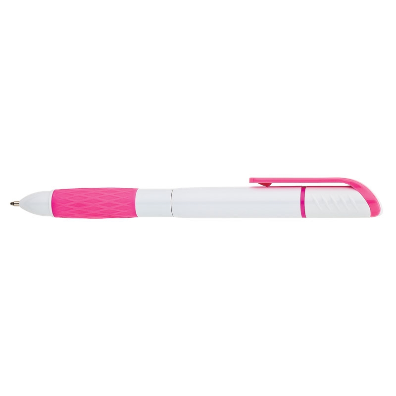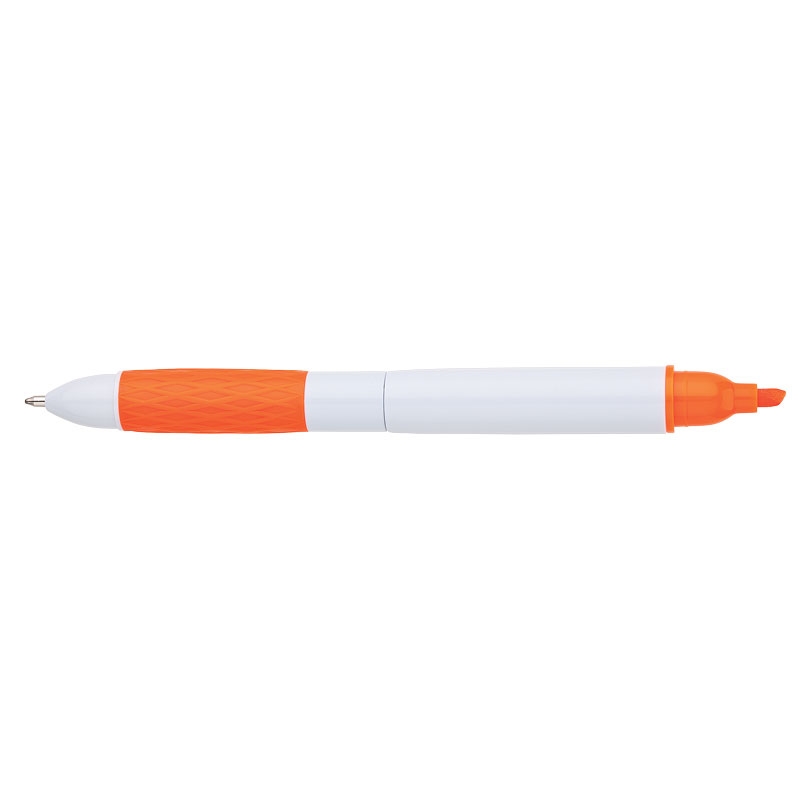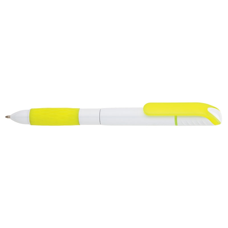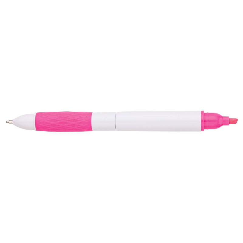2-in-1 ballpoint and highlighter combo with soft silicone grip.