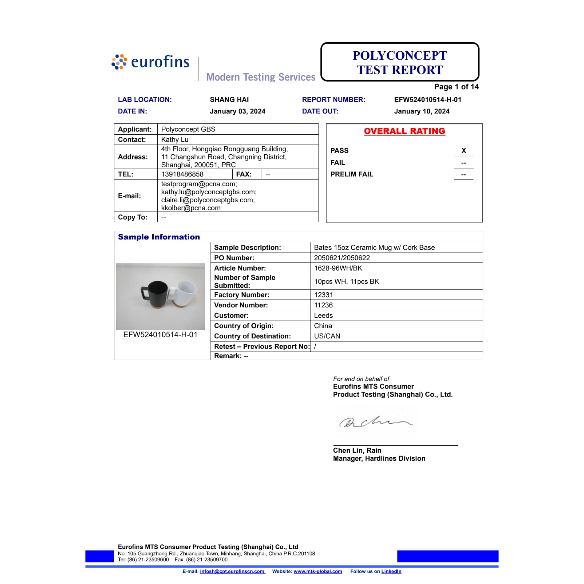 Bates 15oz Ceramic Mug w/ Cork Base 1628-96
