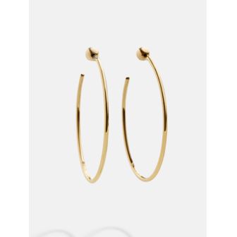 The perfect thin gold hoops are just a click away. Our Dalilah Earrings are a must-have jewelry essential for your arsenal. Lightweight, thin tubes of metals are crafted in a timeless hoop shape and topped off with a comfortable post-back closure. Wear these solo or add a few other earrings to your piercings alongside them - there are no rules here. Measurements: Inner Diameter: 1.32". Outer Diameter: 1.42". Weight: .07 oz. Hoop Size: 36MM. Materials: Gold plated brass. Titanium posts. Closure: Post Back. Allergy Information: Hypoallergenic.