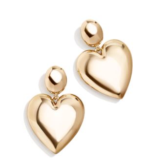 The Sheri Earrings make heart earrings modern. This pairing of gold drop earrings features a simple stud connected to an elegantly oversized glossy gold heart drop. We love this style for date night, girls' night, or really any night, as a matter of fact.