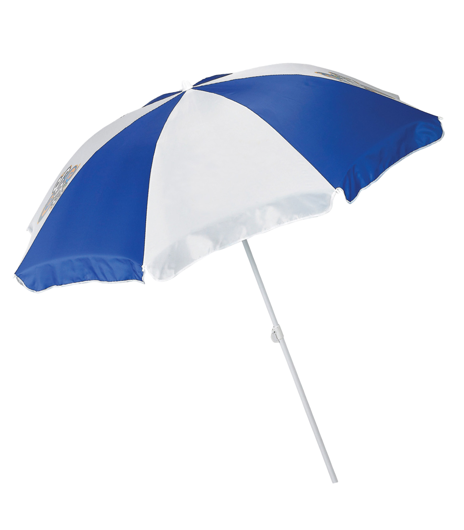 Make yourself a little pop-up cabana with this logoed beach umbrella! Perfect for a day at the beach, to stick in the sand or as an indoor display item, this 8 panel classic beach umbrella measures 6 foot (72" arc), is made of nylon and features a 2-piece white aluminum frame with pointed bottom pole, adjustable height and a nylon carry case with shoulder strap.