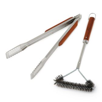 For the discerning grill master, this 2pc BBQ tool set is a must-have addition to your grilling arsenal. Crafted with high-quality stainless steel, these tools are built to withstand the rigors of frequent use and deliver lasting performance. The BBQ tongs feature a comfortable wooden handle for a secure grip and easy maneuverability, allowing you to confidently flip burgers, sausages, and vegetables with precision. The BBQ brush is equipped with durable bristles that effectively clean your grill grates, ensuring a pristine surface for your next culinary masterpiece. Set includes 16.25" Tongs, 16.25" Brush