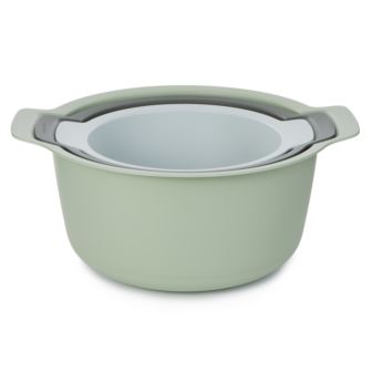 Say hello to the ultimate kitchen multitasker, BergHOFF's 3pc mixing bowls and colander set in green. Designed for real-life cooking, this set combines everyday convenience with thoughtful design. Whether you're rinsing fresh veggies, mixing up a batch of pancake batter, or tossing a salad, this trio helps you get it done efficiently and neatly. Each bowl features wide, ergonomic handles for a comfortable, confident grip, while the non-slip base ensures your prep stays put-even during vigorous mixing or draining. Each piece in this set are all crafted from durable, food-safe PP that's lightweight yet strong enough to handle your toughest prep tasks. The space-saving, stackable design means they nest neatly inside each other for compact storage in any kitchen. Easy to clean and designed for a variety of uses, this prep set simplifies mealtime and makes your kitchen feel instantly more organized. Set includes: 12.5" x 10.5" Mixing Bowl, 9" x 8" x 4" Small Bowl, 11" x 9" x 5" Colander.