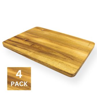 Introducing our set of 4 natural acacia wooden trays, perfect for all your cutting and serving needs. Each board is crafted from high-quality acacia wood, known for its durability and beautiful grain patterns. The natural properties of acacia wood make it resistant to water and bacteria, ensuring a safe and hygienic surface for food preparation. The natural acacia wooden boards are not only functional but also add a touch of elegance to your kitchen. The rich, warm tones of the acacia wood make these boards a stylish addition to any culinary space. Use them to present a selection of cheeses, fruits, or appetizers when entertaining guests, or simply as a stunning backdrop for your culinary creations. Set includes: 4x Acacia wood trays 13.75" x 9.75" x 0.75"